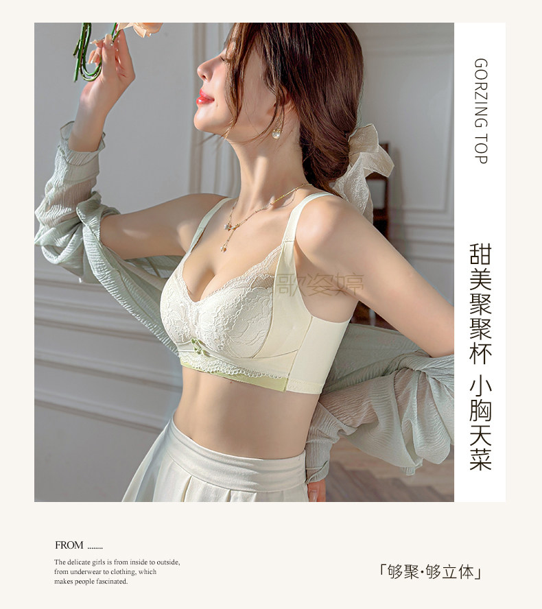 聚攏內衣女小胸顯大收副乳防下垂蕾絲無鋼圈2025新款調整型文胸罩