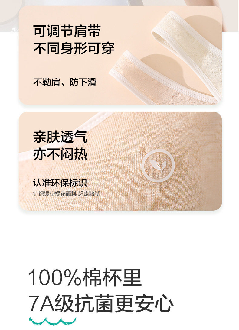 安菲雅純棉彩棉中學生少女內衣發育期固定杯文胸大童學生舒適