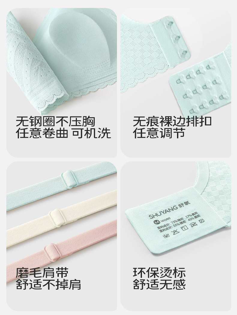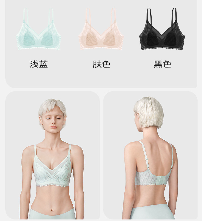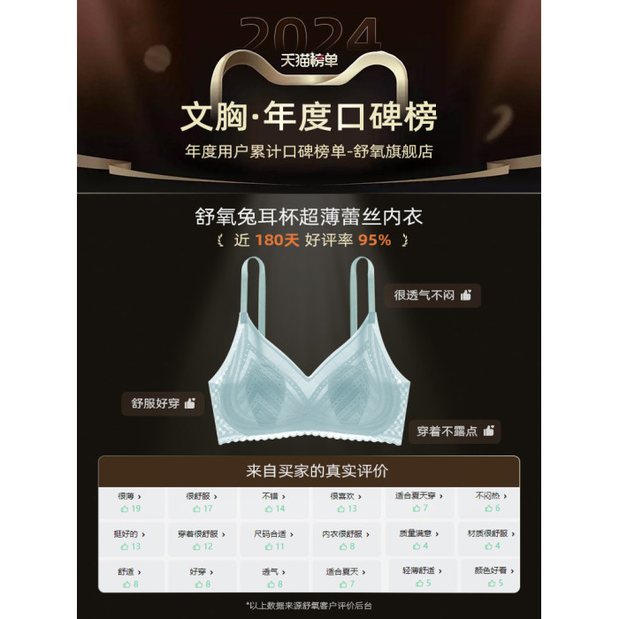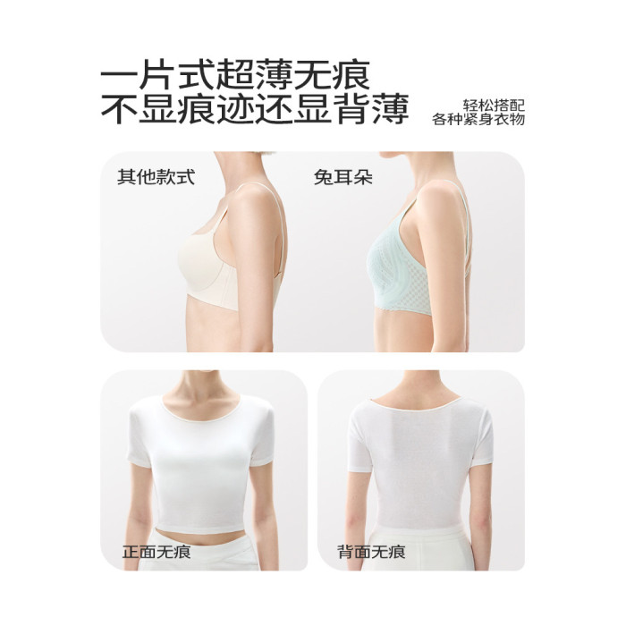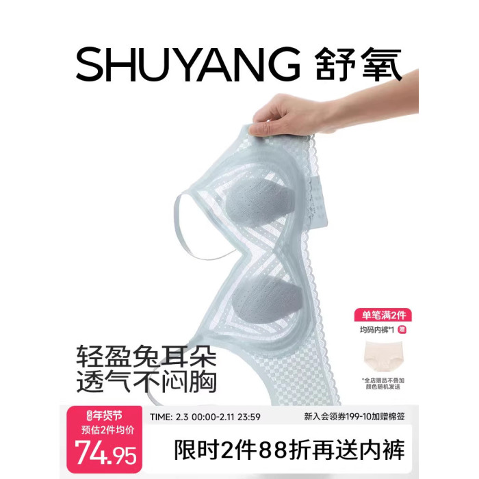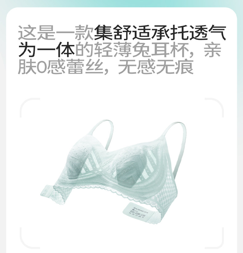 舒氧兔耳杯內衣女士薄款透氣胸罩聚攏無痕蕾絲美背大胸顯小文胸
