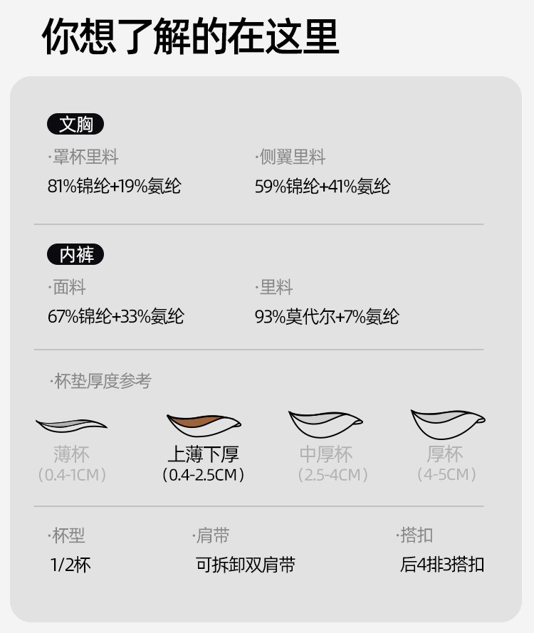 | 罩杯裡料成分含量 | 81%(含)-95%(含) |