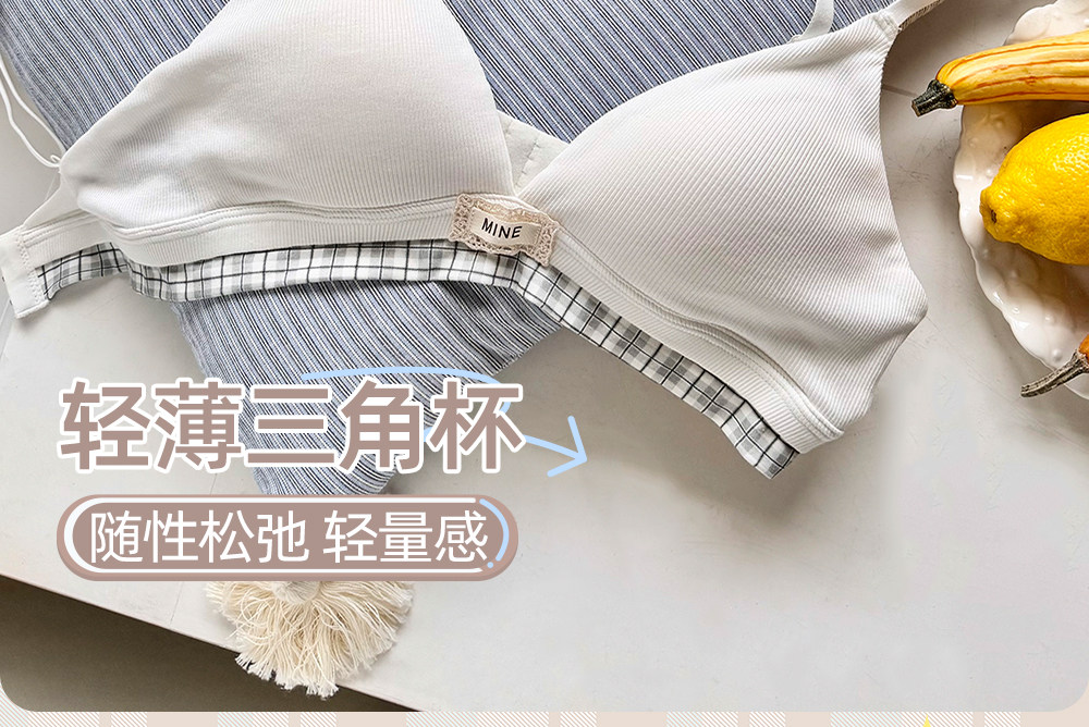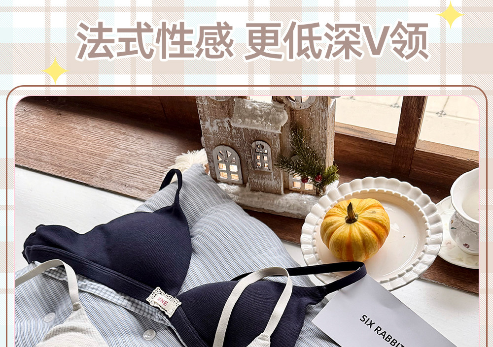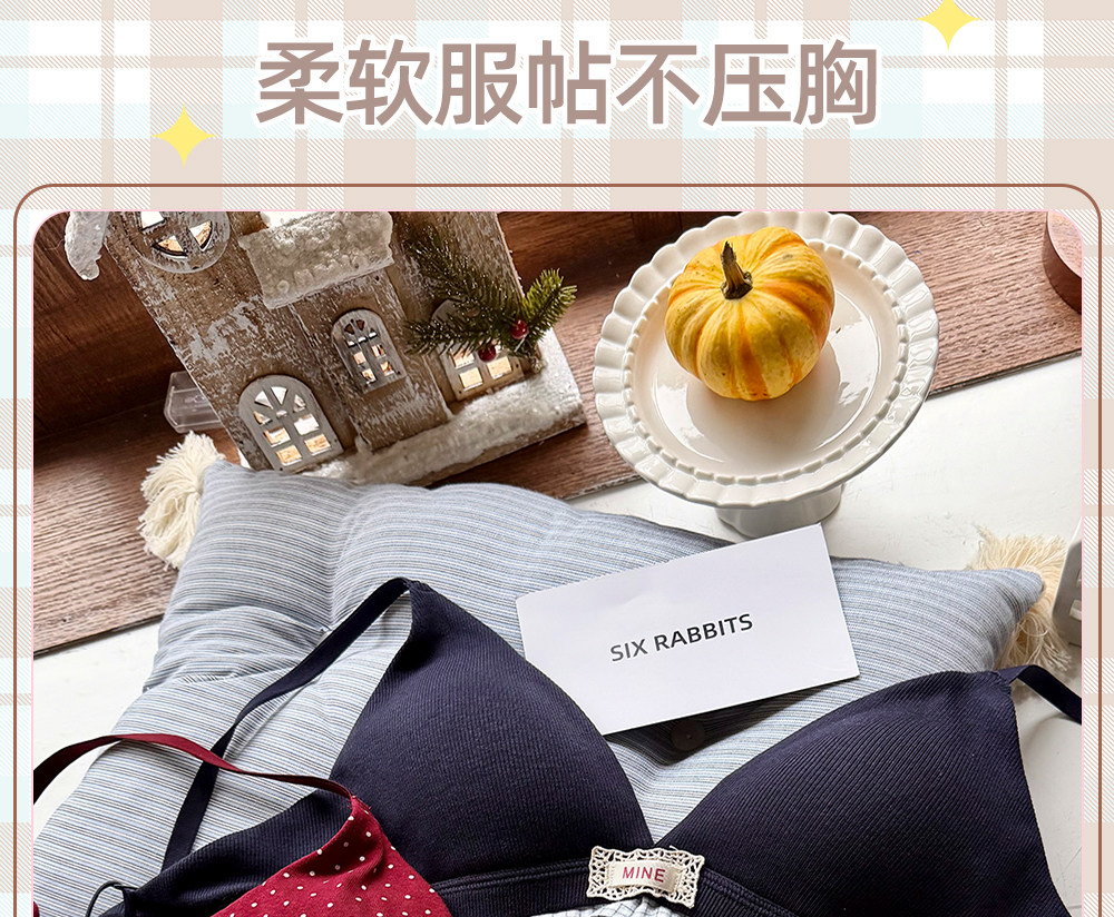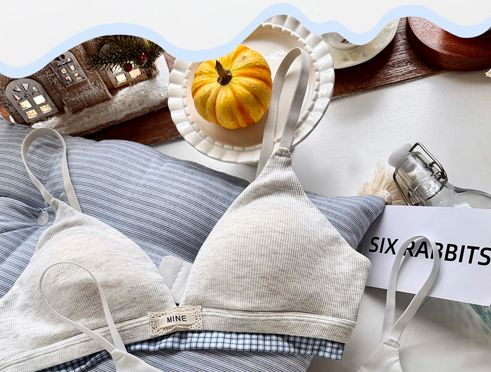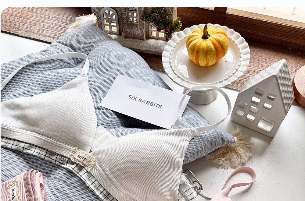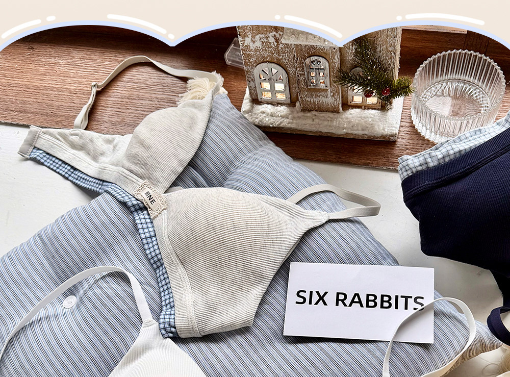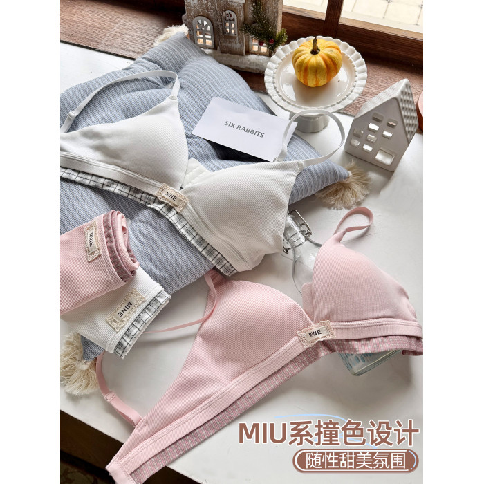 六隻兔子無鋼圈內衣女薄款三角杯胸罩無鋼圈A類面料甜美文胸套裝