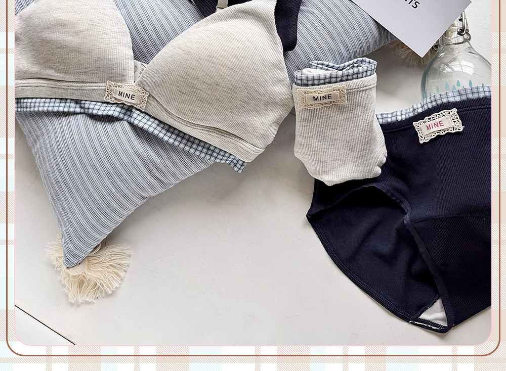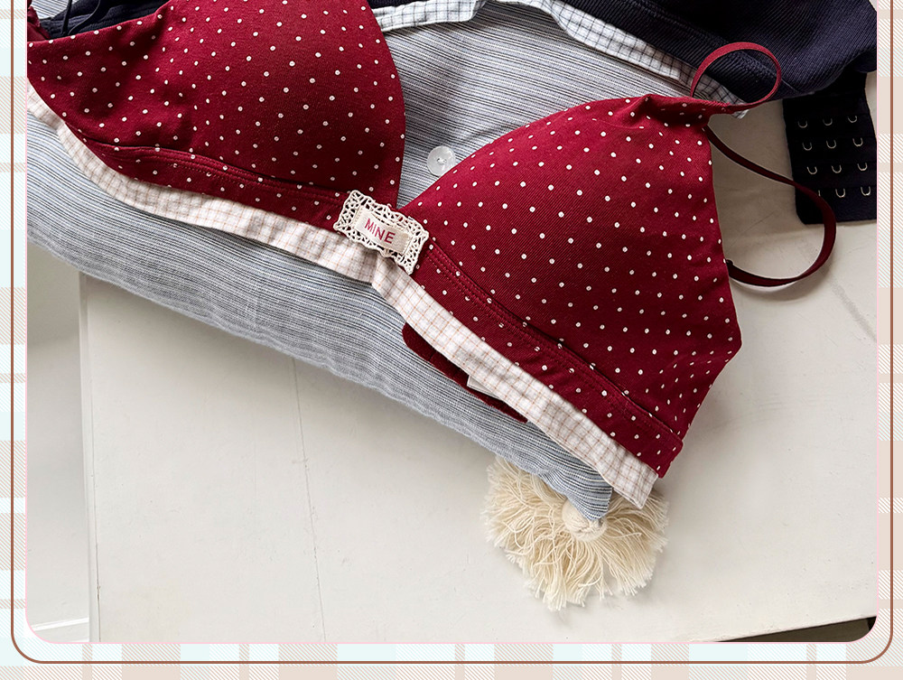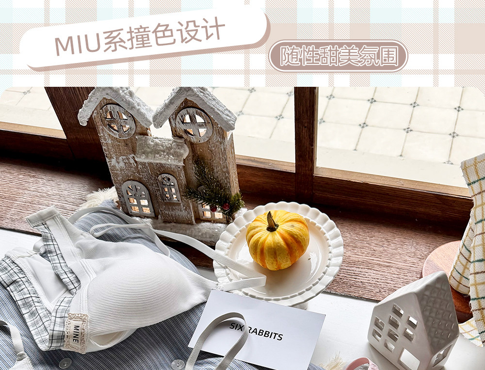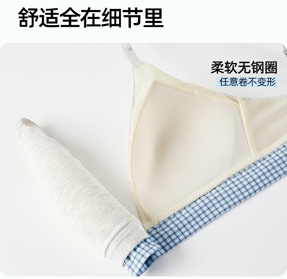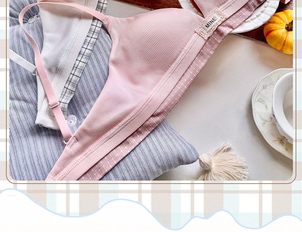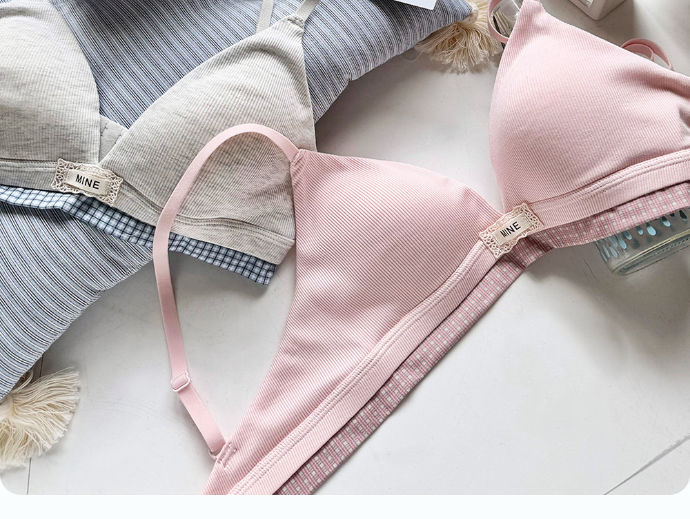 六隻兔子無鋼圈內衣女薄款三角杯胸罩無鋼圈A類面料甜美文胸套裝