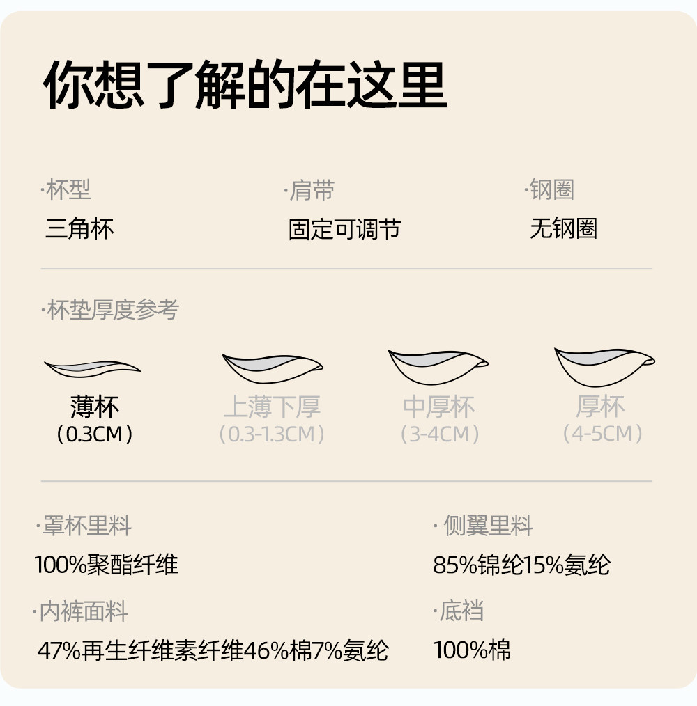 | 罩杯款式 | 三角杯 |