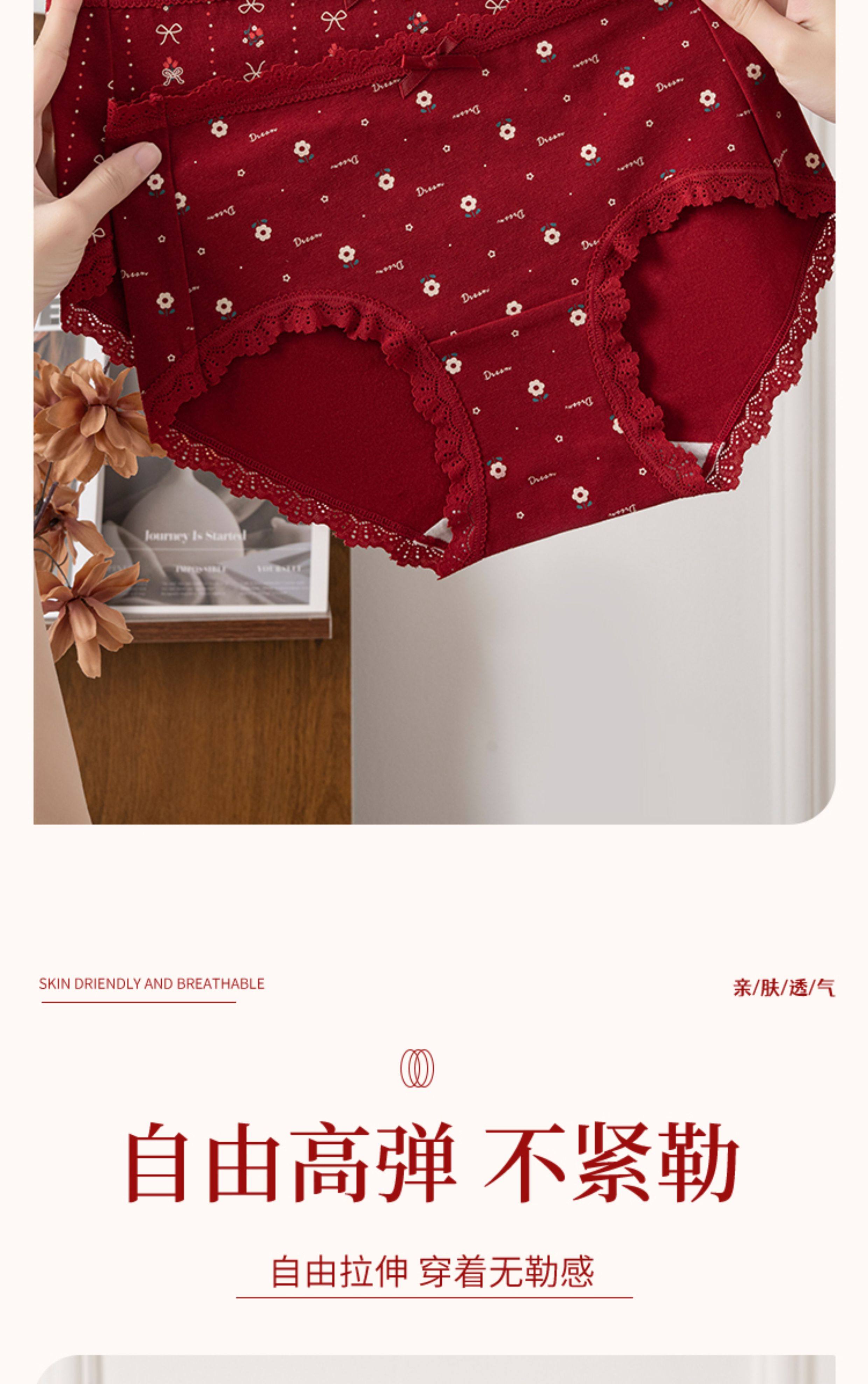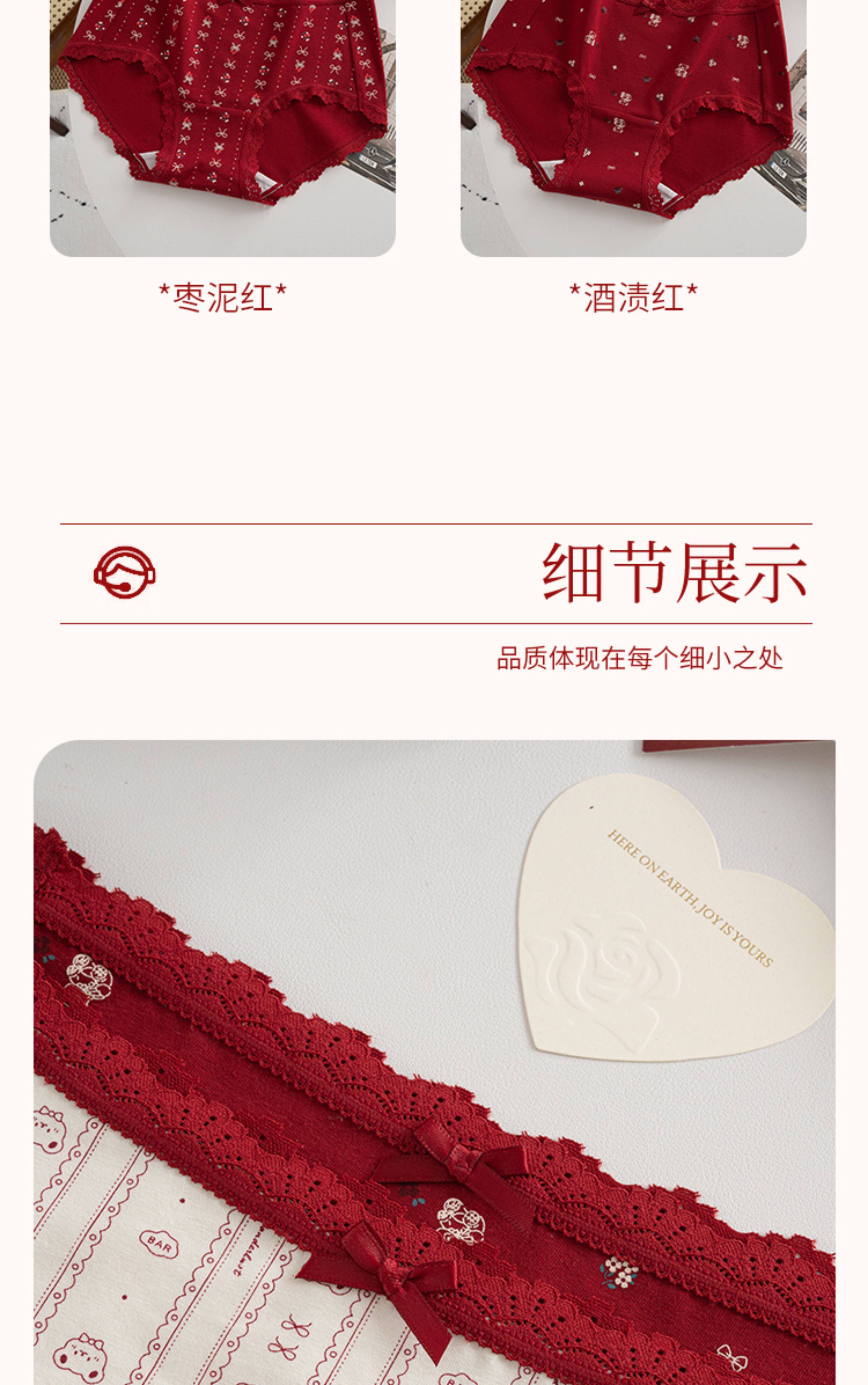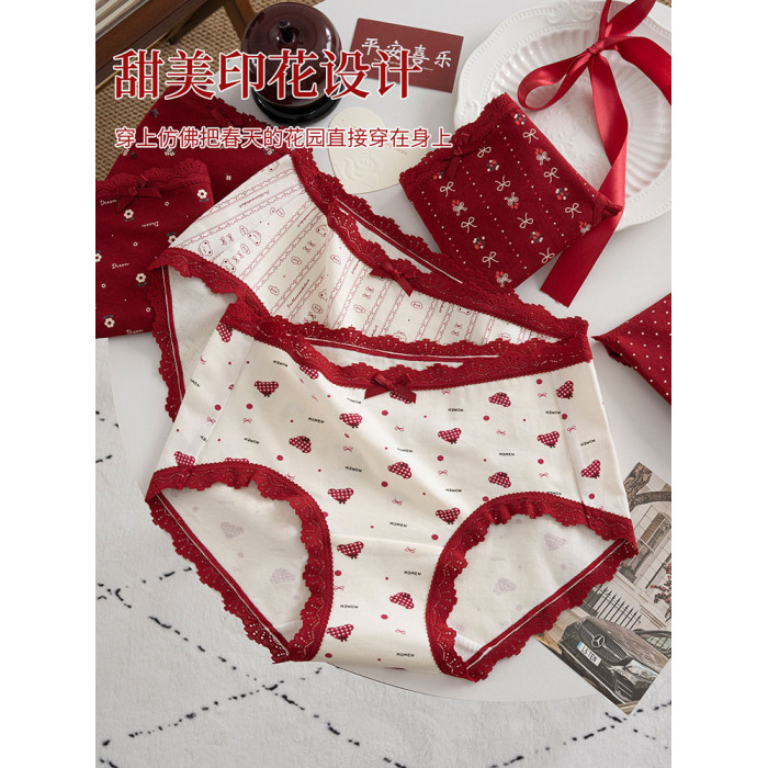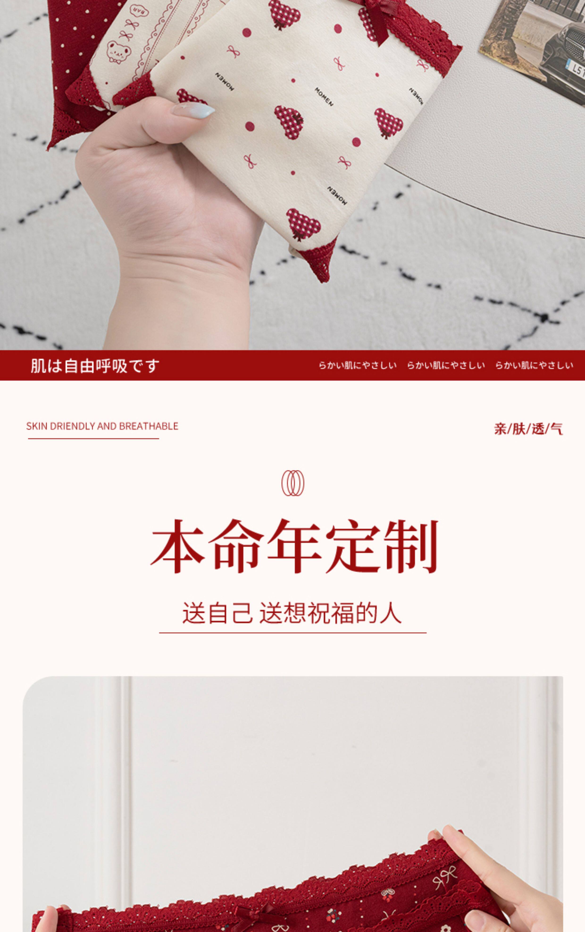 本命年馬年蕾絲邊可愛卡通純棉聖誕紅色內褲新娘結婚加長襠三角褲