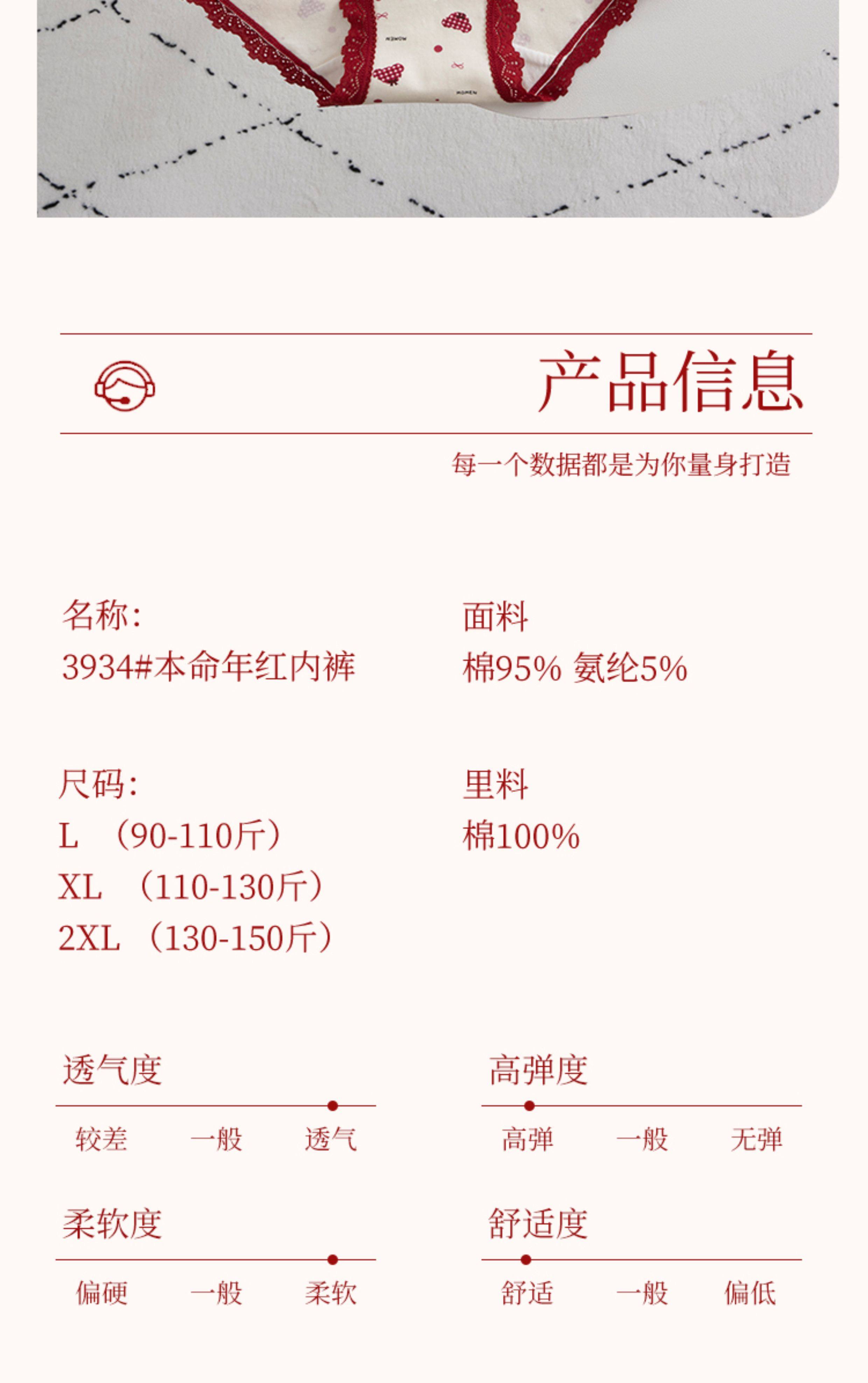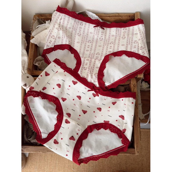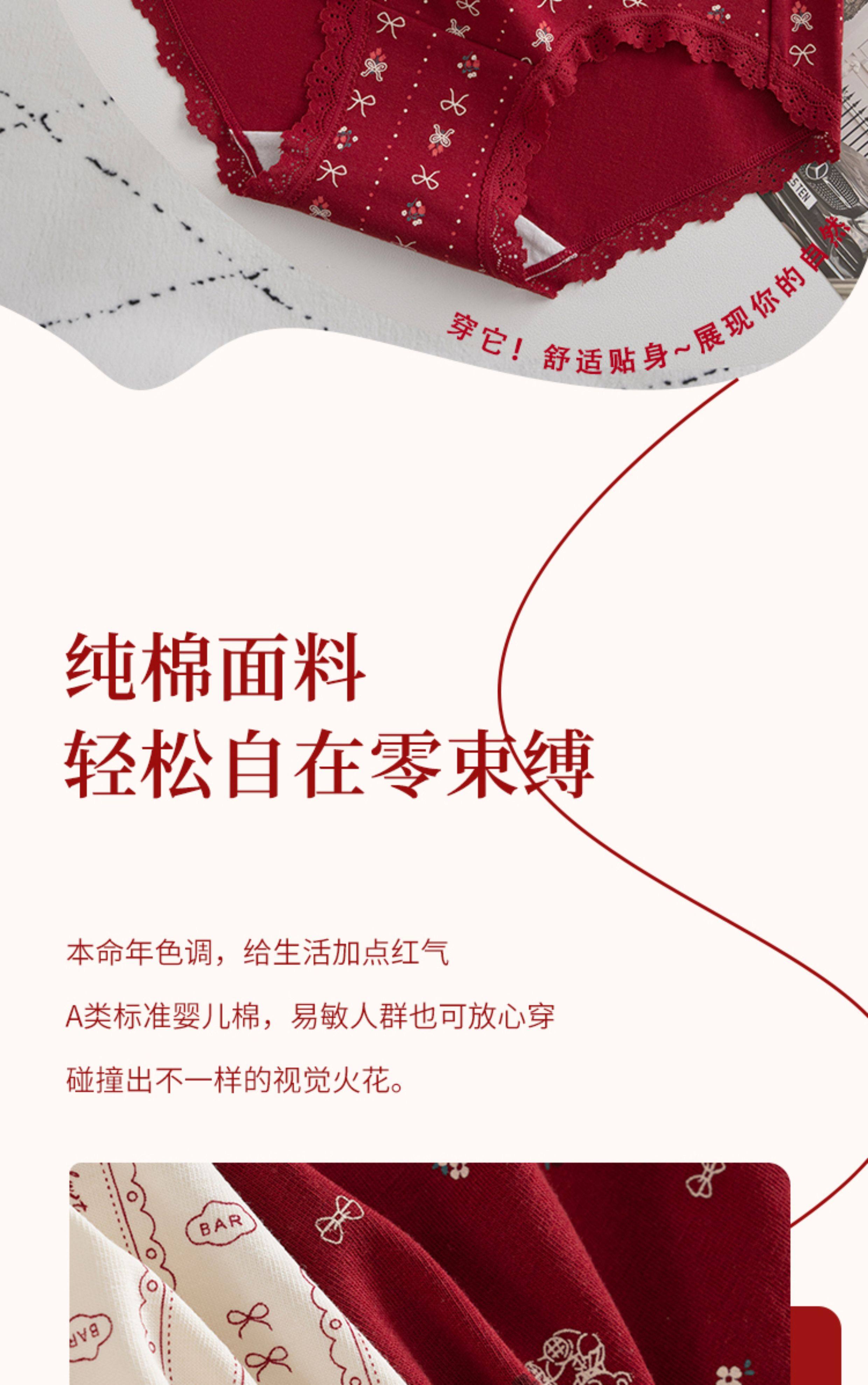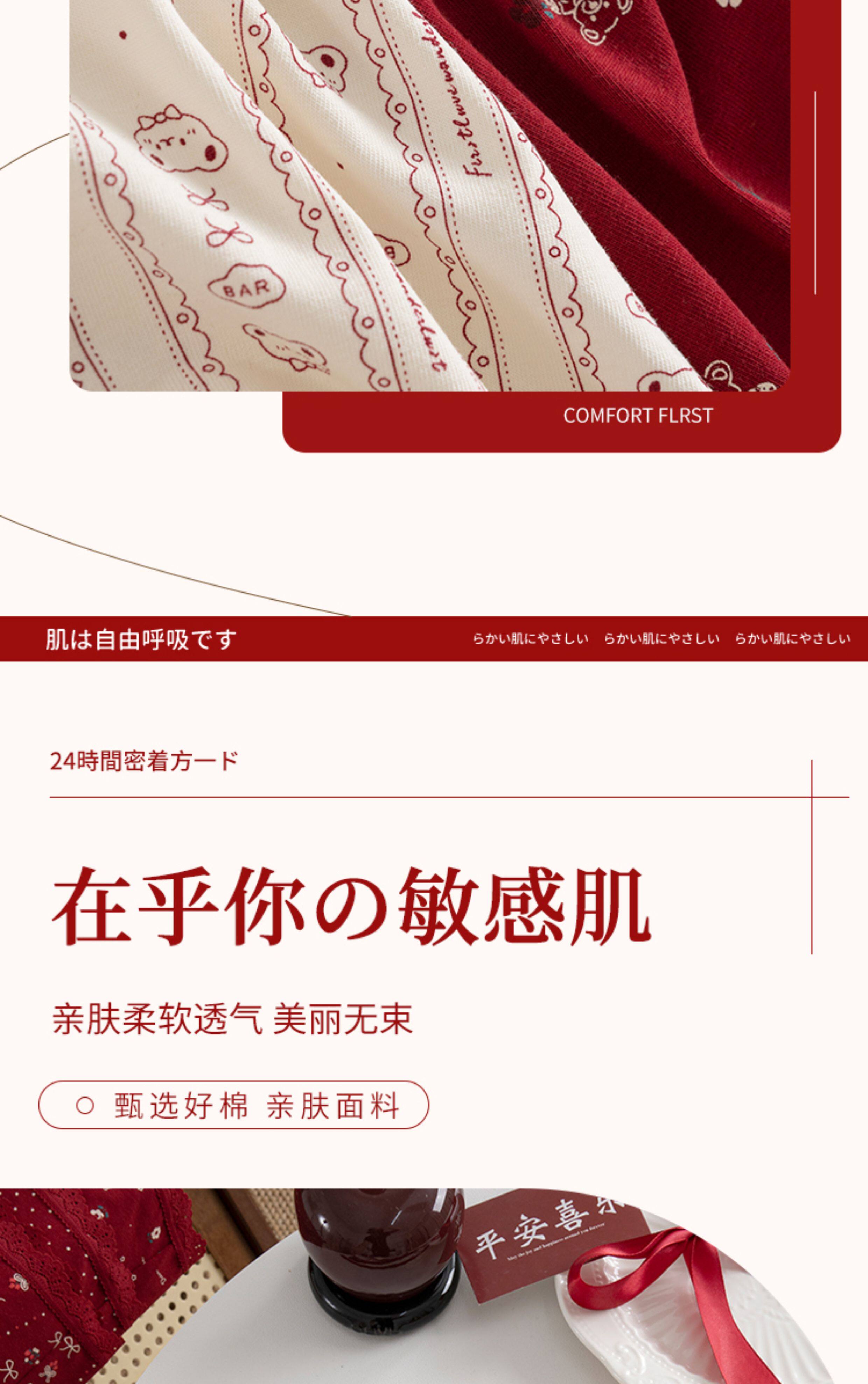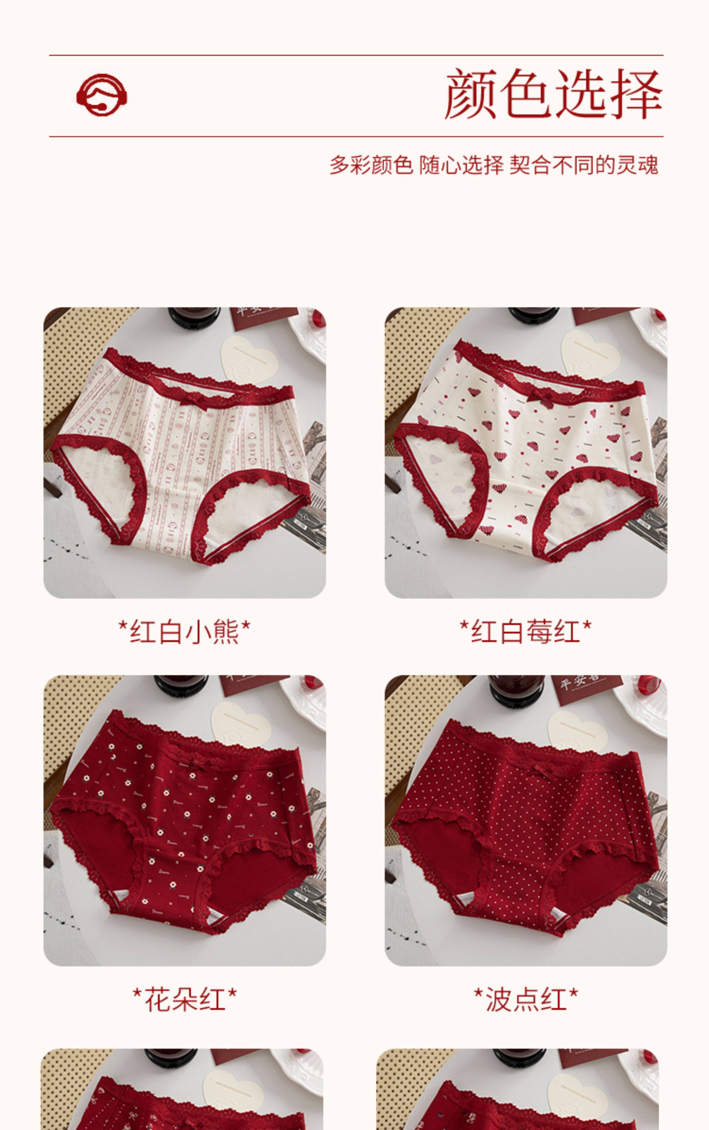 本命年馬年蕾絲邊可愛卡通純棉聖誕紅色內褲新娘結婚加長襠三角褲