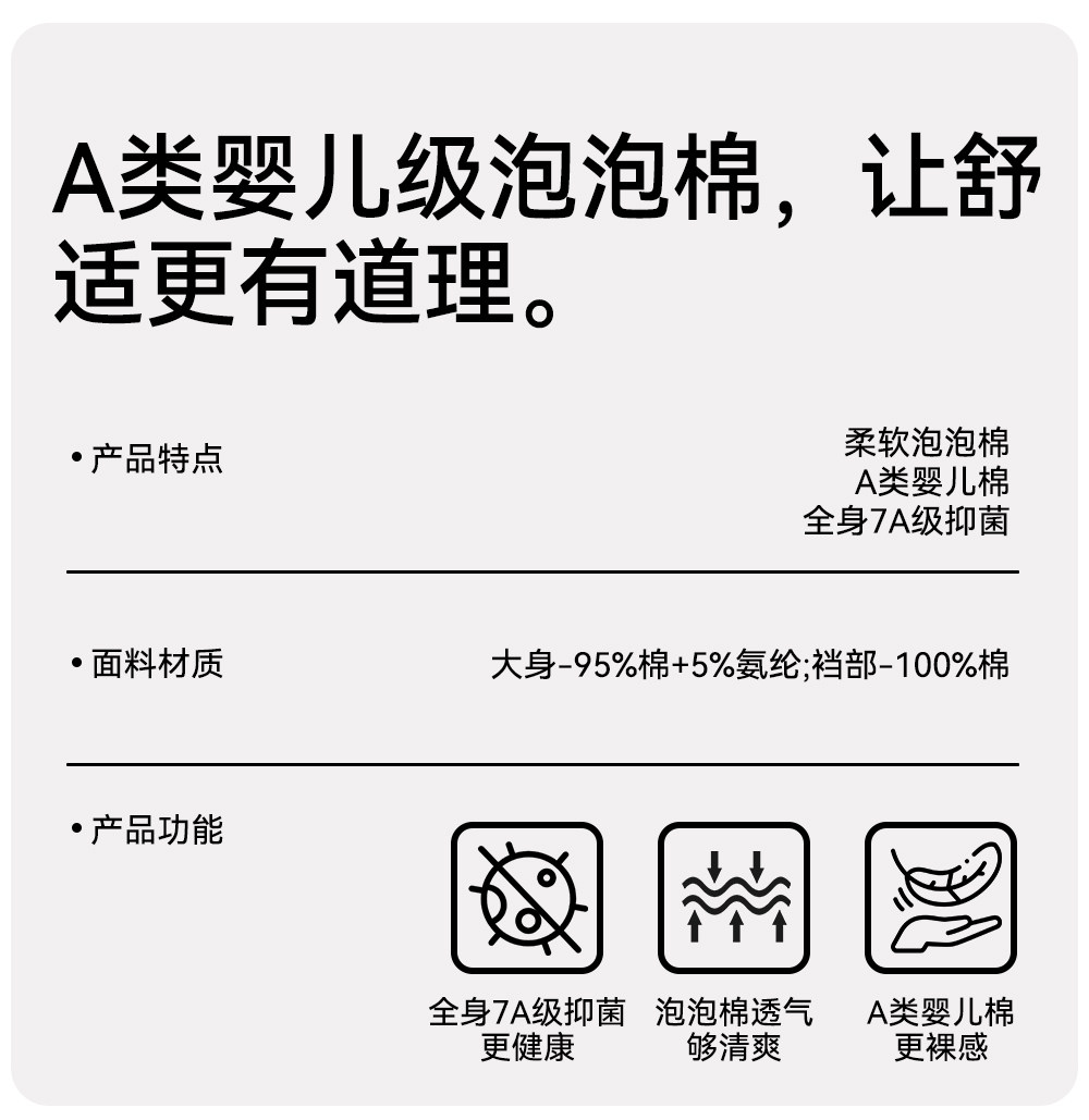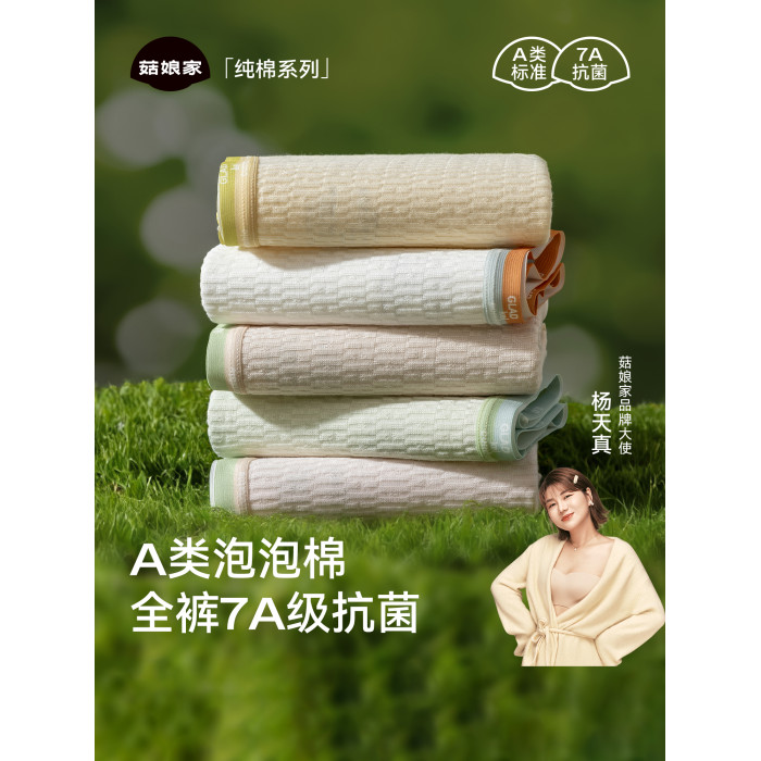 菇娘家大碼新疆棉A類‘泡泡棉’純棉抗菌加長襠嬰兒棉女內褲無痕