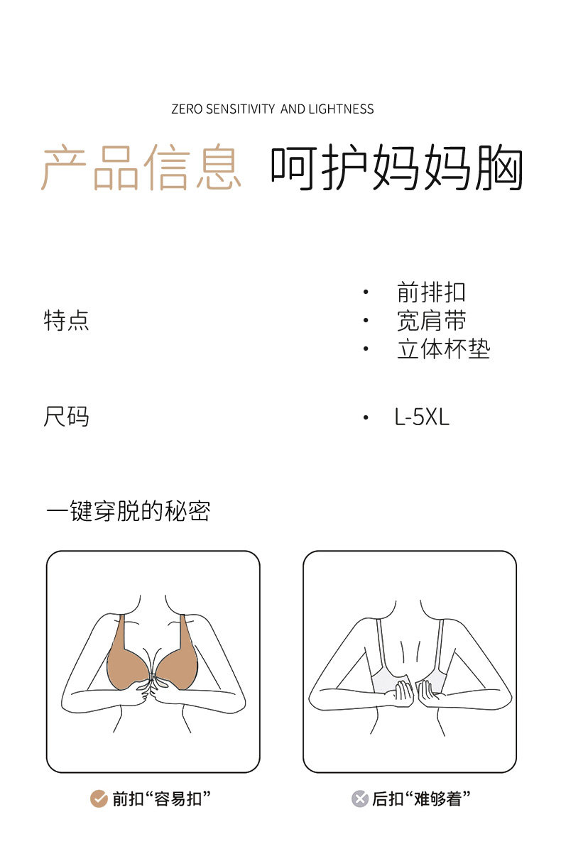 貓人媽媽內衣文胸中年婦女收副乳防下垂中老年專用前釦無鋼圈胸罩