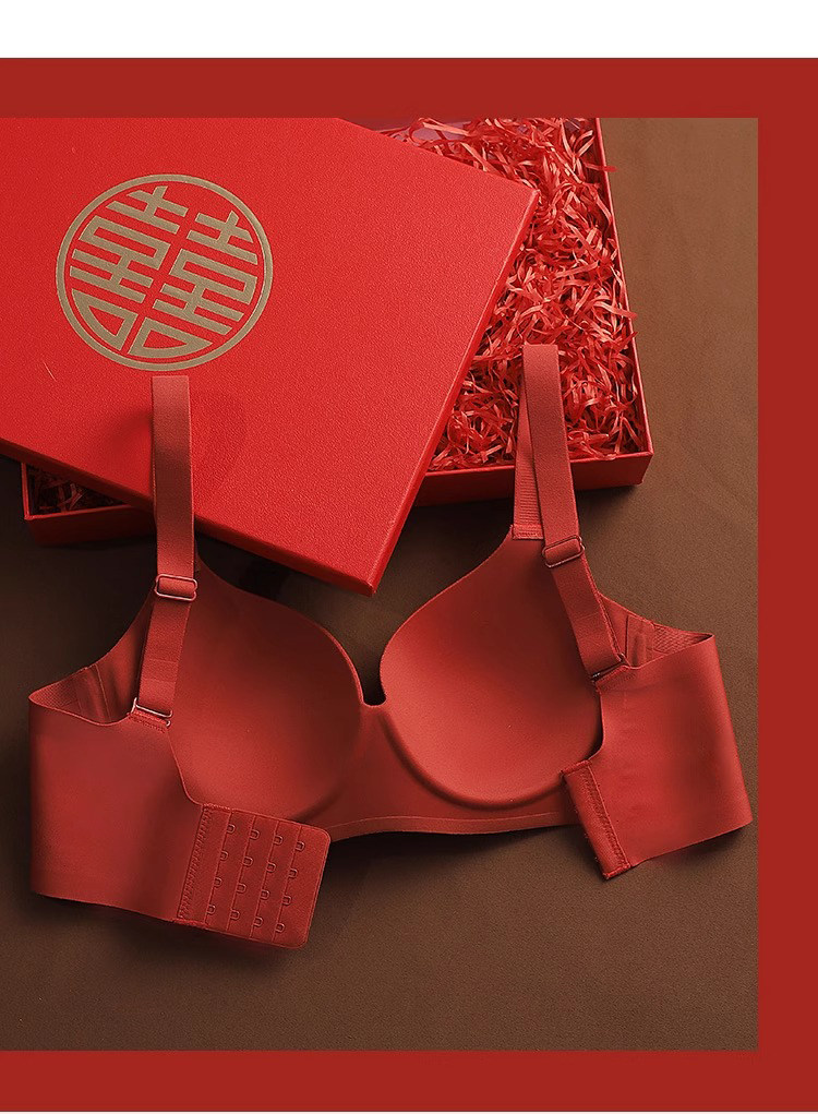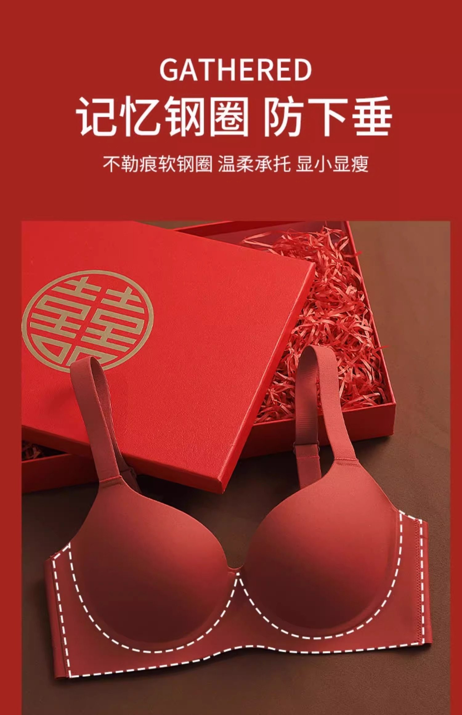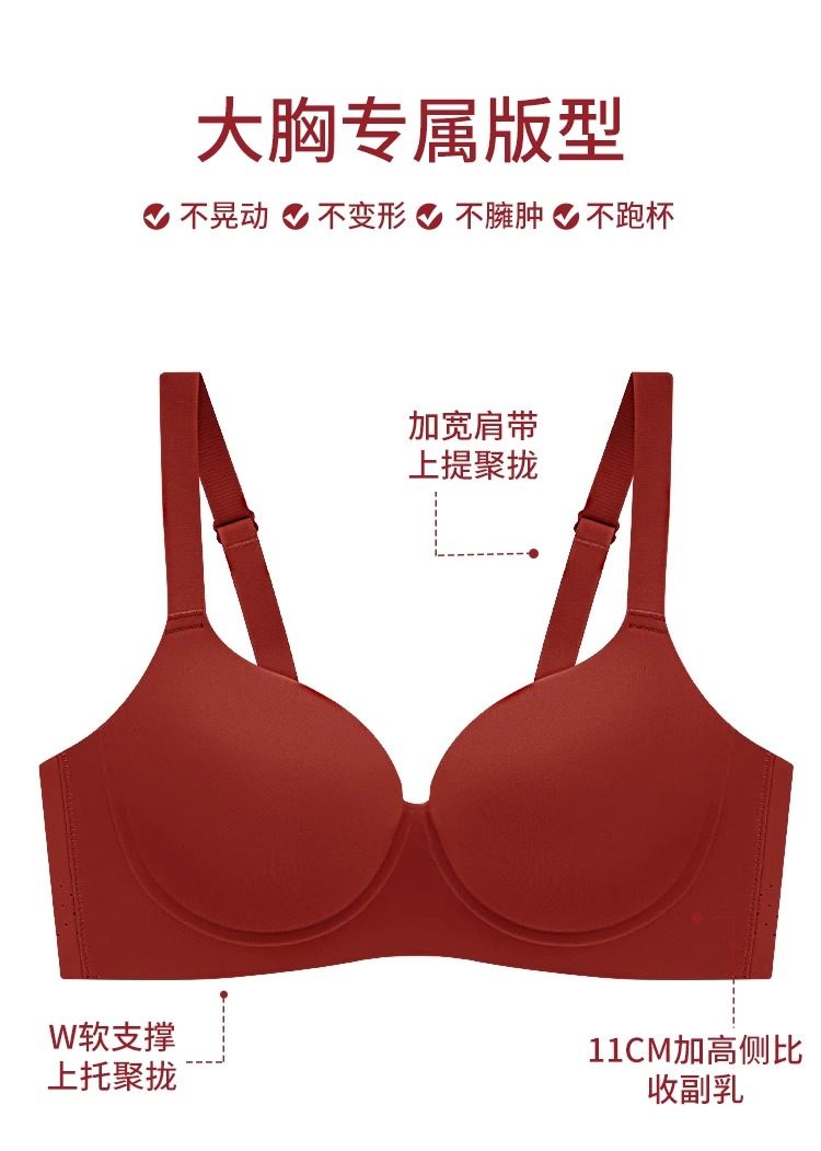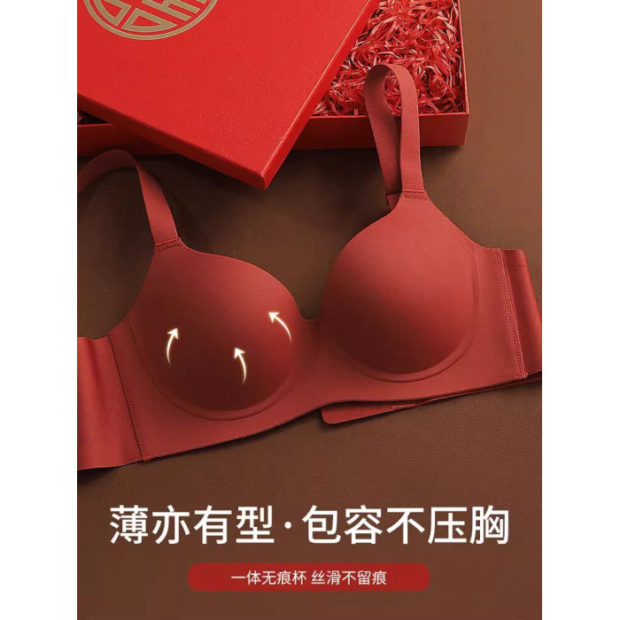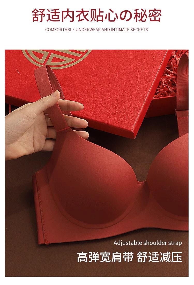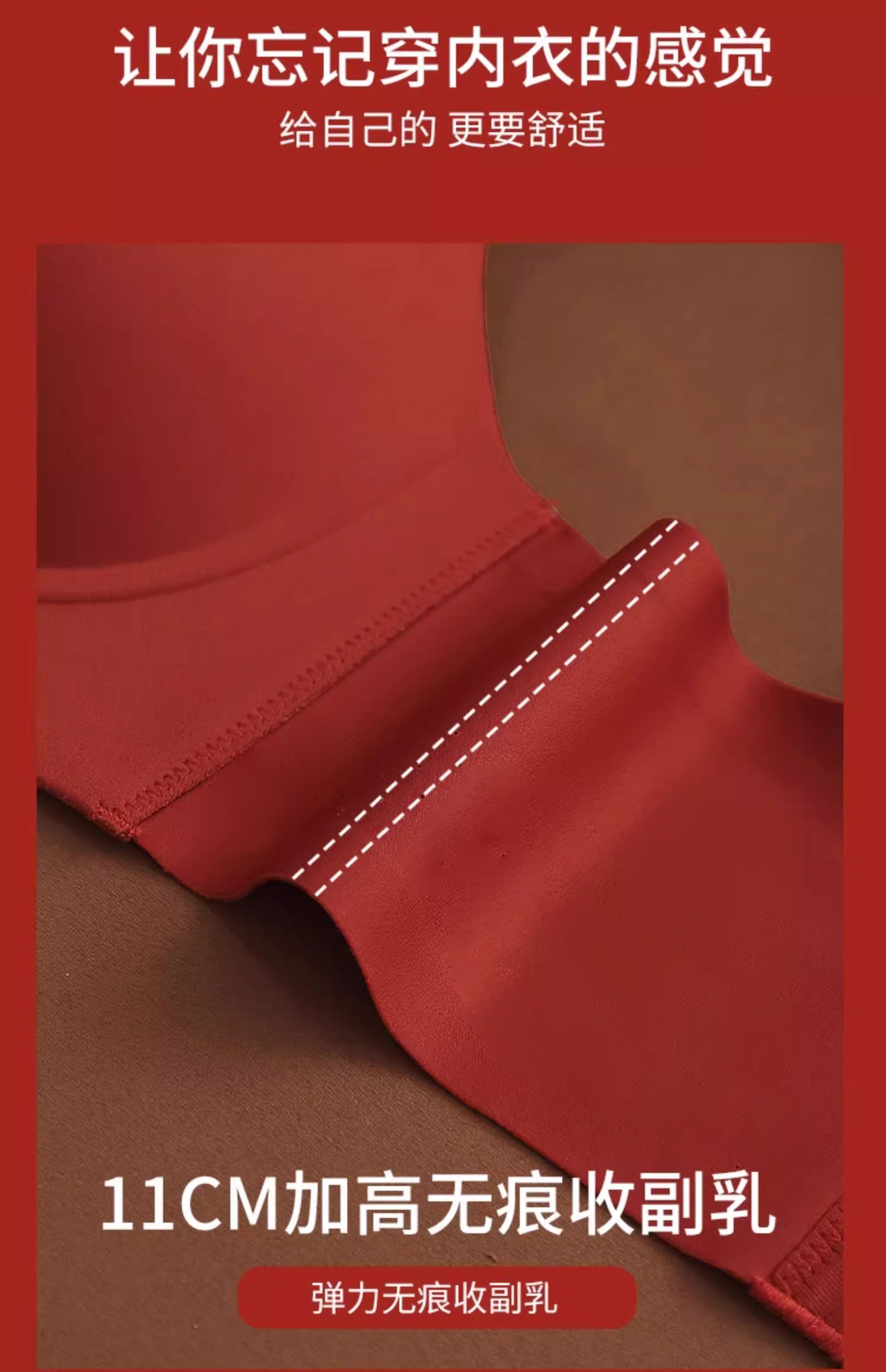 紅色內衣女結婚新娘大胸顯小薄款聚攏大碼收副乳本命年無痕文胸罩