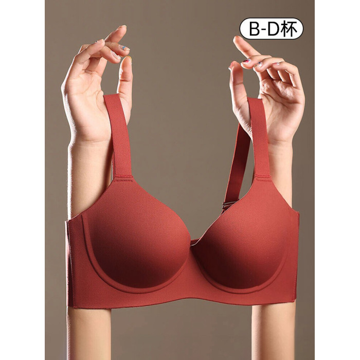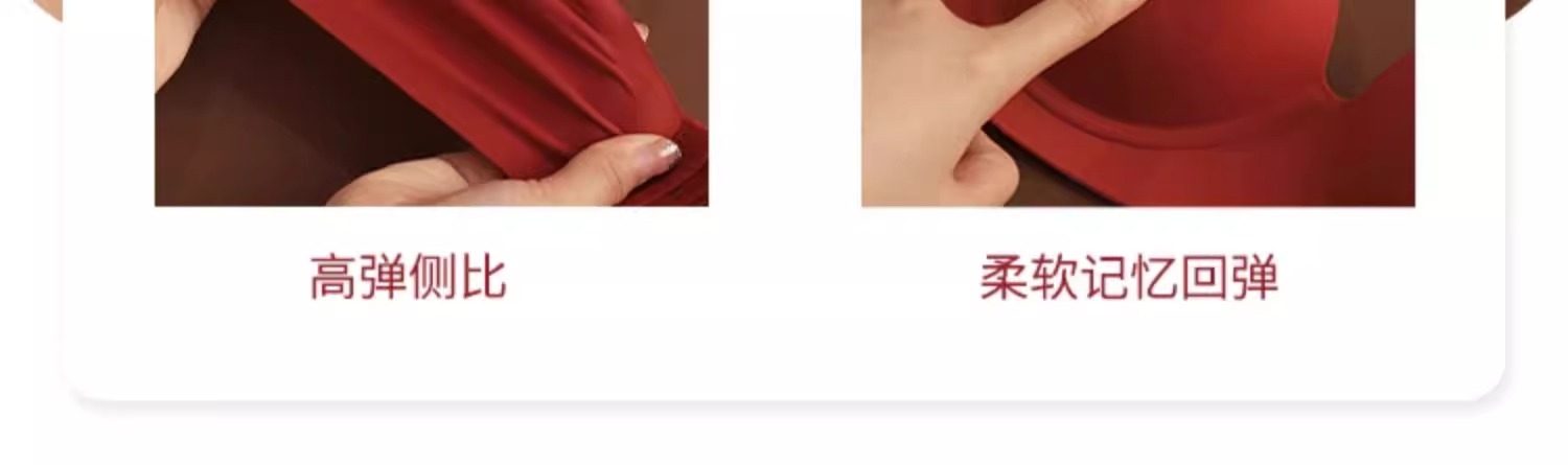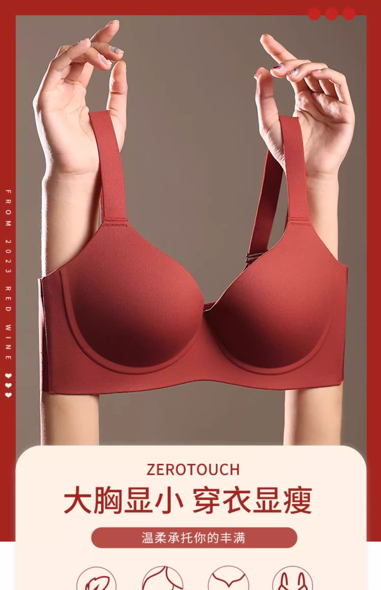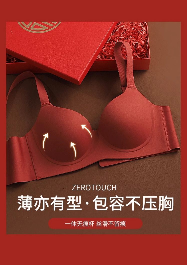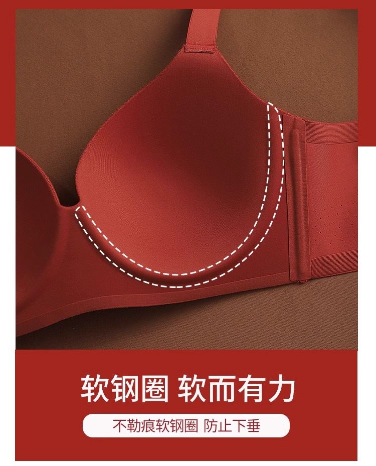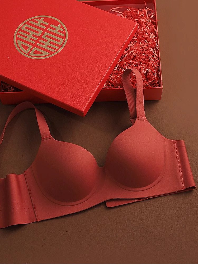 紅色內衣女結婚新娘大胸顯小薄款聚攏大碼收副乳本命年無痕文胸罩