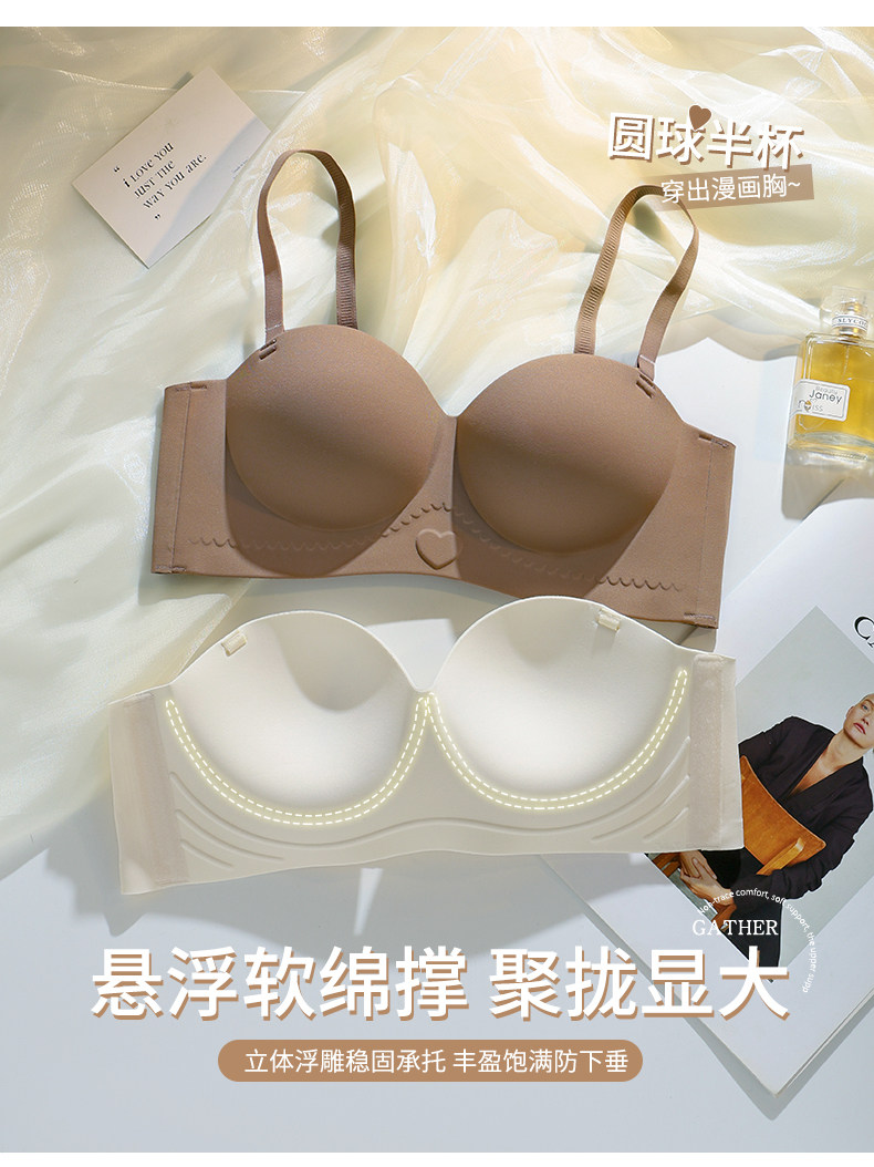 穿出圓圓胸外擴型內衣女小胸聚攏顯大胸罩無痕半杯無肩帶防滑文胸