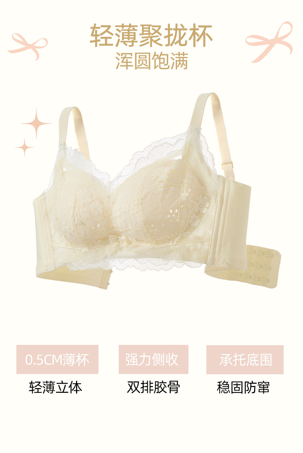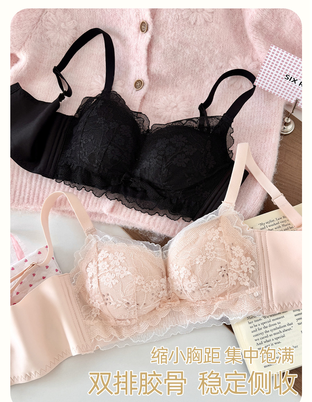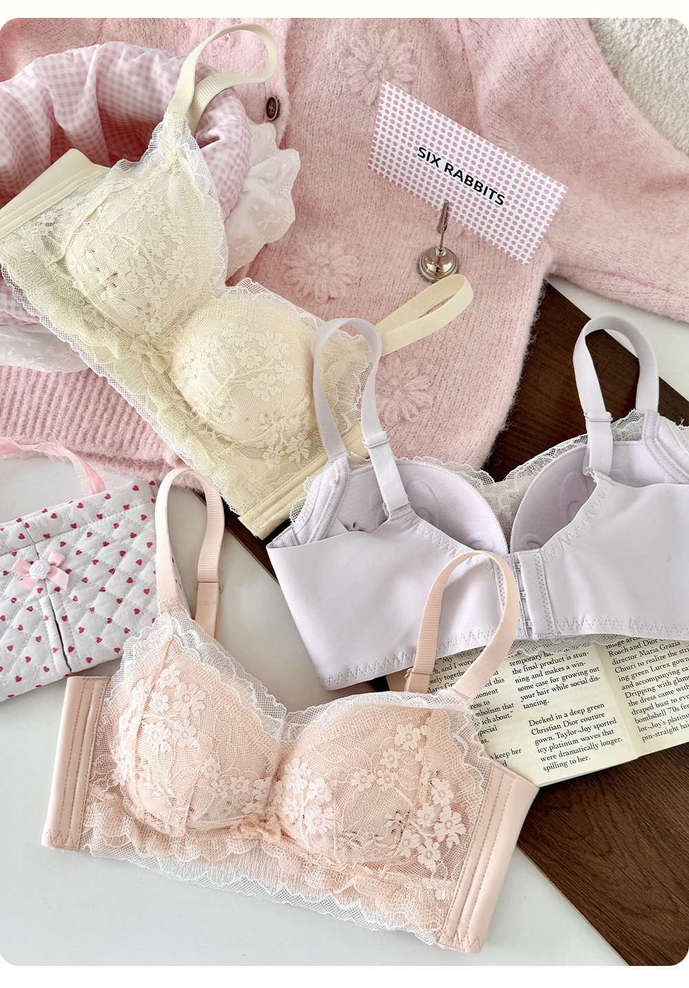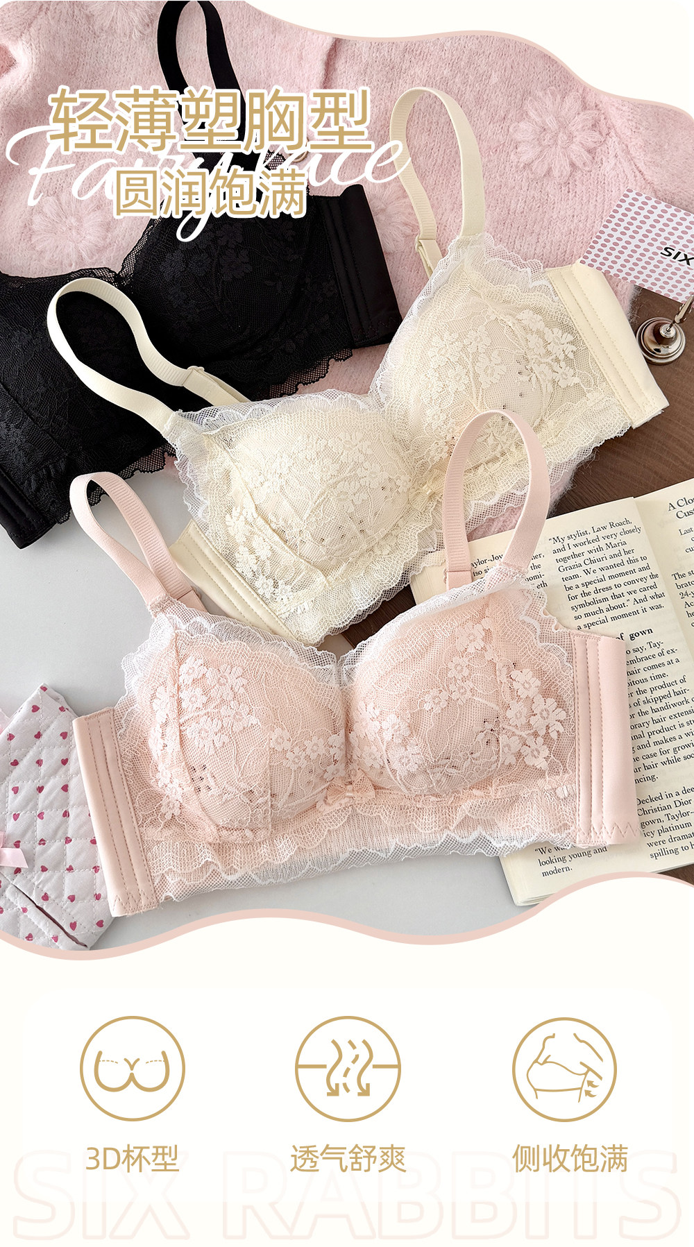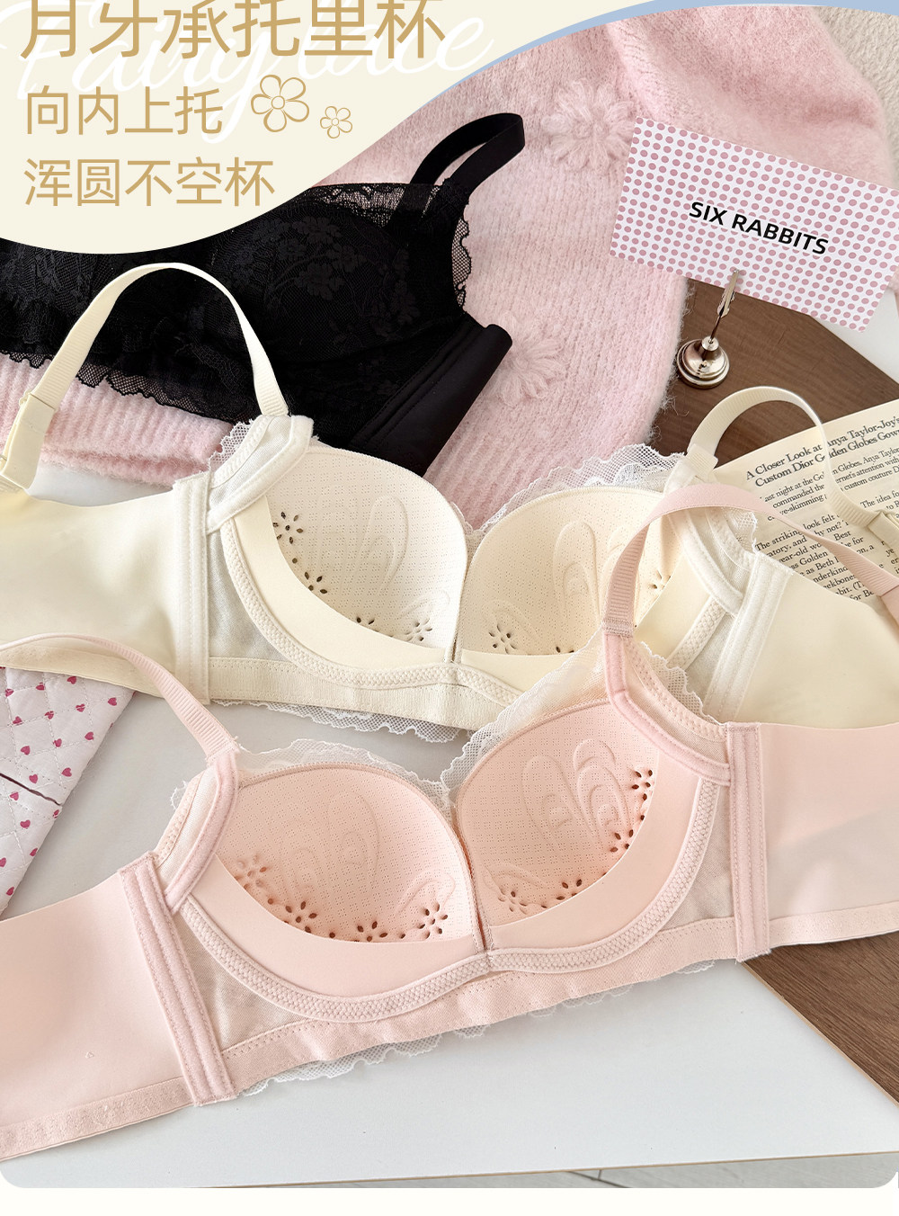 六隻兔子蕾絲內衣女小胸聚攏胸罩無鋼圈側收副乳防下垂文胸