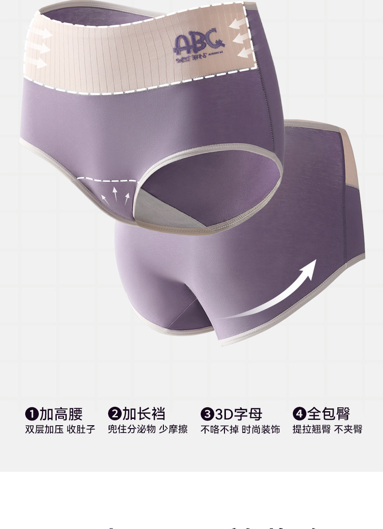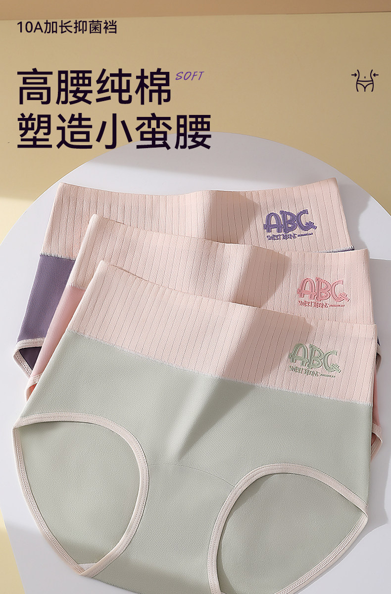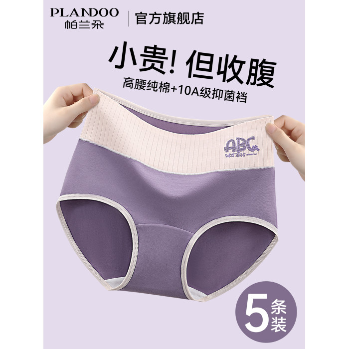 帕蘭朵高腰純棉內褲女10A抑菌加長襠提臀收腹不夾臀大碼女三角褲