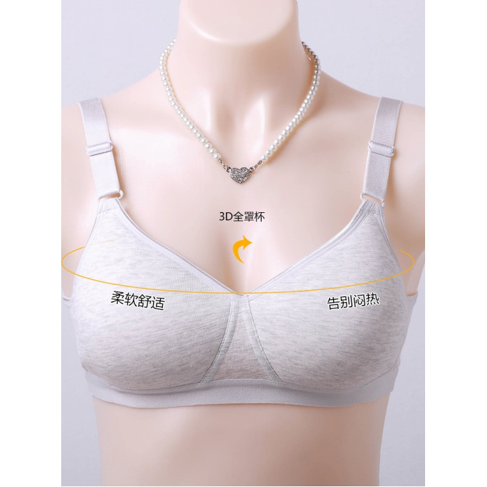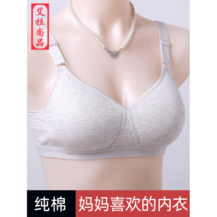 中老年媽媽胸罩 背心式純棉後釦內衣 無鋼圈聚攏薄款彩棉文胸