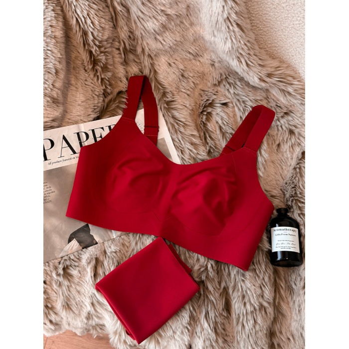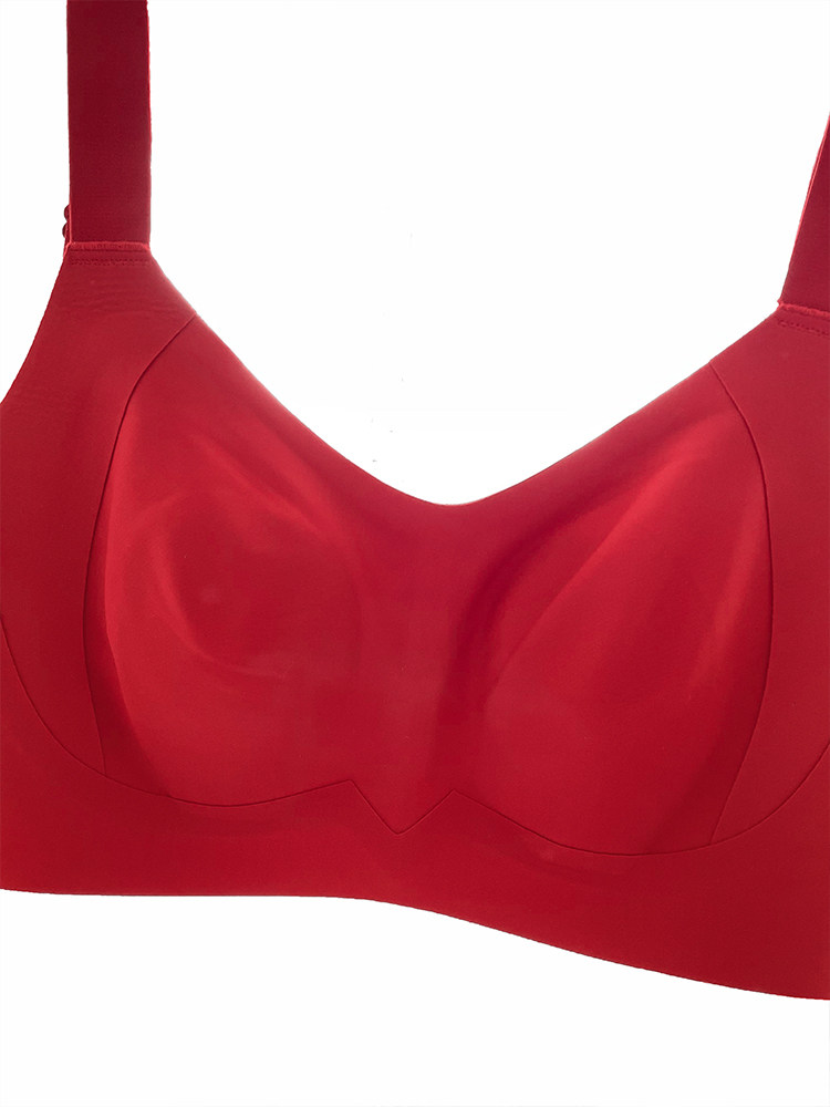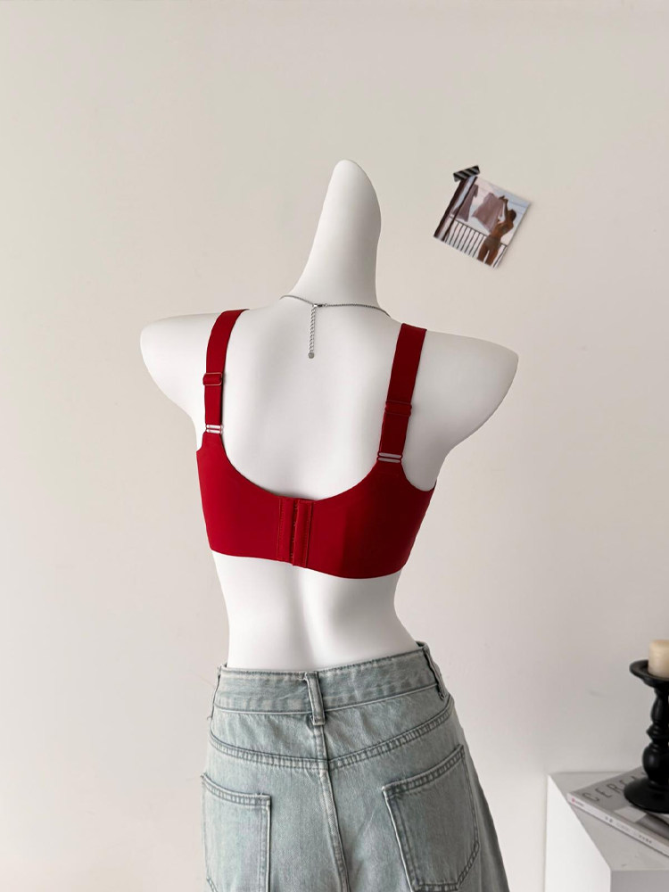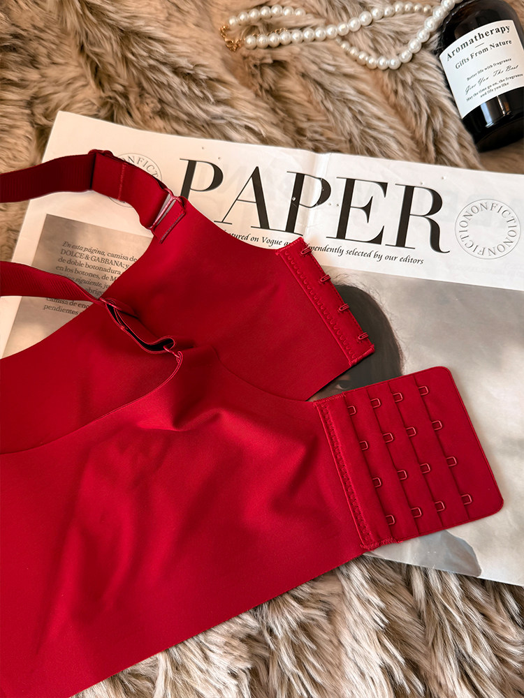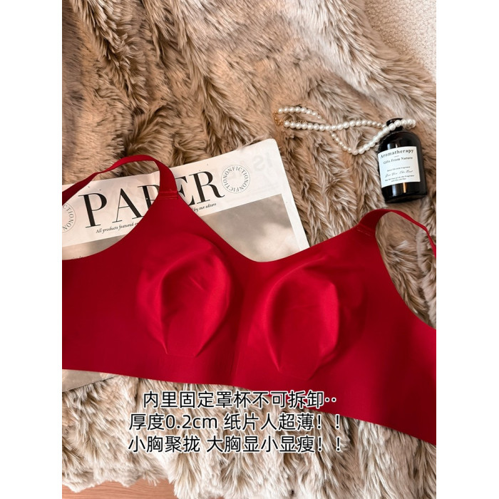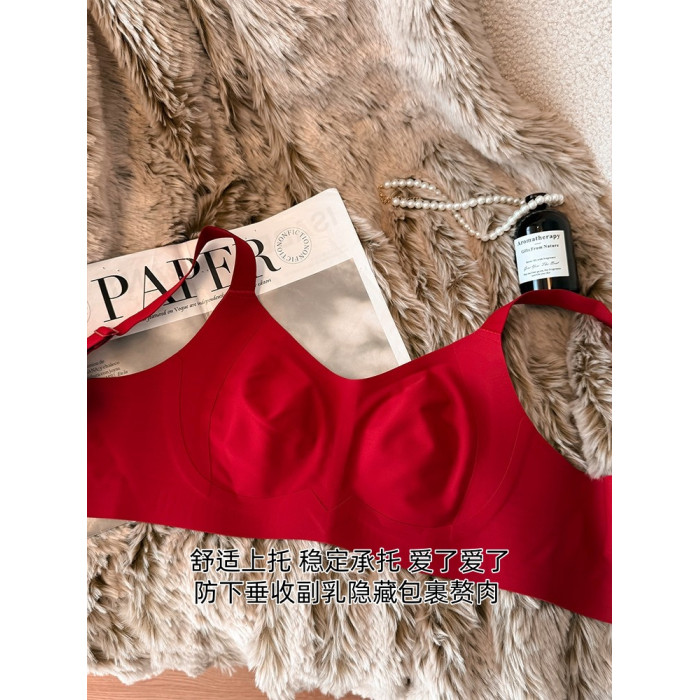 無痕超薄紅色內衣女大胸顯小提拉防下垂收副乳無鋼圈本命年文胸罩