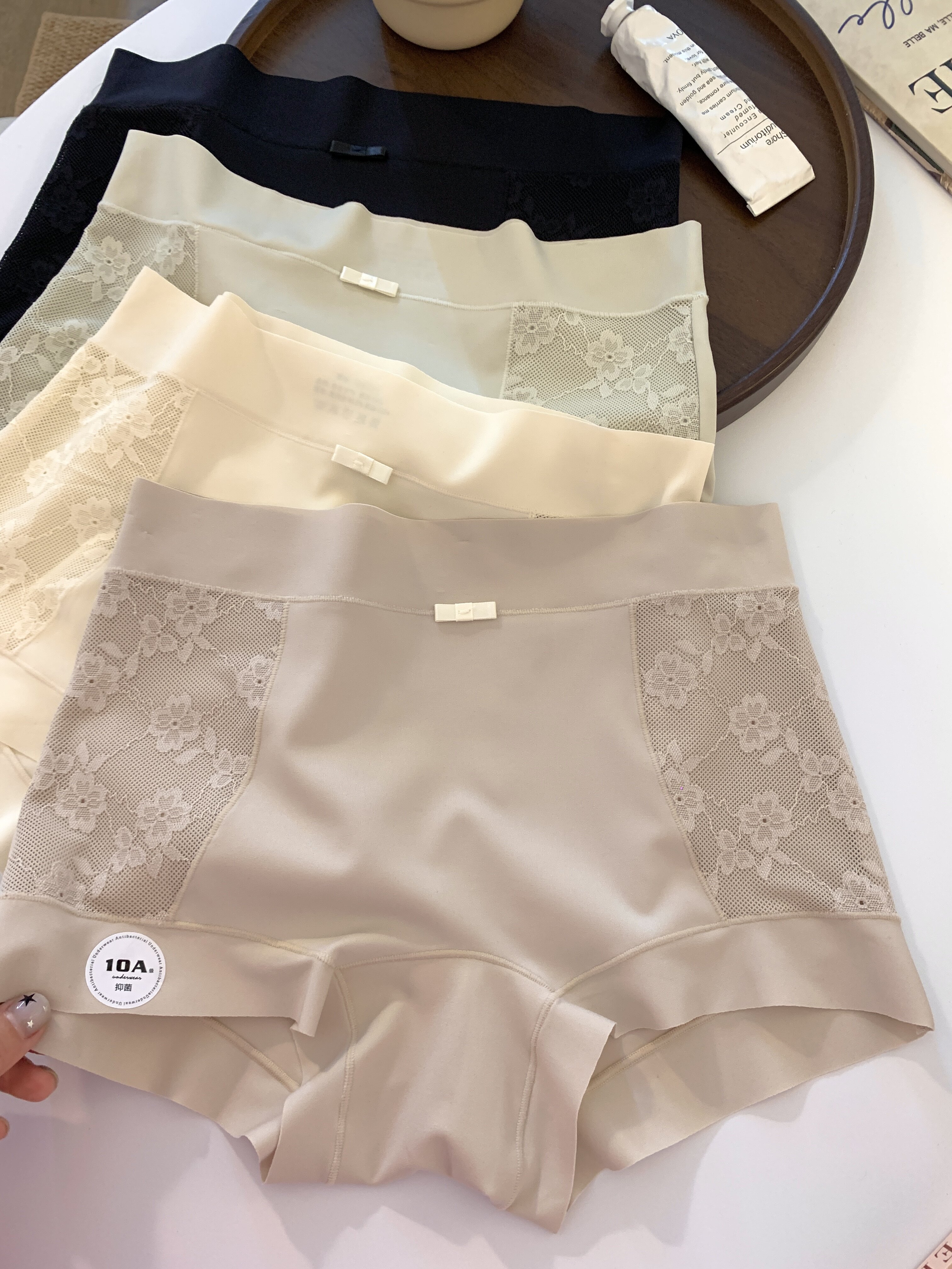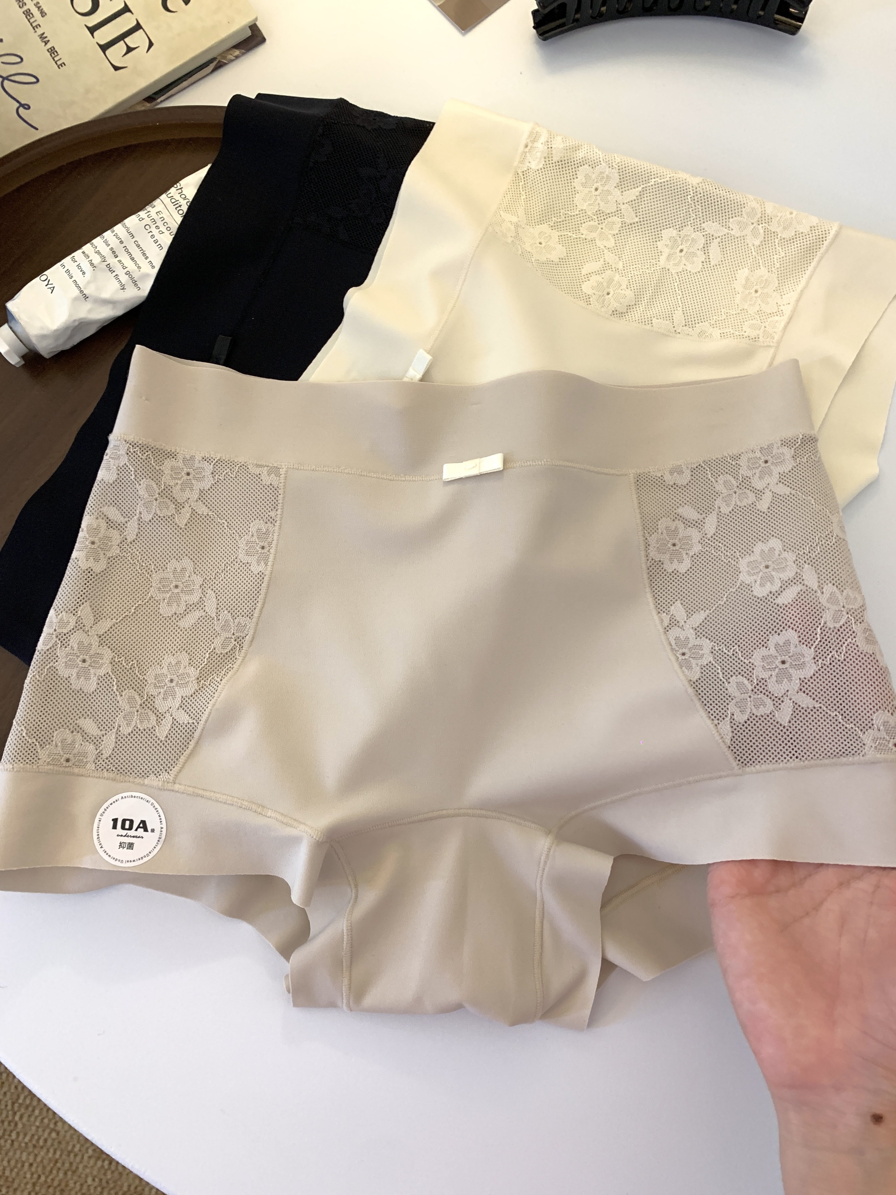 新款莫代爾蕾絲女士內褲10A抗菌底襠四季可穿無痕高腰透氣平角褲