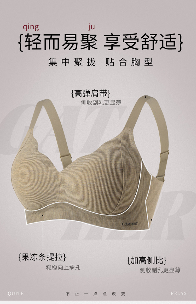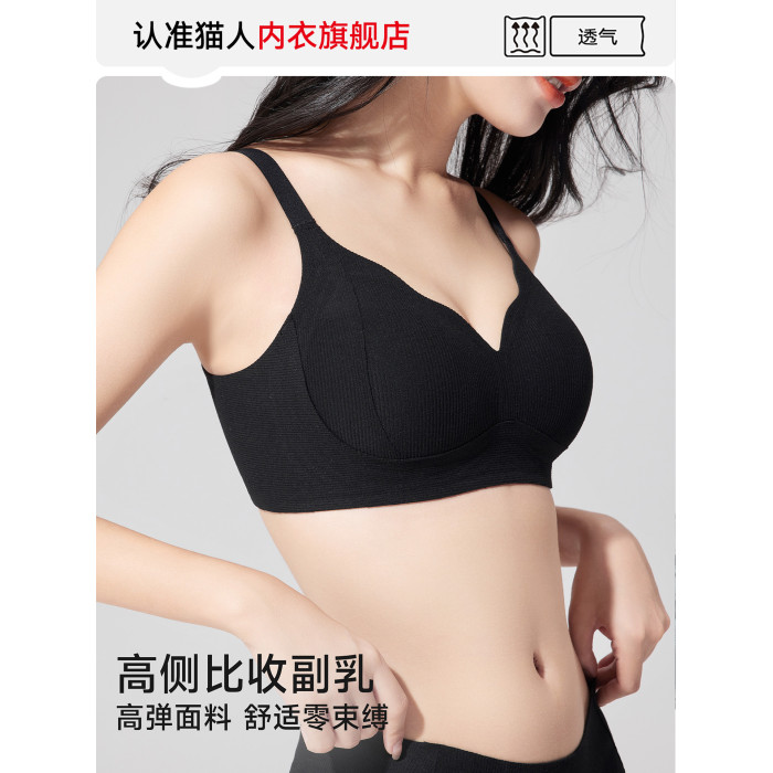 貓人內衣女士收副乳防外擴上托防下垂無鋼圈小胸顯大文胸罩秋冬款