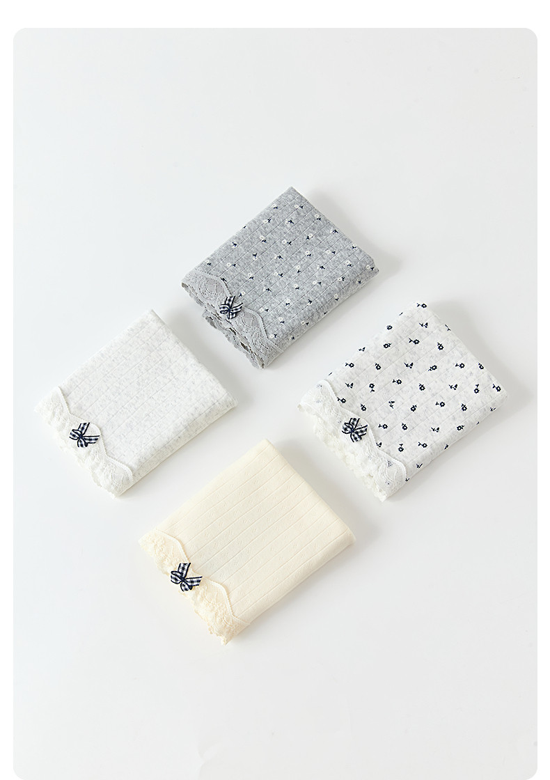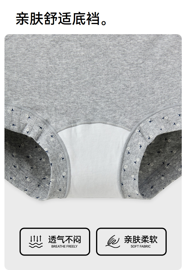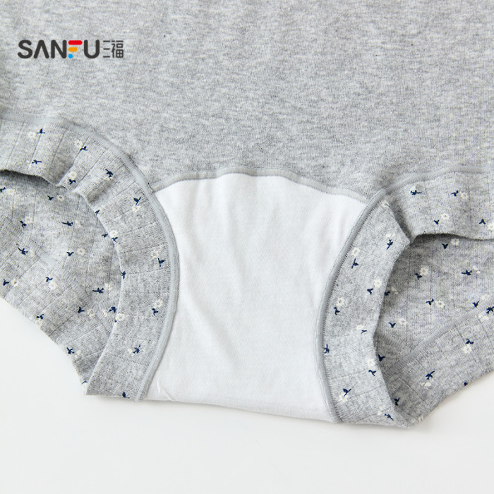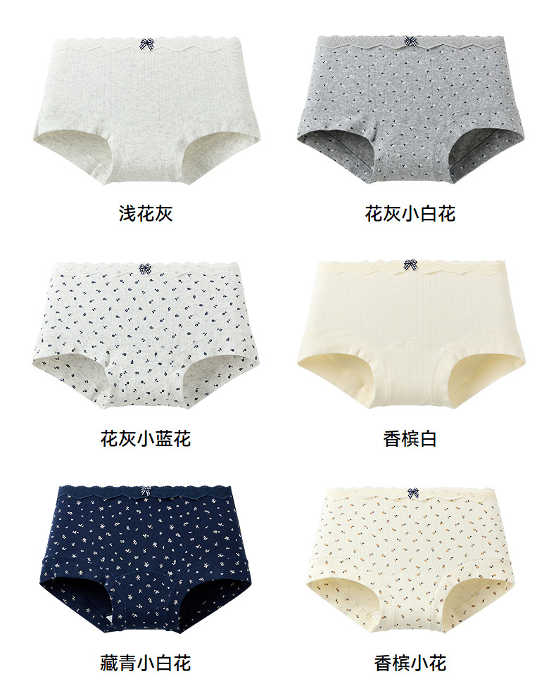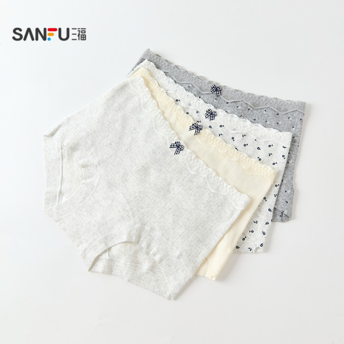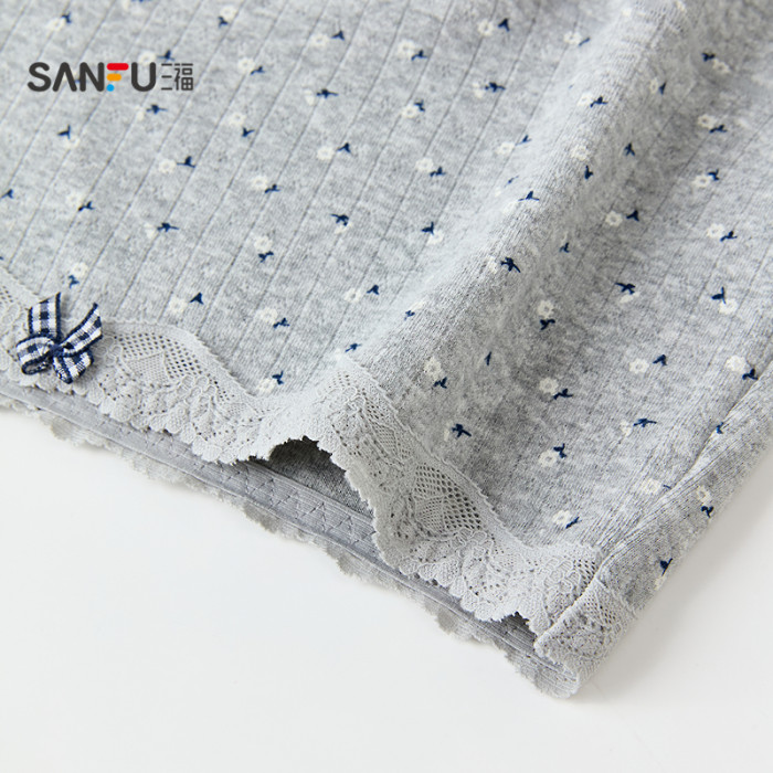 三福女中腰包臀內褲 清新碎花蕾絲腰頭柔軟親膚平角褲女512384