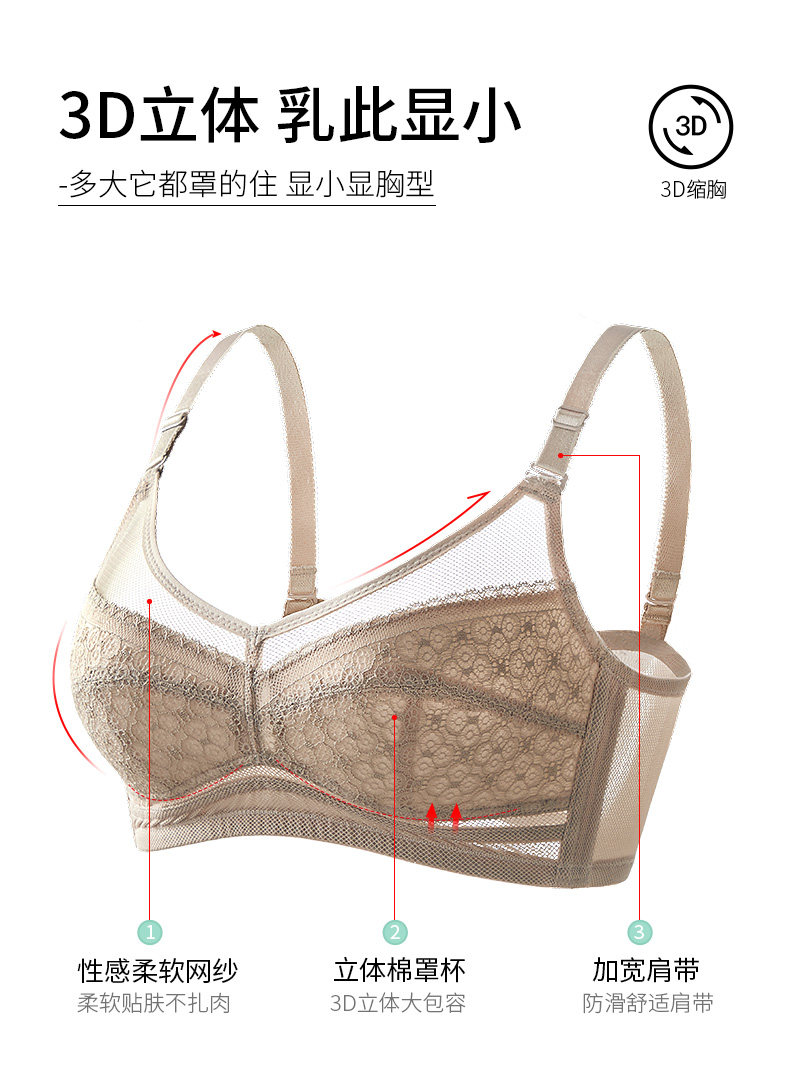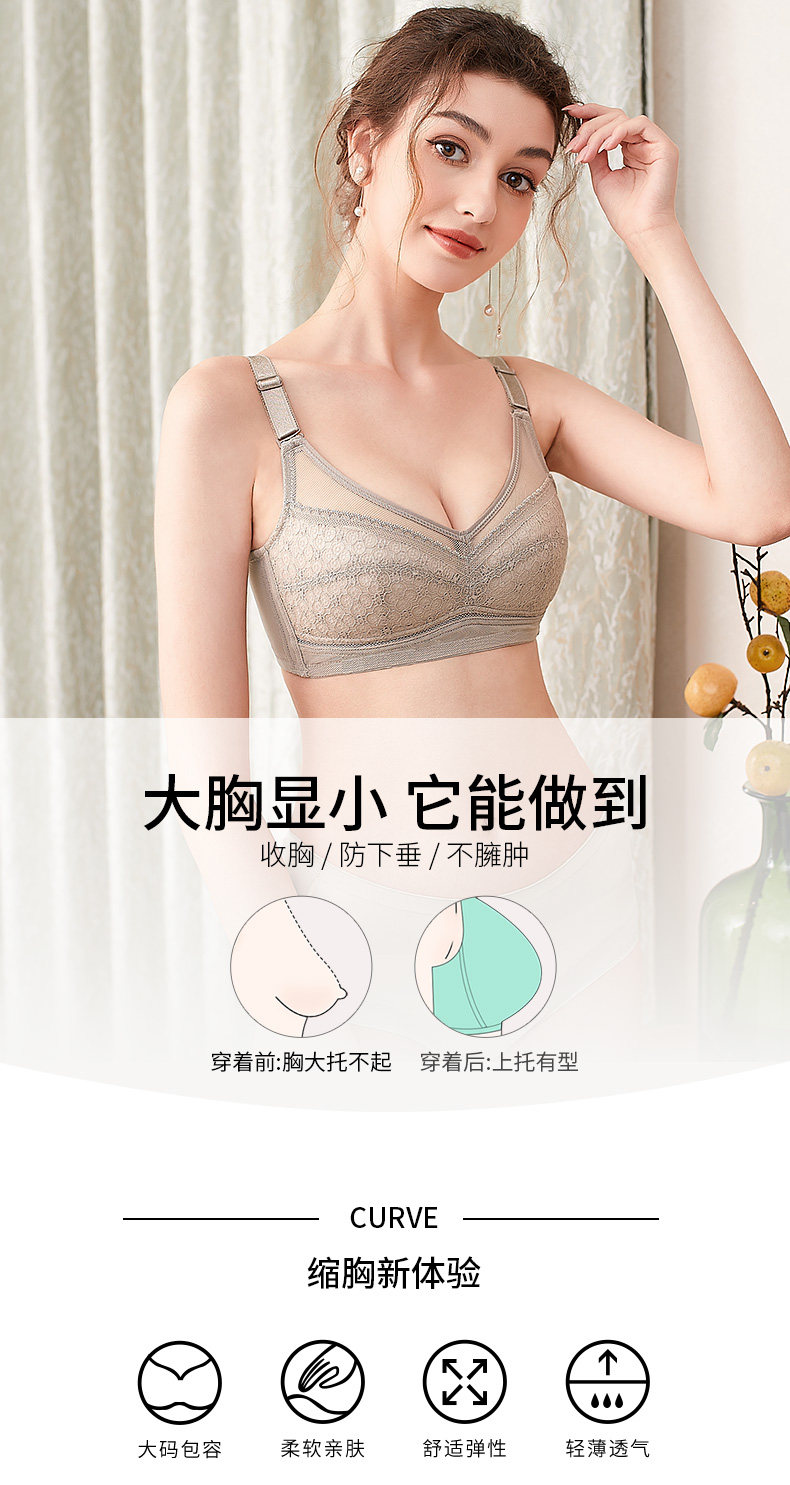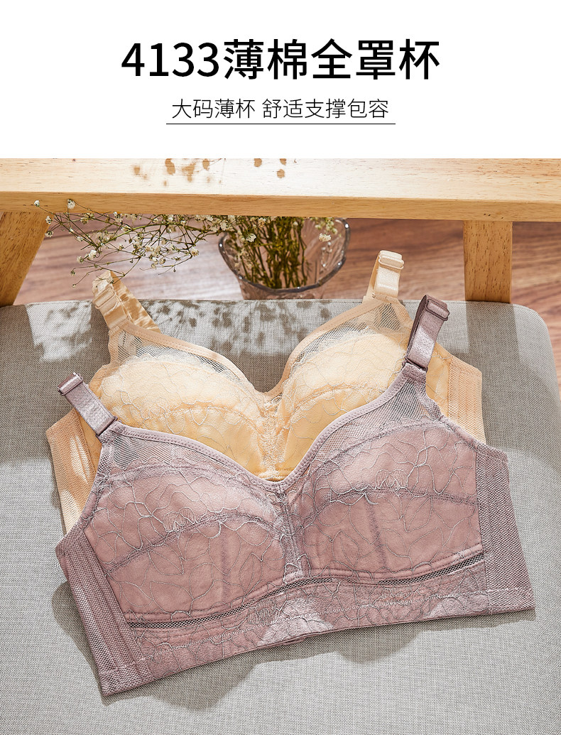 千奈美大胸顯小文胸薄款內衣女無鋼圈胸罩聚攏超薄大碼胖mm全罩杯