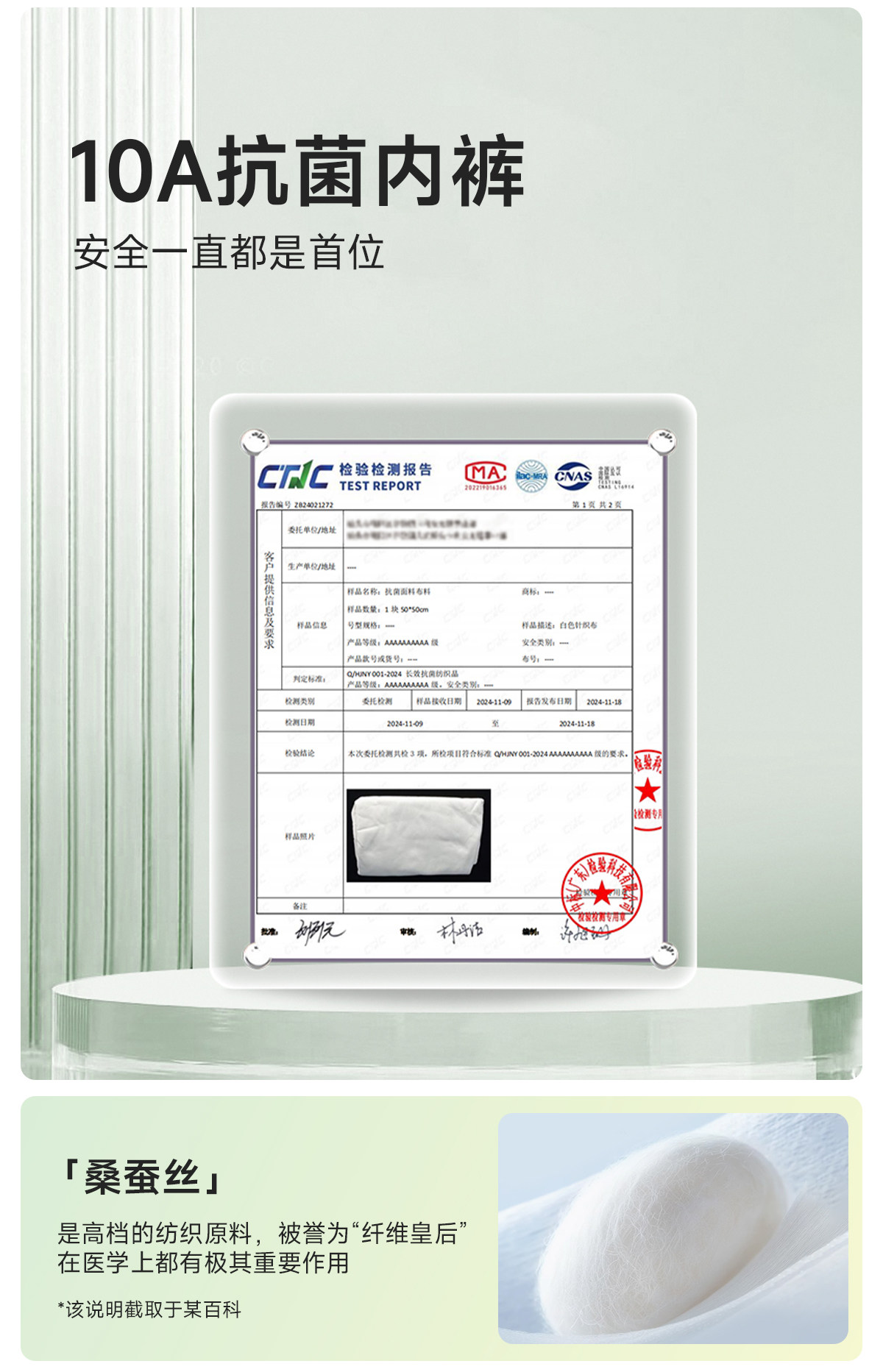 | 襠部材質成分 | 粘膠纖維(粘纖)87.7% 桑蠶絲7.5% 聚氨酯彈性纖維(氨綸)4.8% |