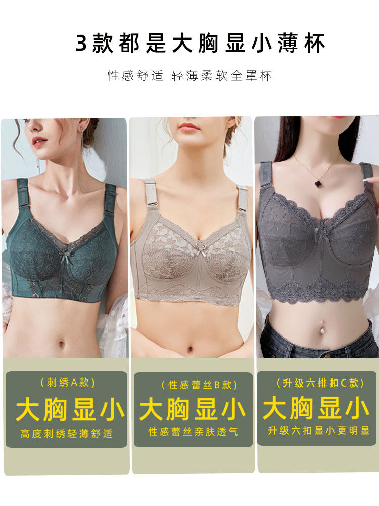 內衣女薄款大胸顯小胸全罩杯文胸夏收副乳聚攏防下垂大碼超薄胸罩
