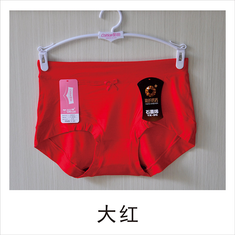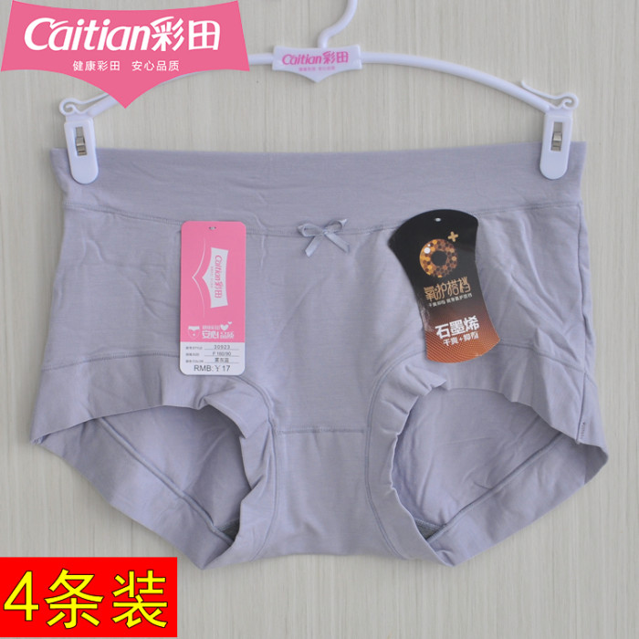 4條裝彩田內褲女純色簡約莫代爾棉石墨烯襠少女平角底褲中腰30923