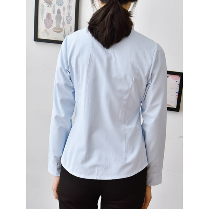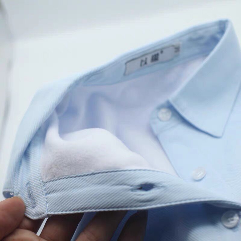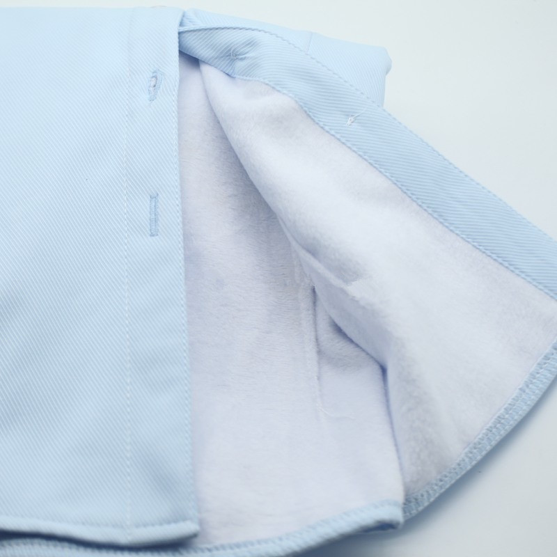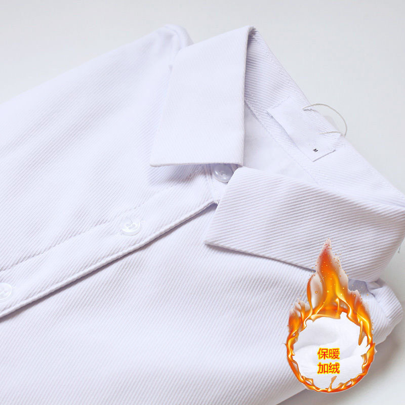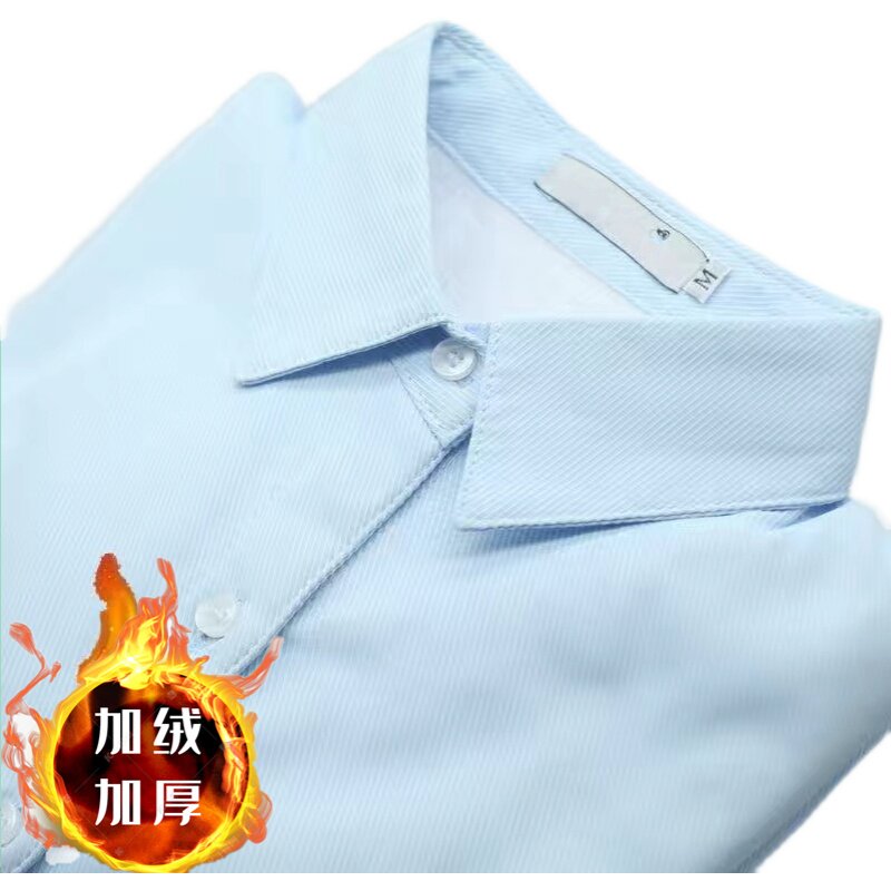 加絨淺藍襯衫女方領斜紋加厚加絨保暖職業裝工裝收腰長袖辦公襯衣