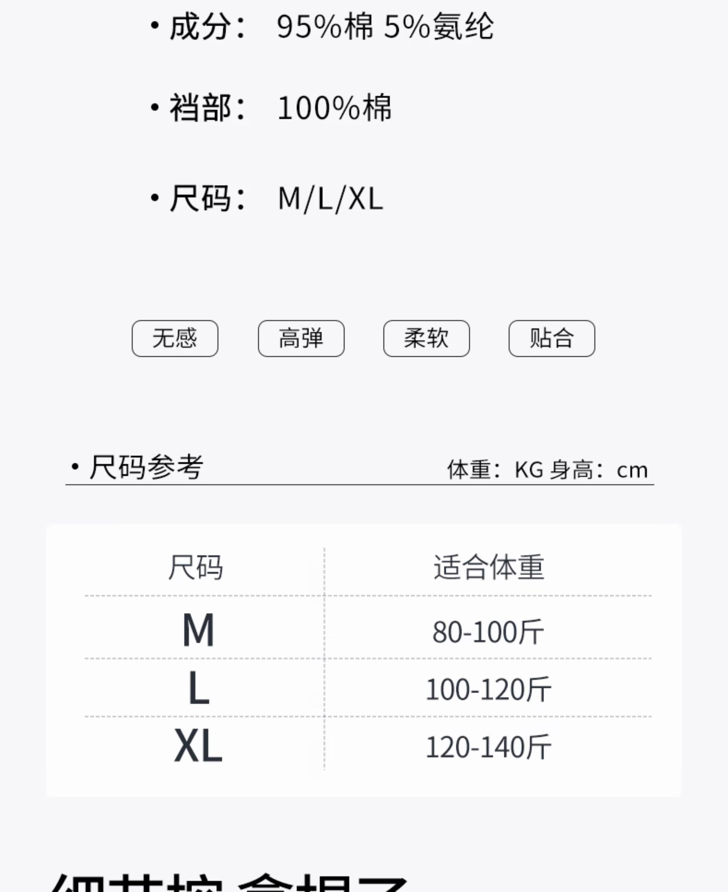 | 大身材質成分 | 棉95% 聚氨酯彈性纖維(氨綸)5% |