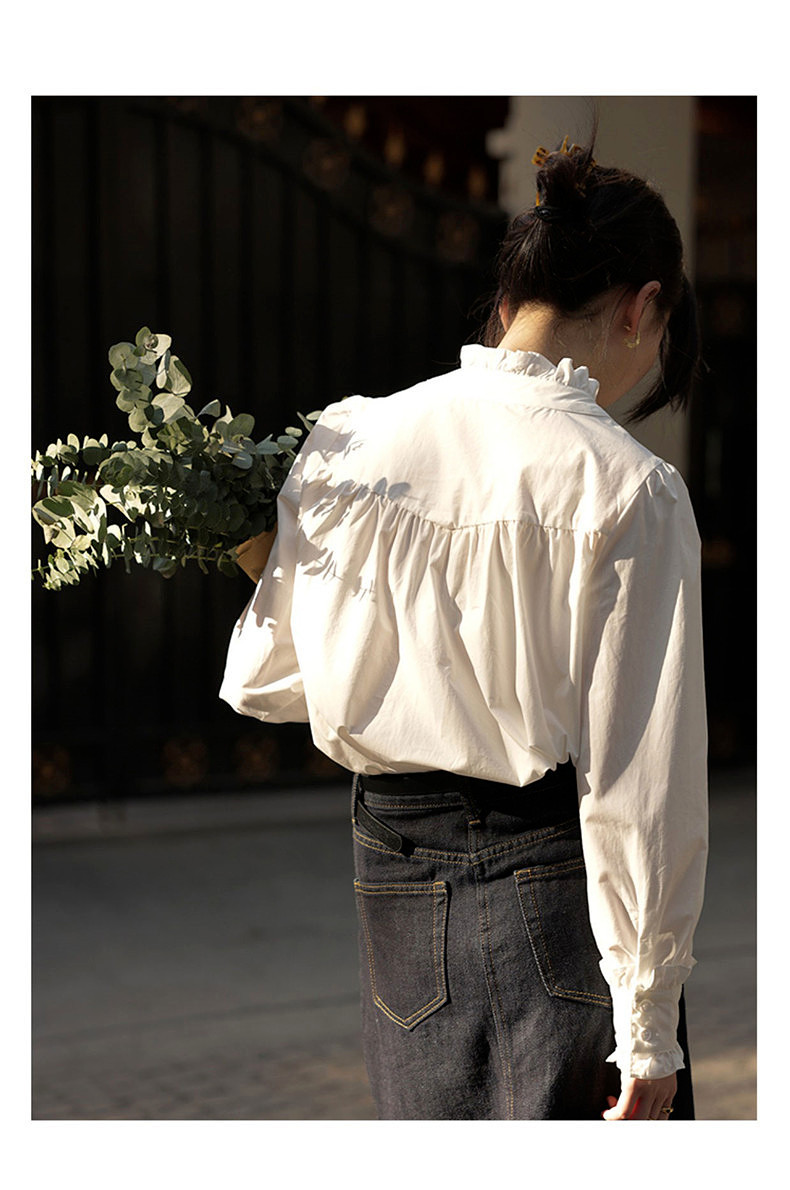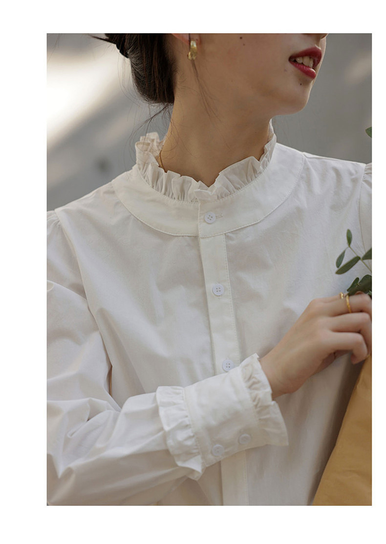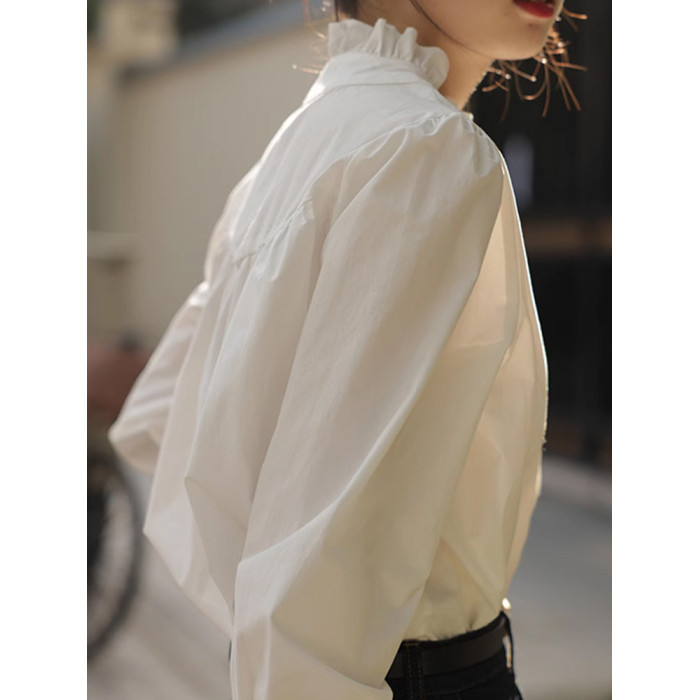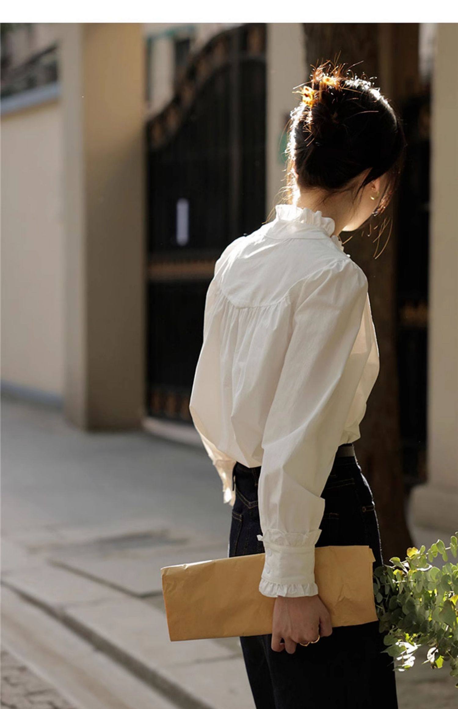 法式白色花邊領襯衫女款2026新款爆款內搭襯衣長袖上衣設計感小衆