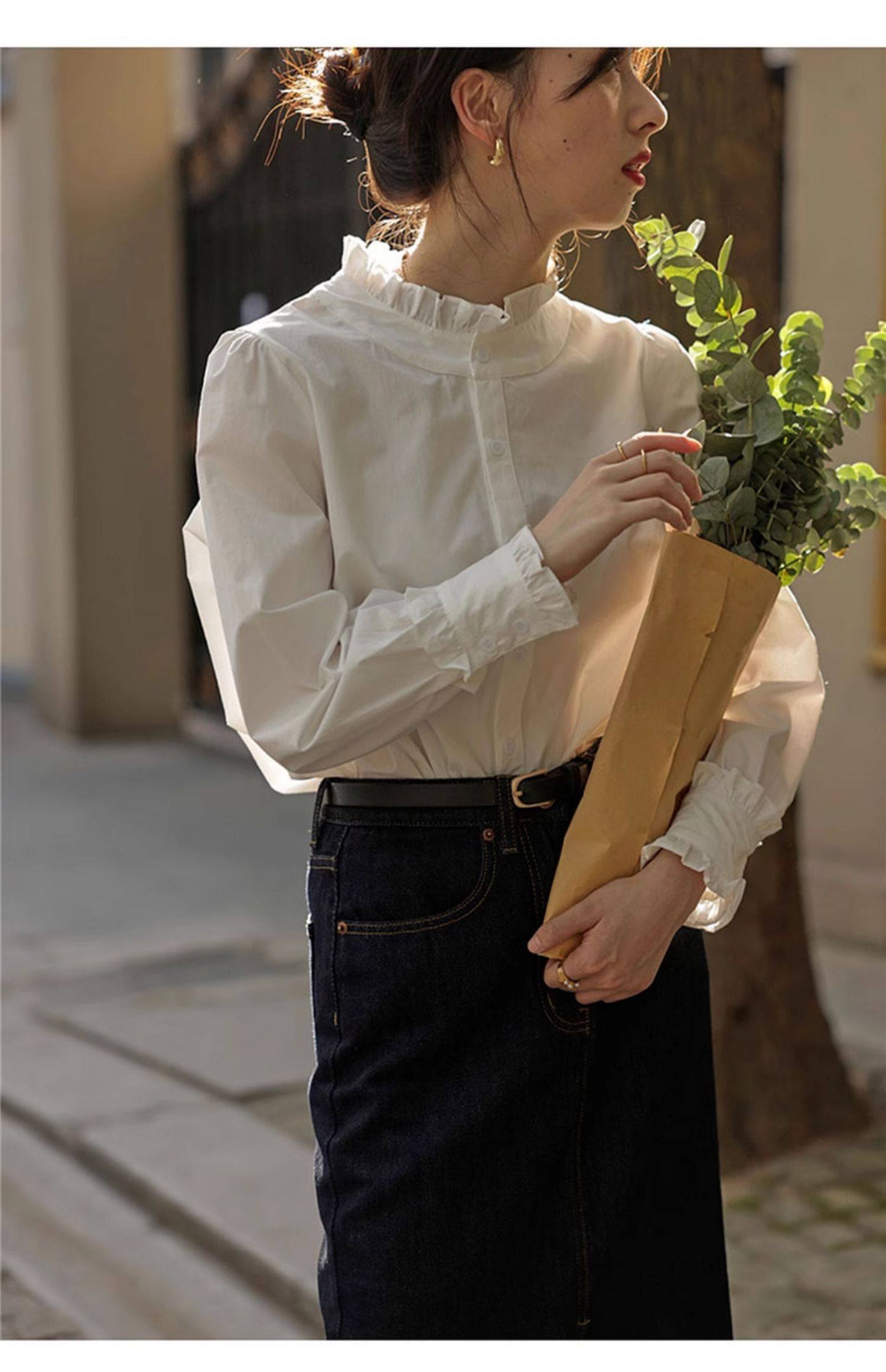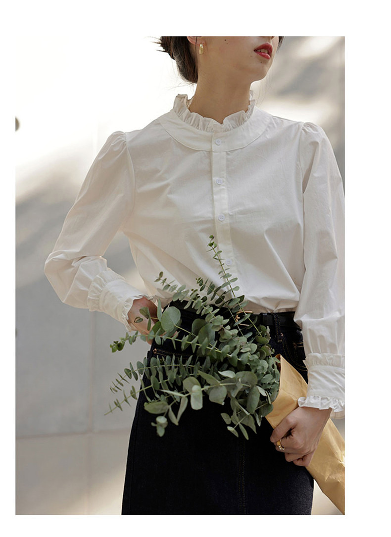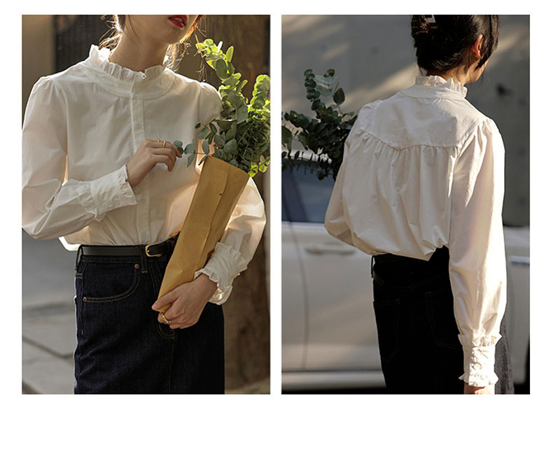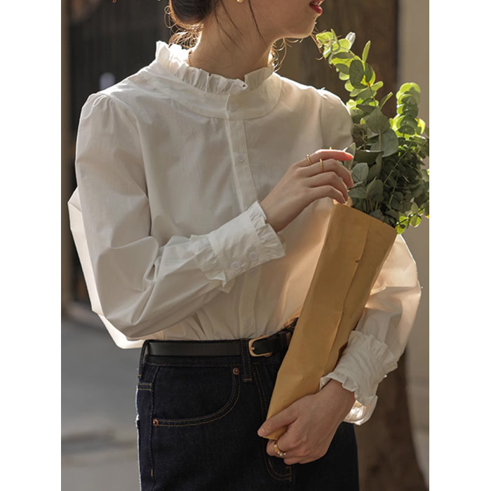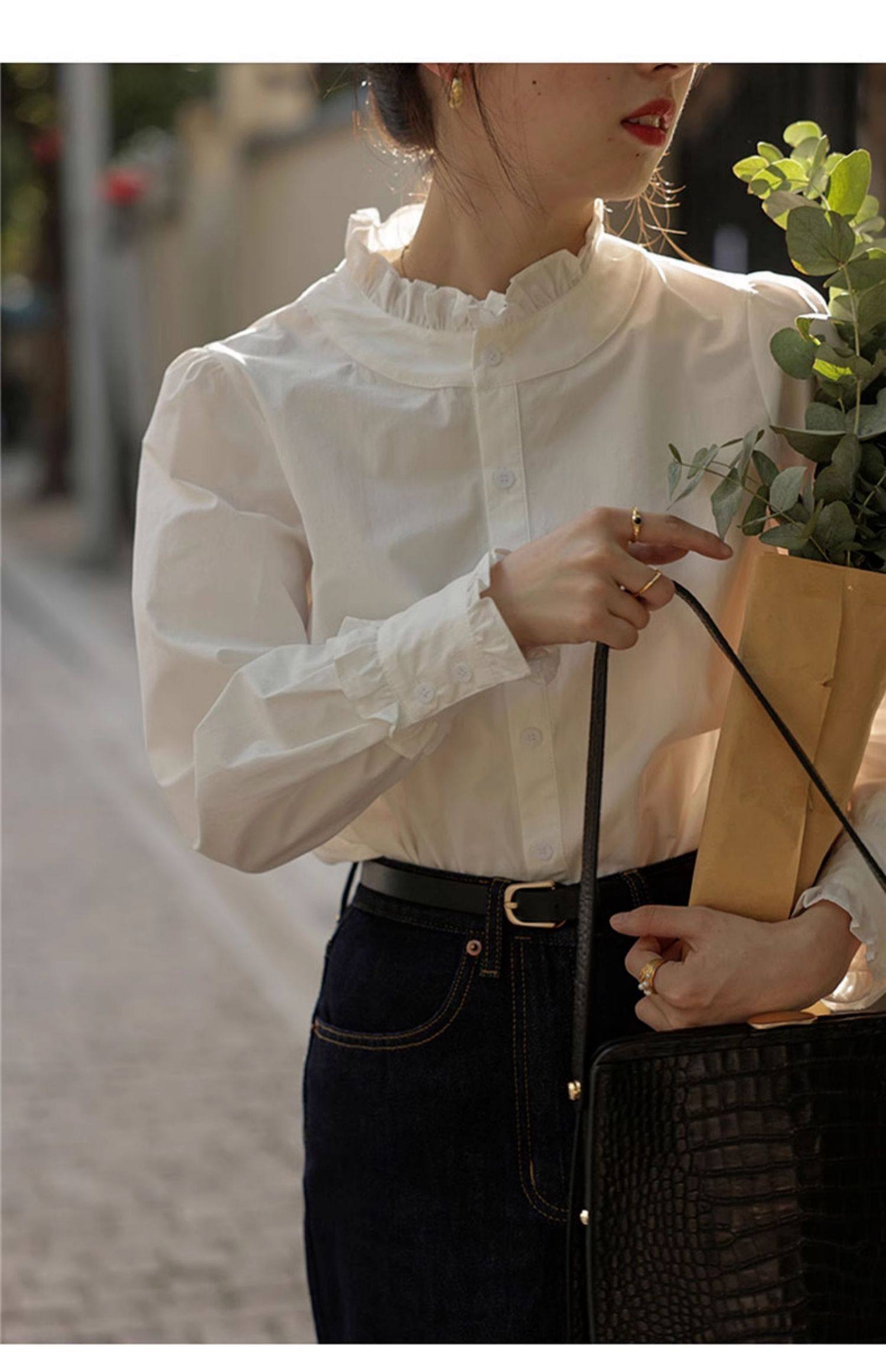 法式白色花邊領襯衫女款2026新款爆款內搭襯衣長袖上衣設計感小衆