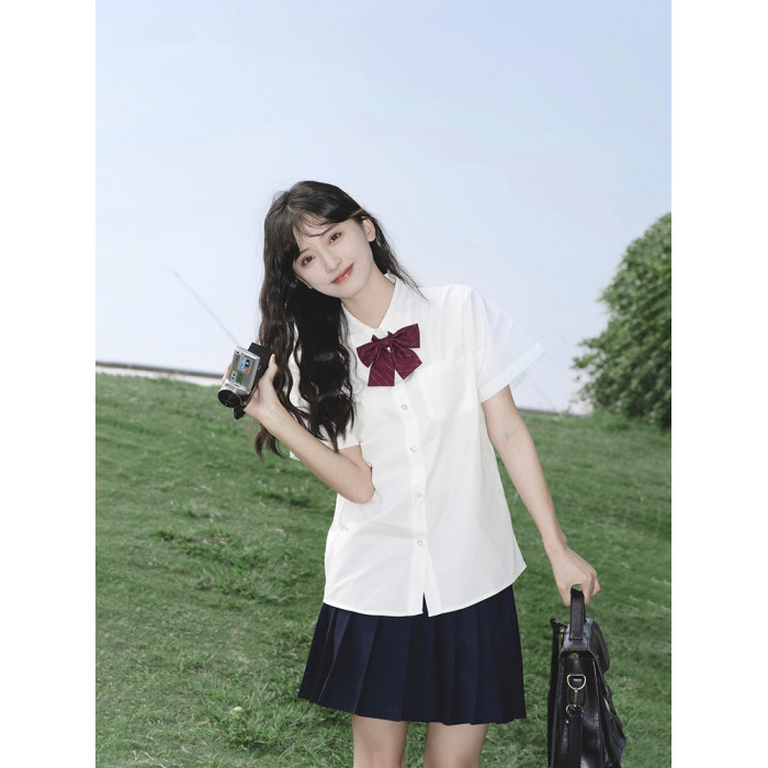 白襯衫女秋季長袖學院風大碼小個子內搭中學生打底寬鬆jk上衣襯衣