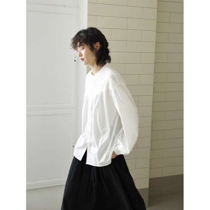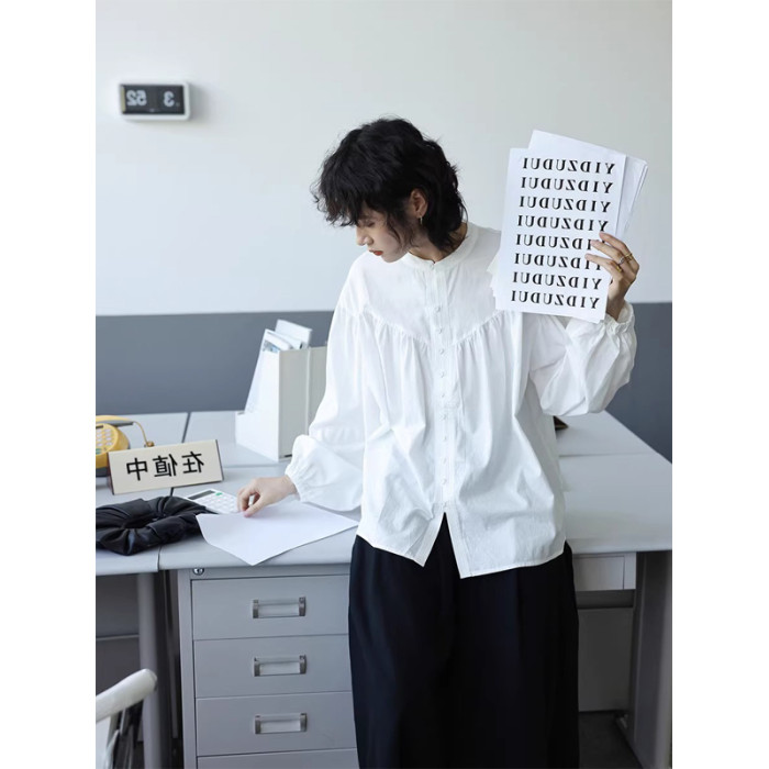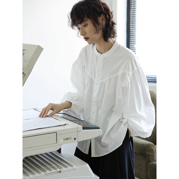 法式氣質白色襯衫女秋冬2025年新款百搭慵懶風燈籠袖襯衣立領上衣