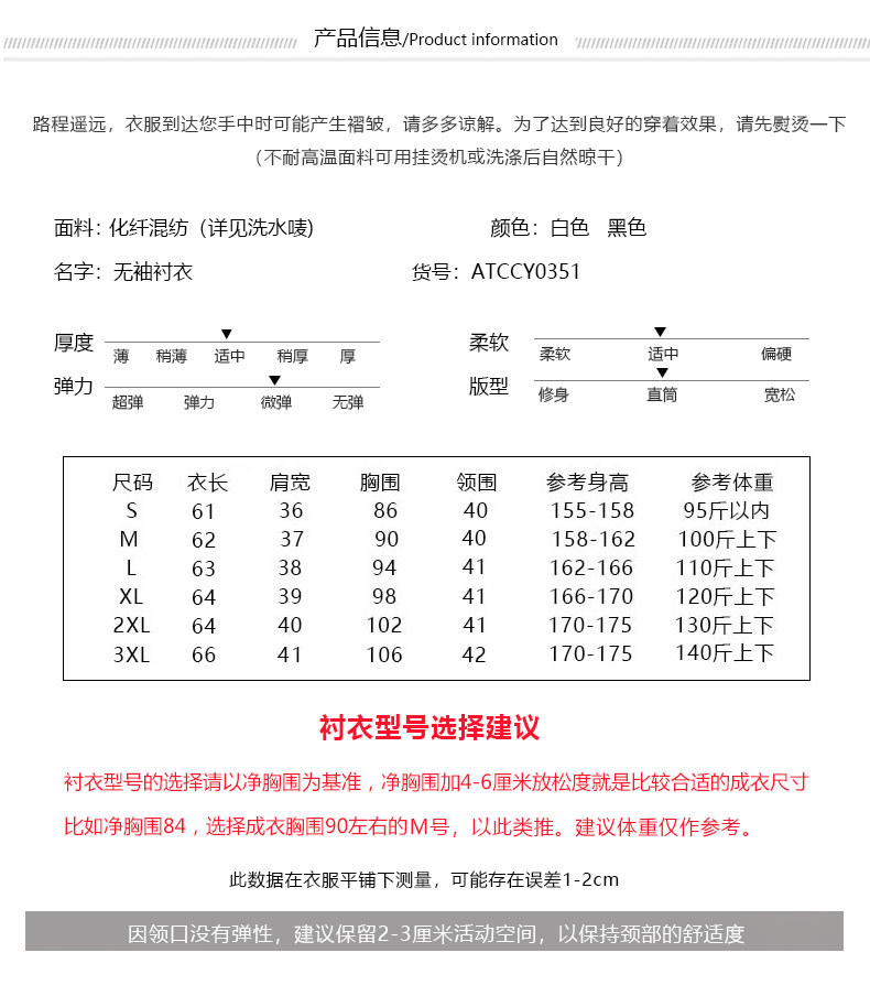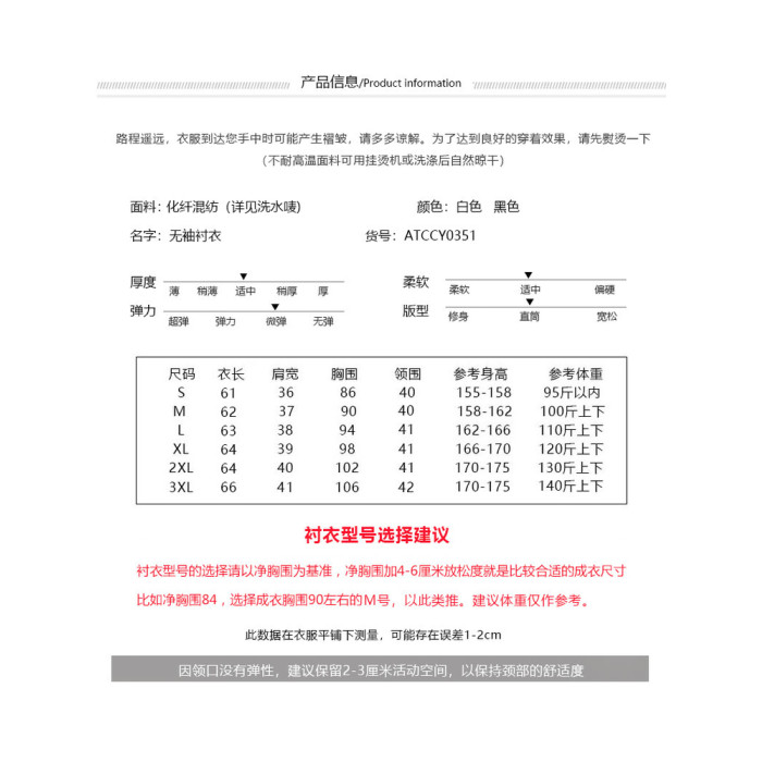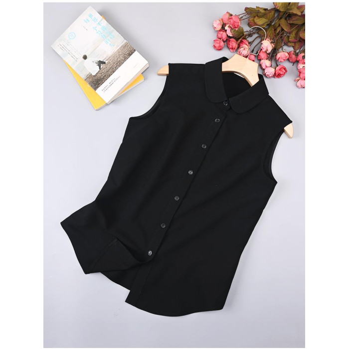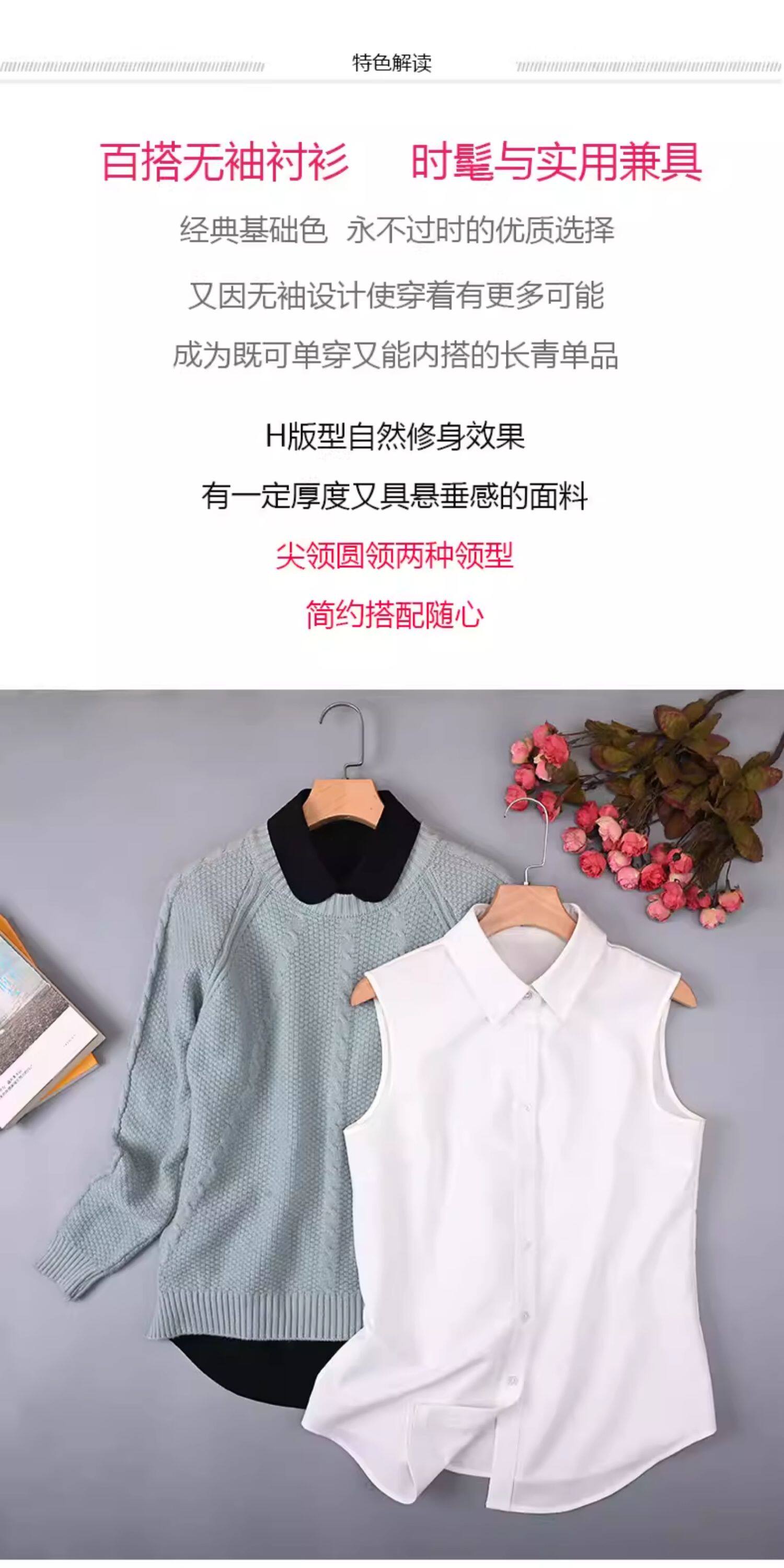 艾藤百搭無袖襯衣內搭打底衫曡穿職業通勤女背心白襯衫抗皺上衣
