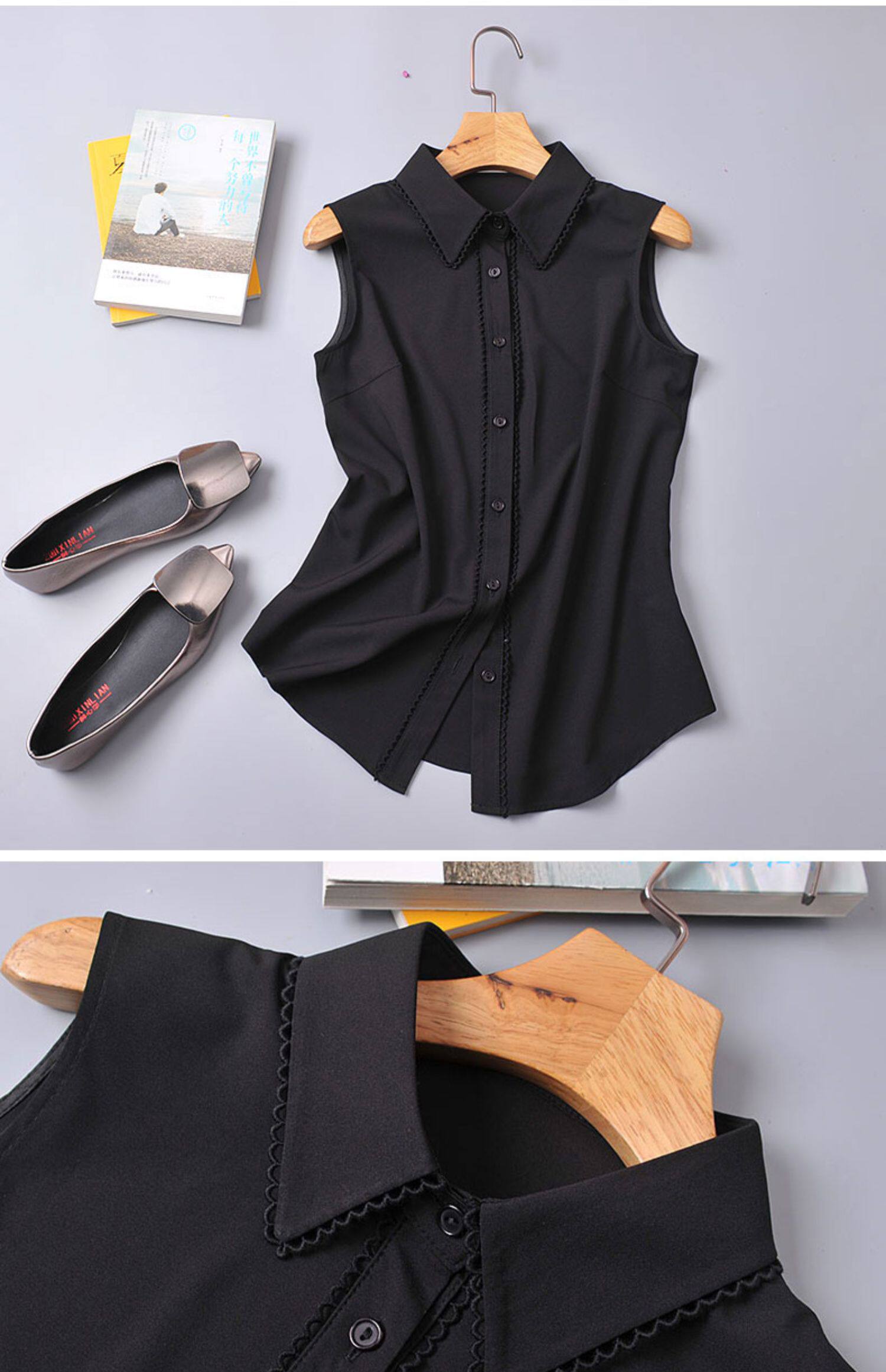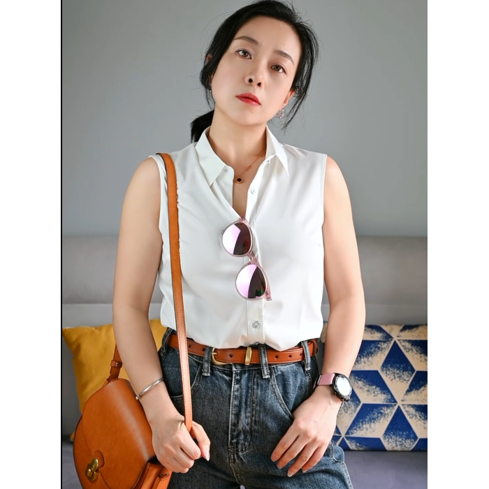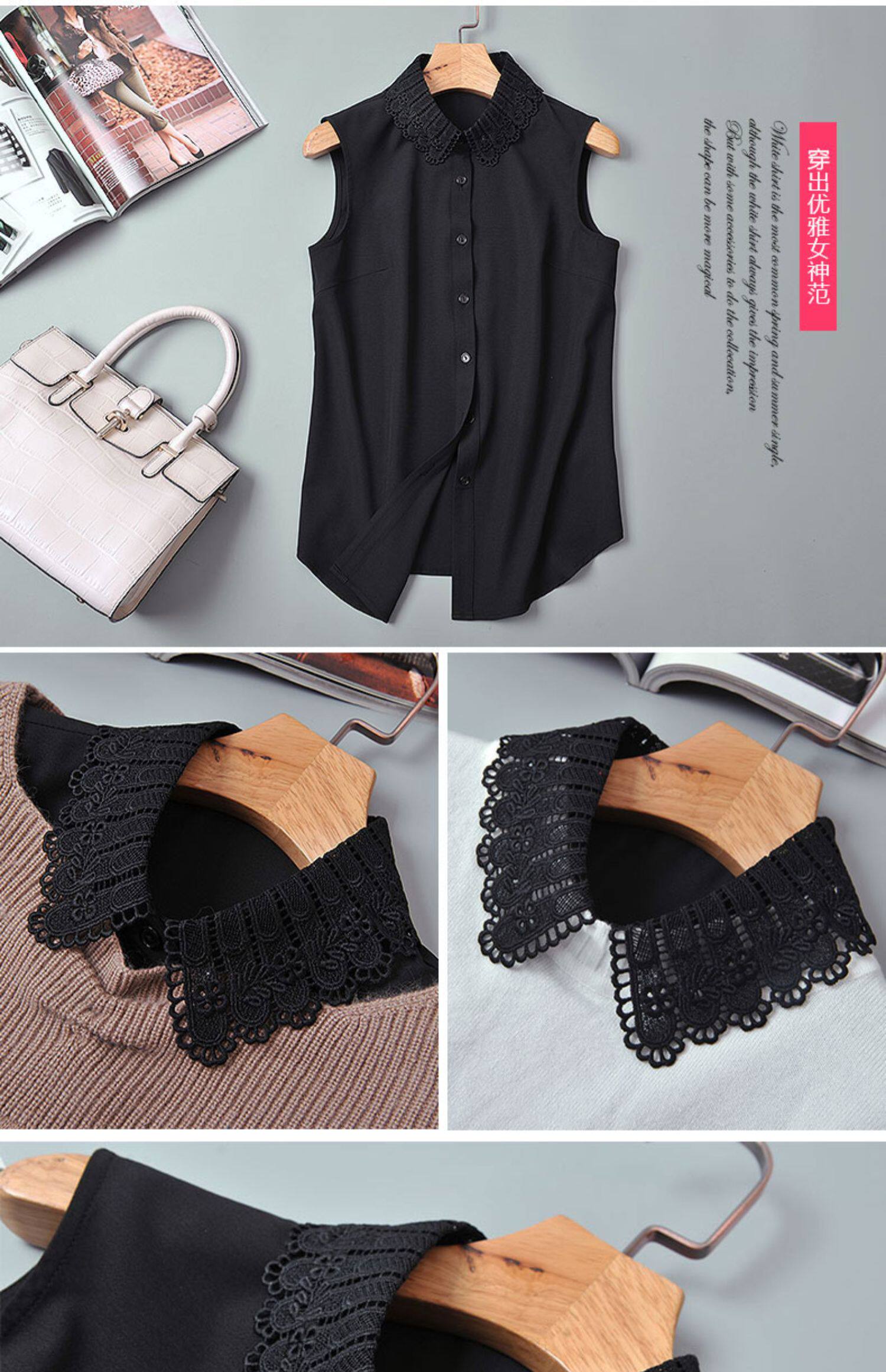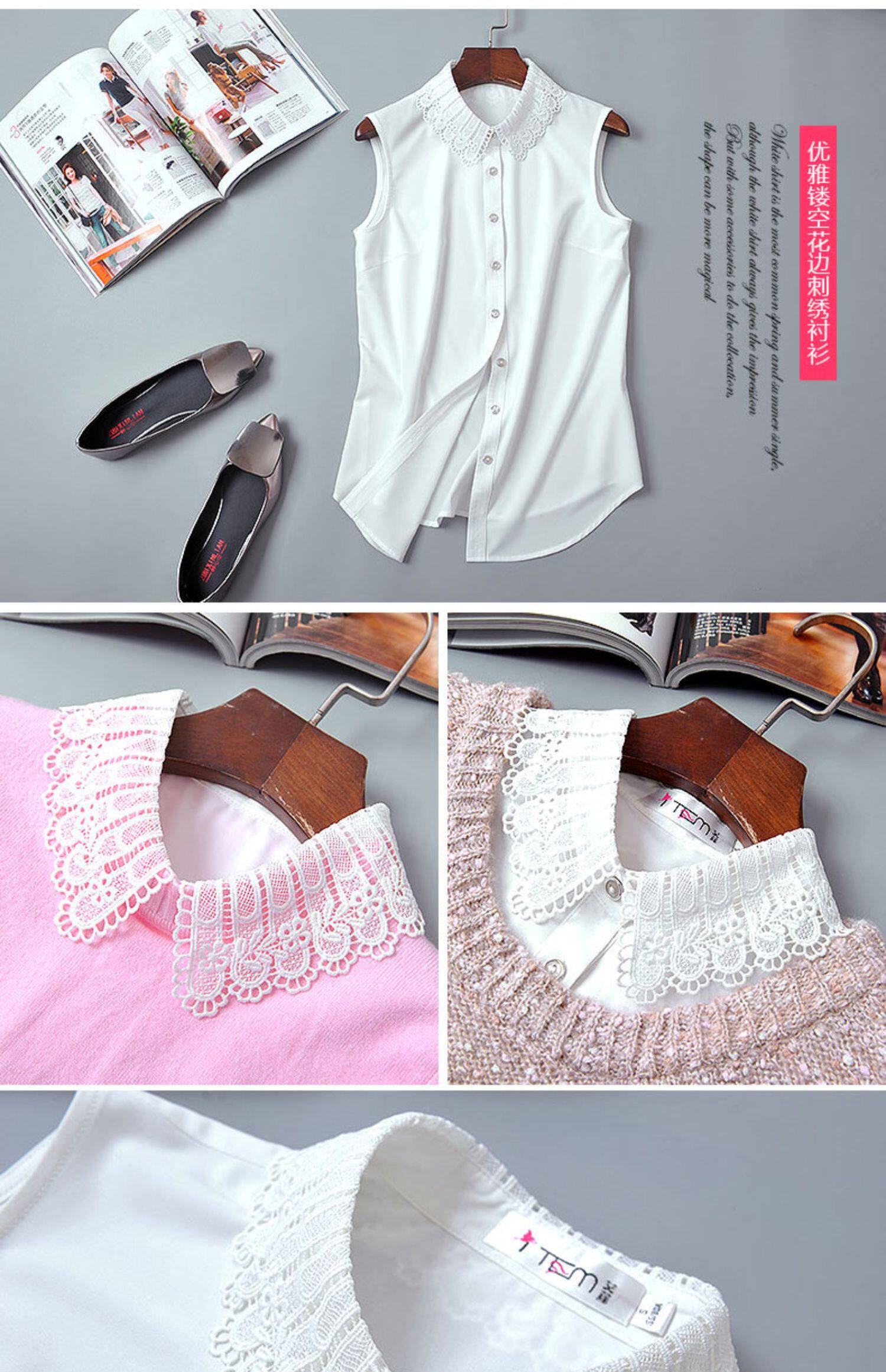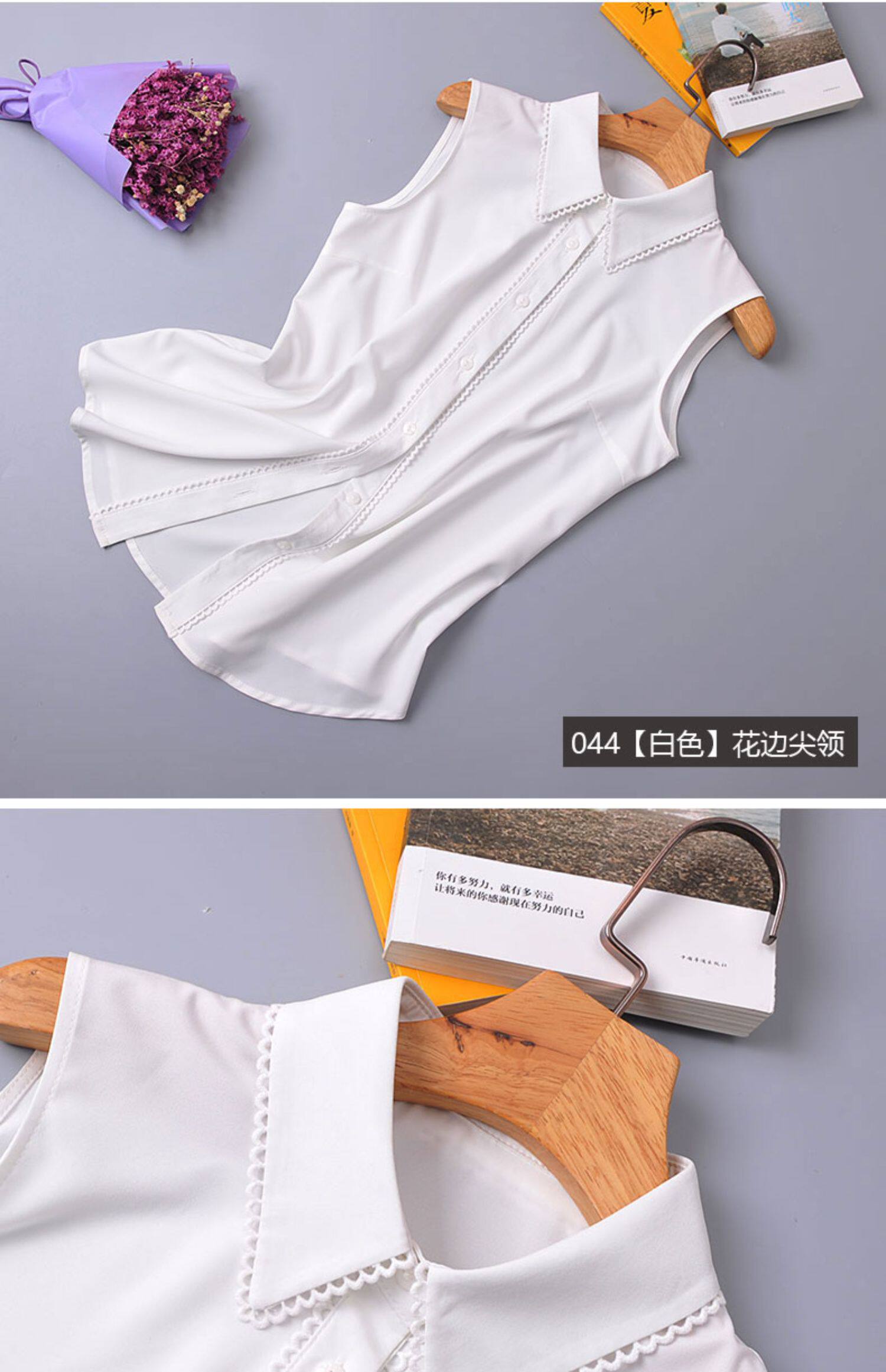 艾藤韓版雪紡上衣女款百搭職業白襯衣曡穿內搭打底衫背心無袖襯衫