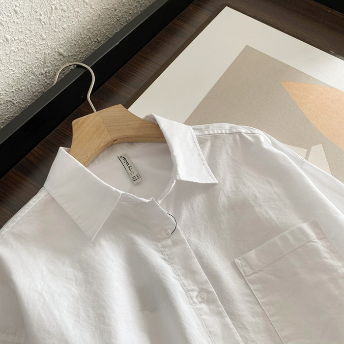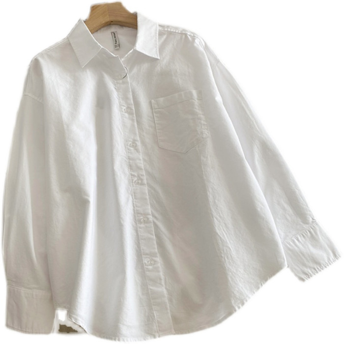 休閒純棉白襯衫女秋冬新款設計感小衆打底寬鬆慵懶長袖曡穿襯衣潮