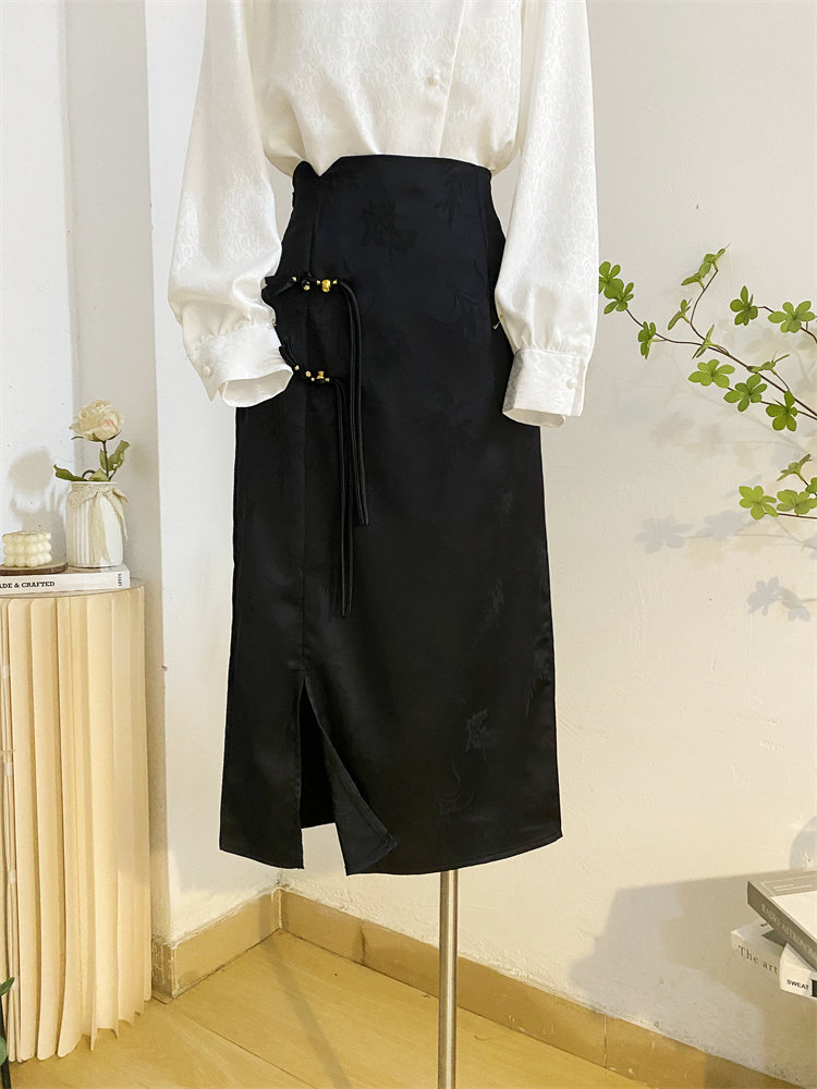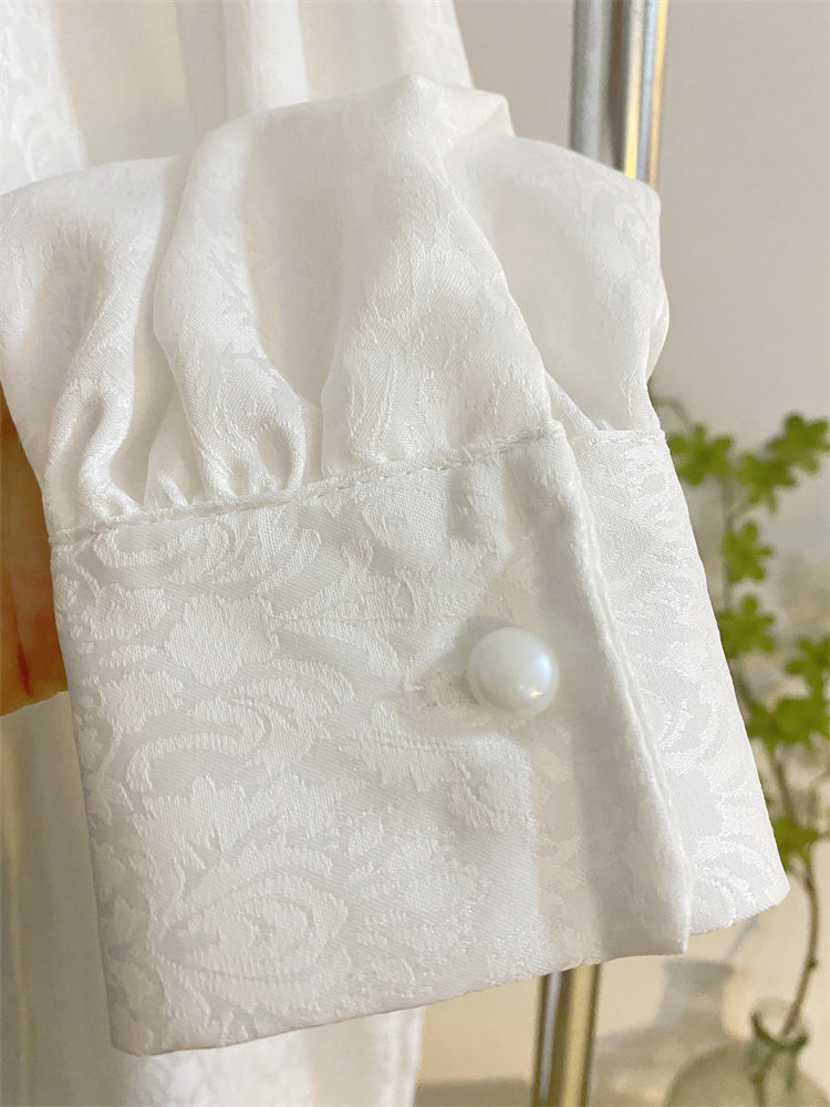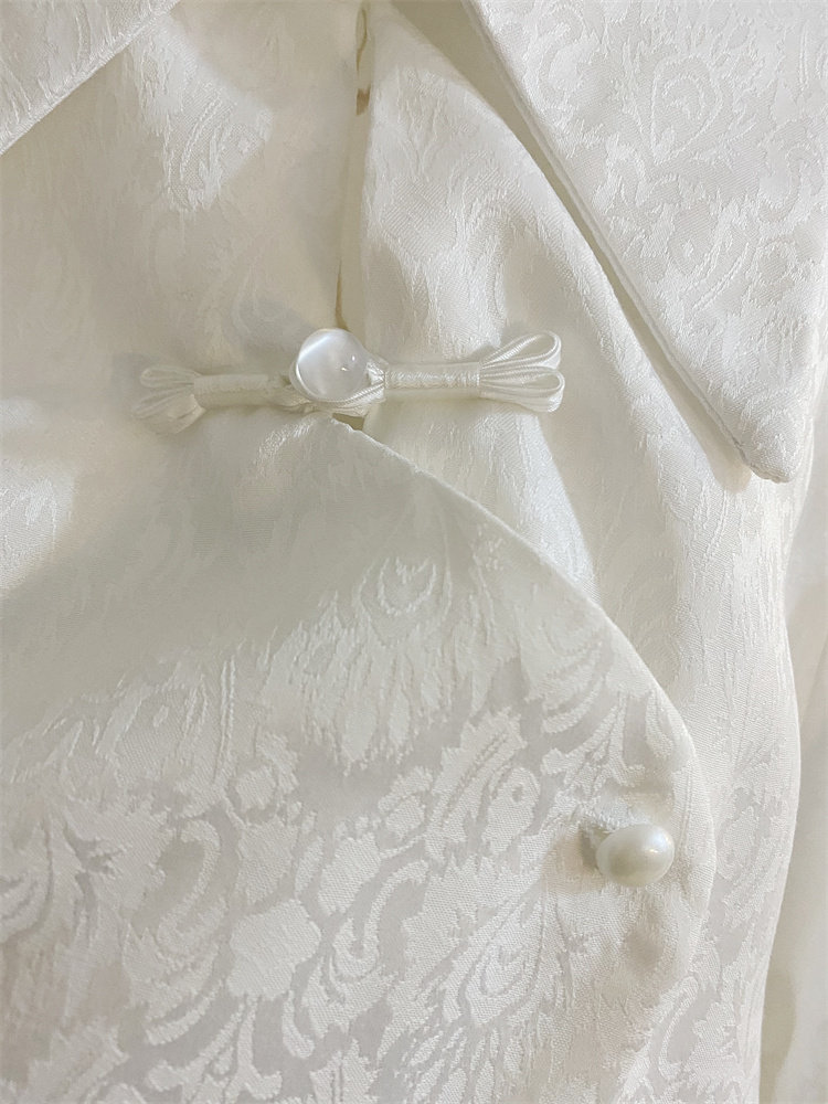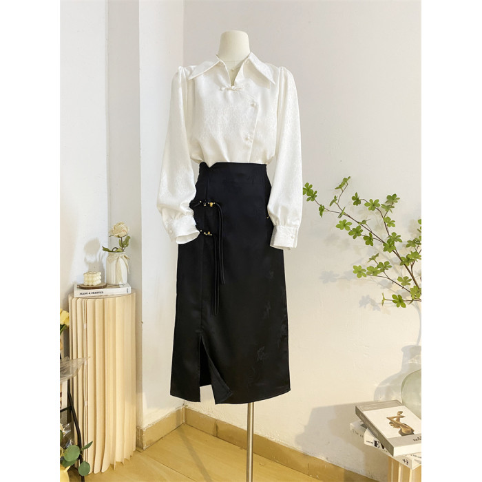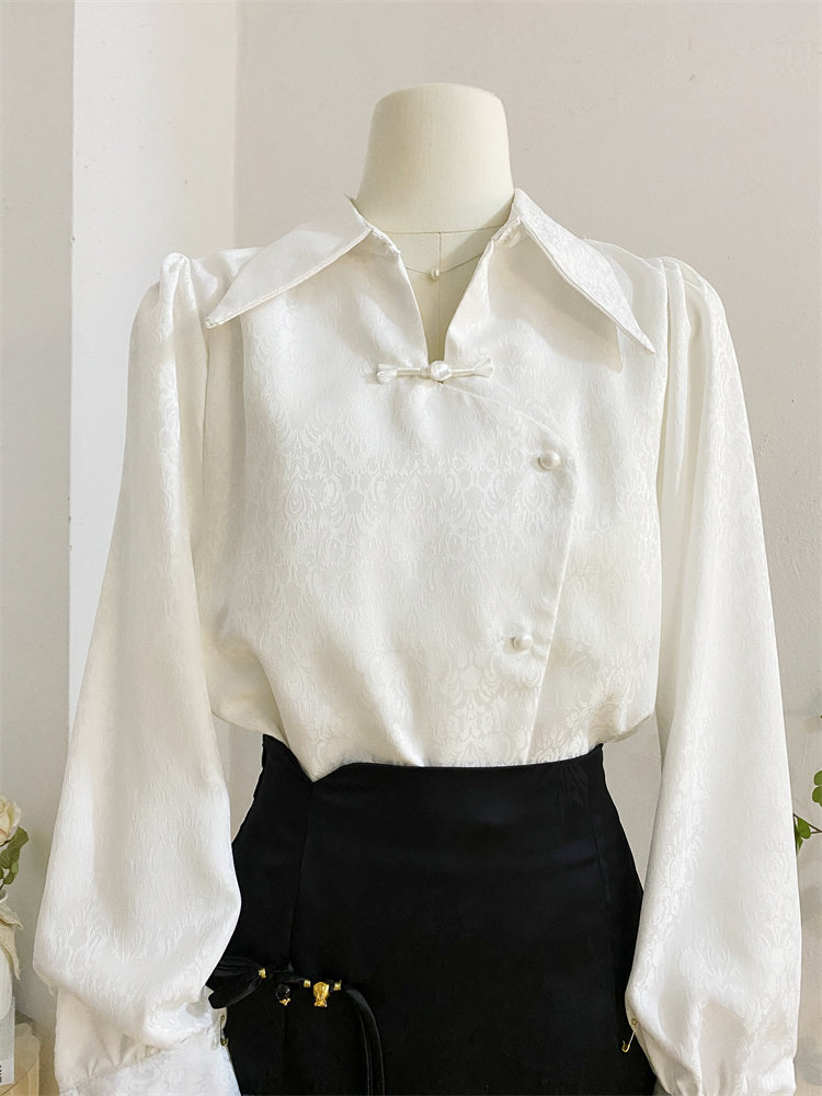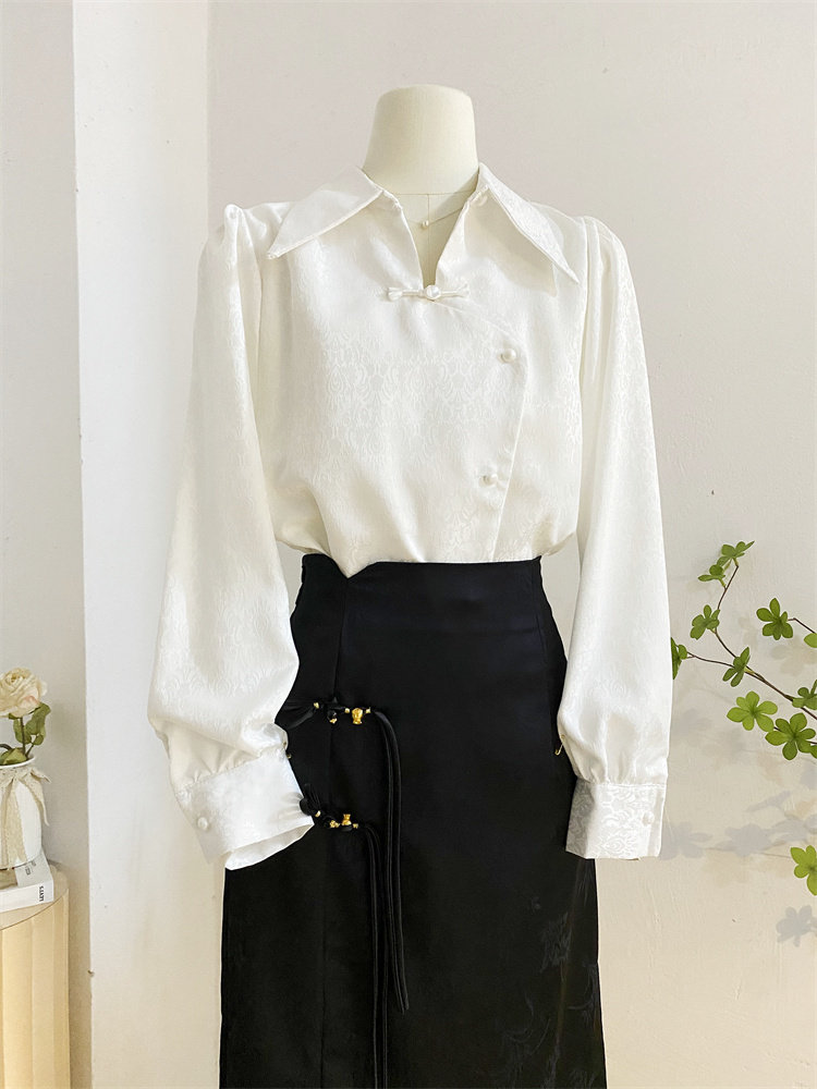 新中式繙領盤釦襯衫女長袖春季設計感風復古氣質提花小衫上衣