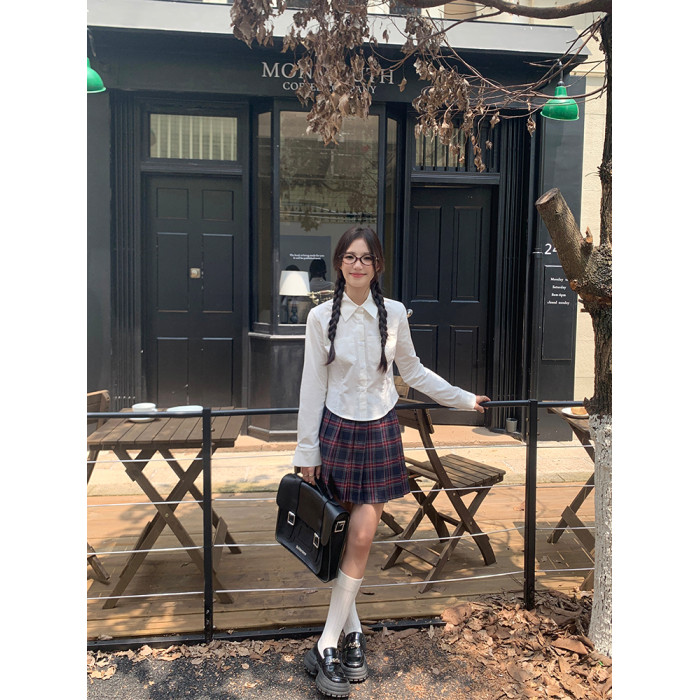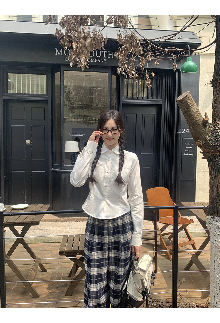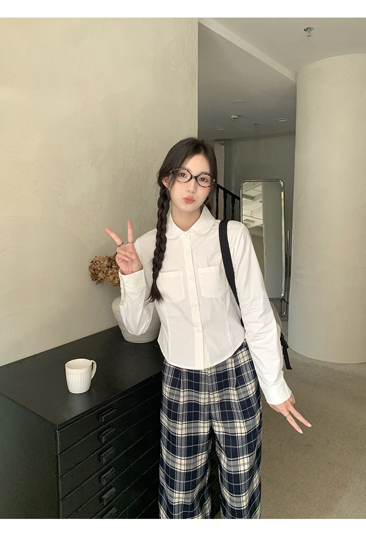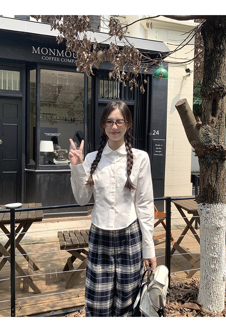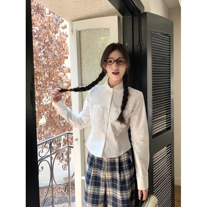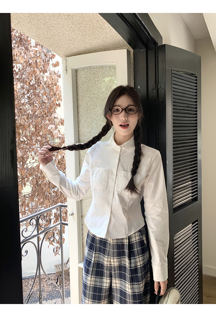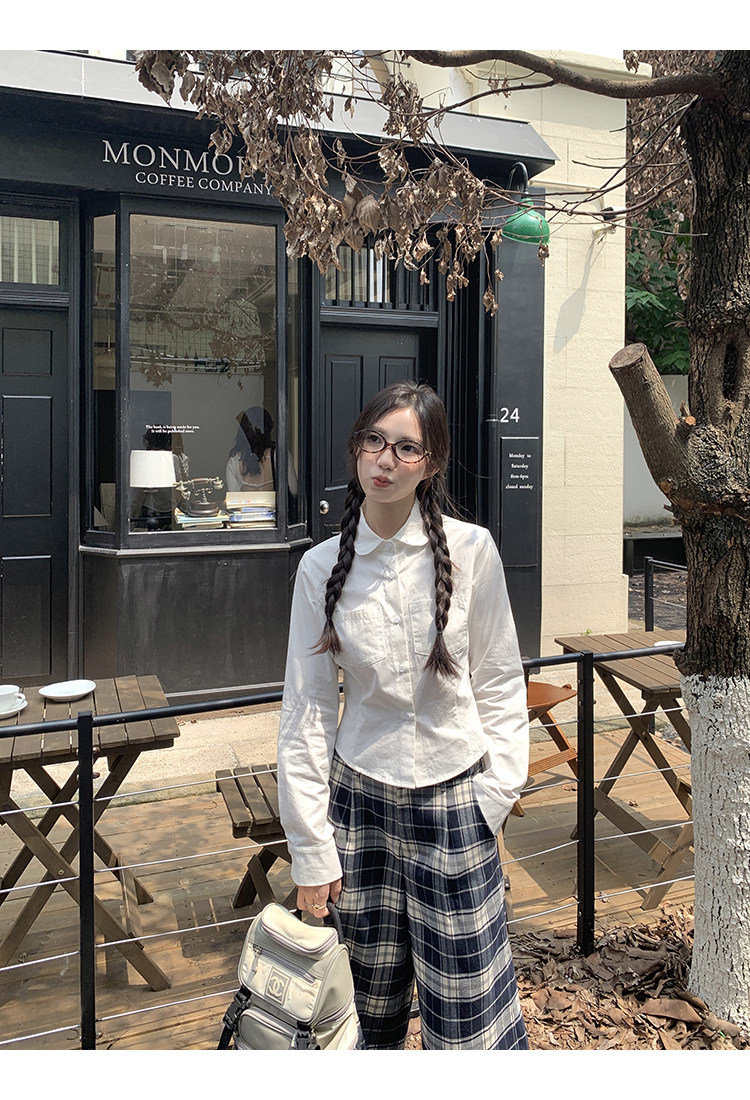 cozydays 娃娃領白色長袖襯衫女秋2025新款收腰內搭上衣小衆襯衣