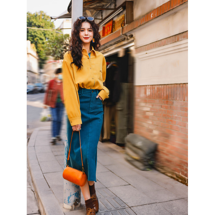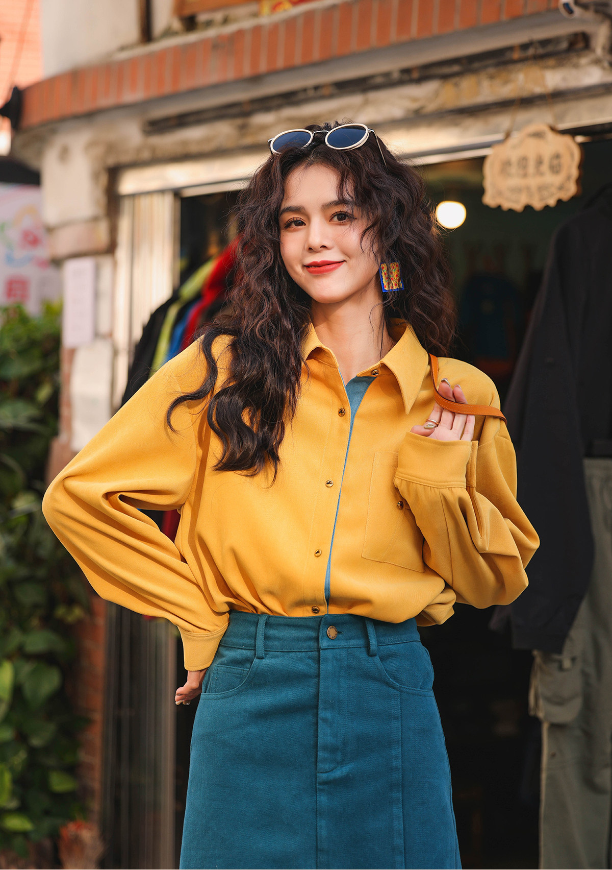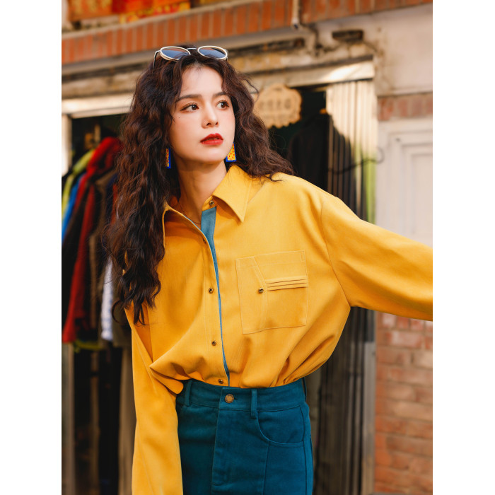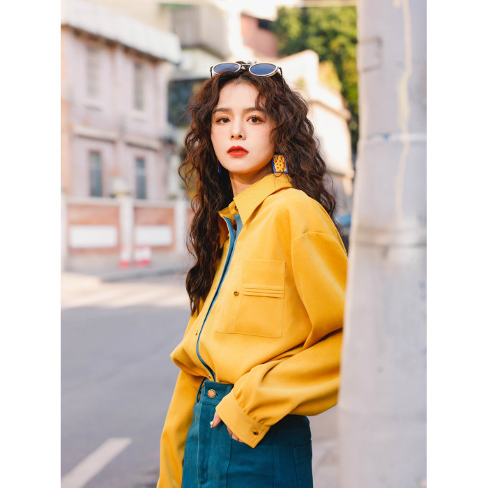 陳佳潔的店2026春秋新款黃色襯衣港風長袖寬鬆襯衫女外套女裝上衣