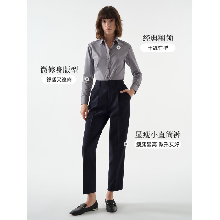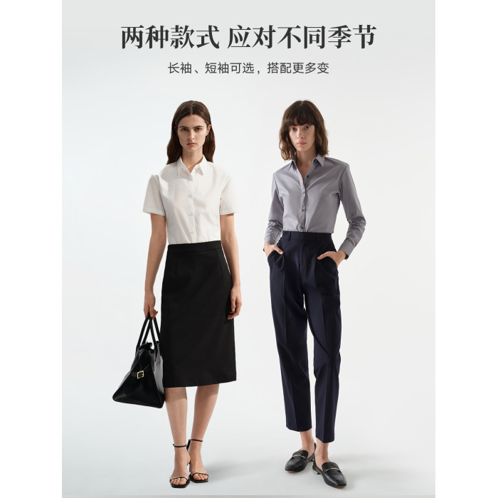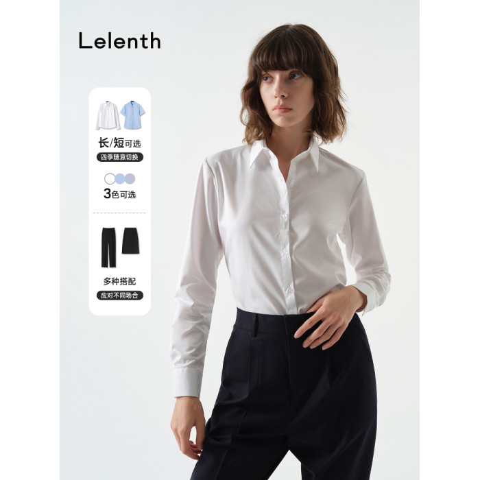 萊倫通勤白色襯衫女秋季修身商務正裝工作服長袖氣質職業打底襯衣