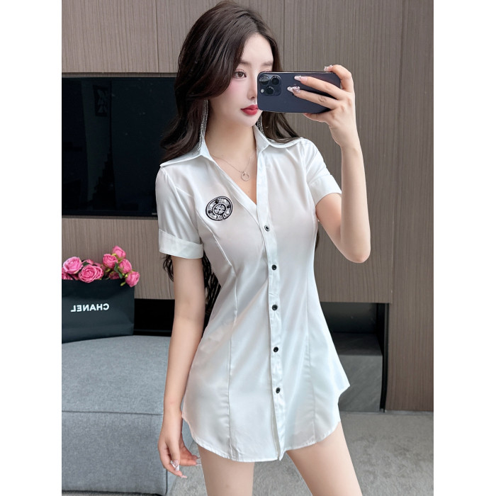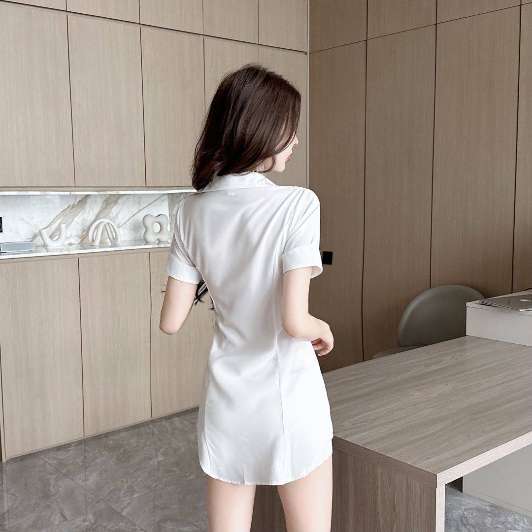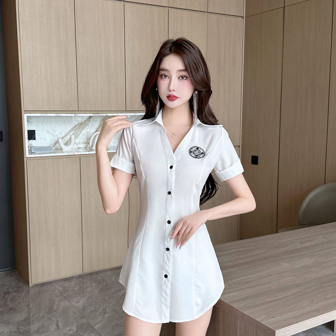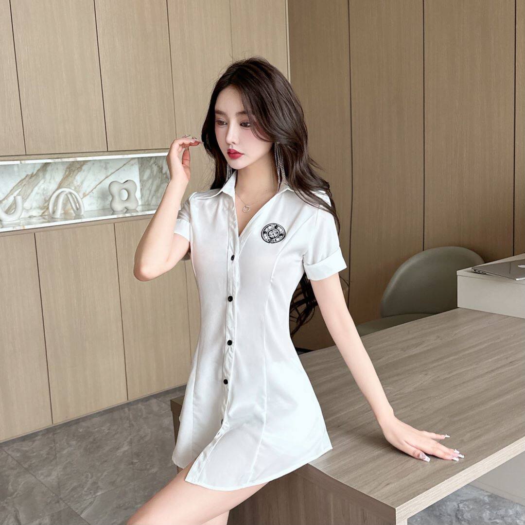 新款足浴店工作服柔式按摩spa養生沐足桑拿連衣裙夜場性感白襯衫