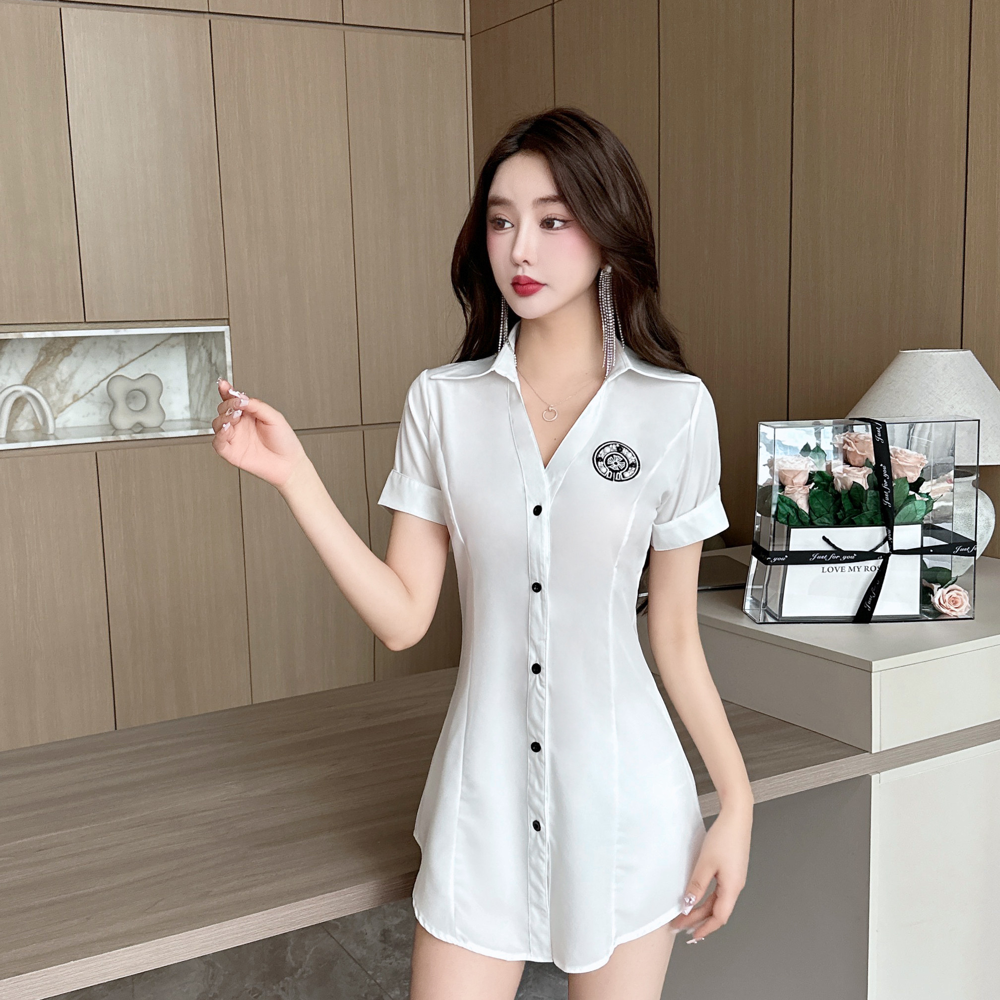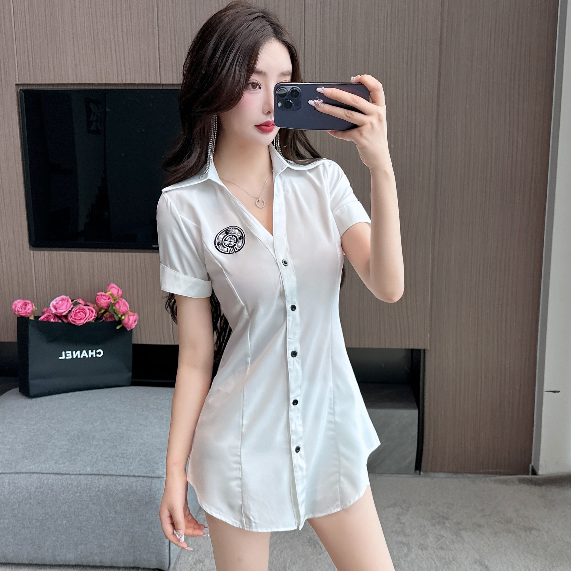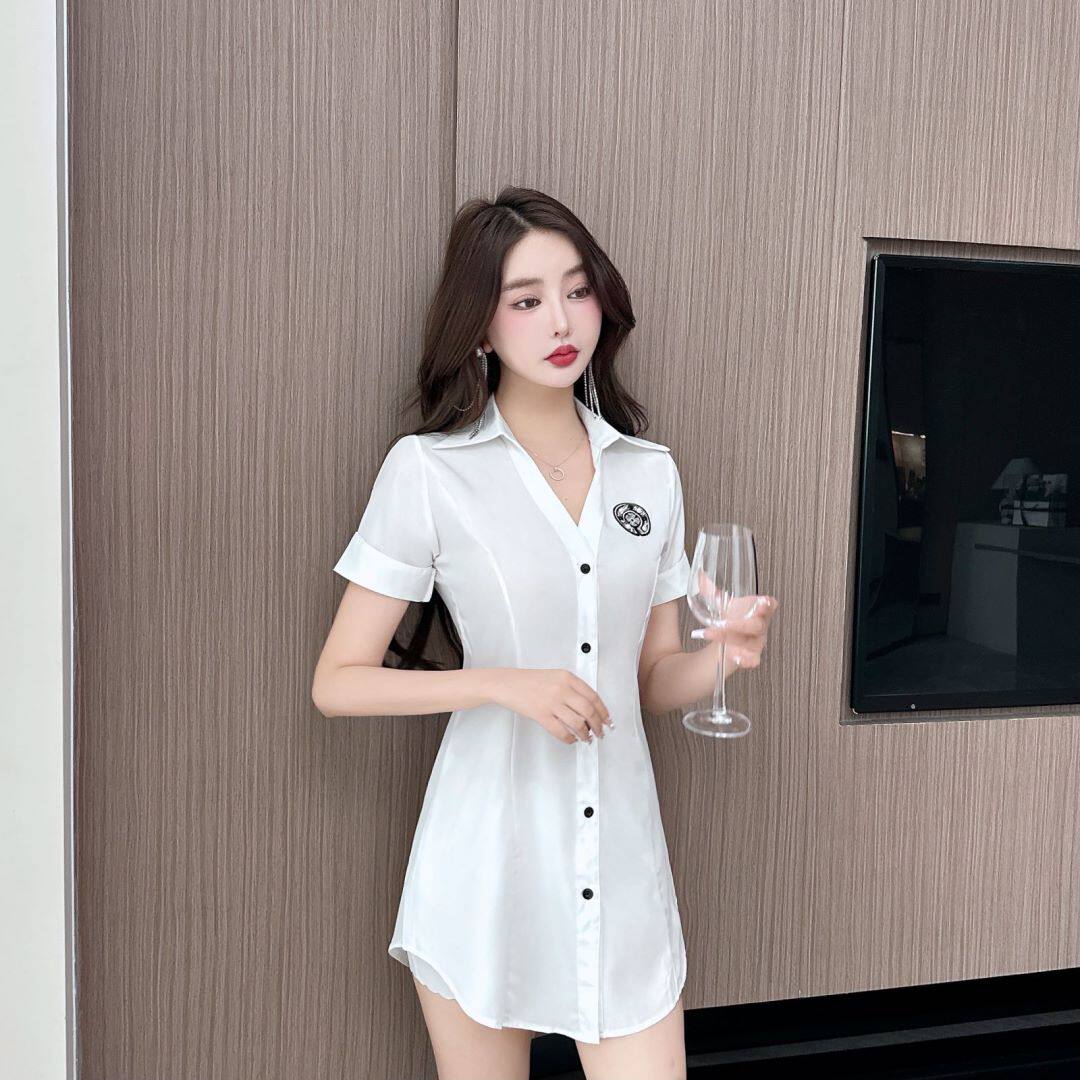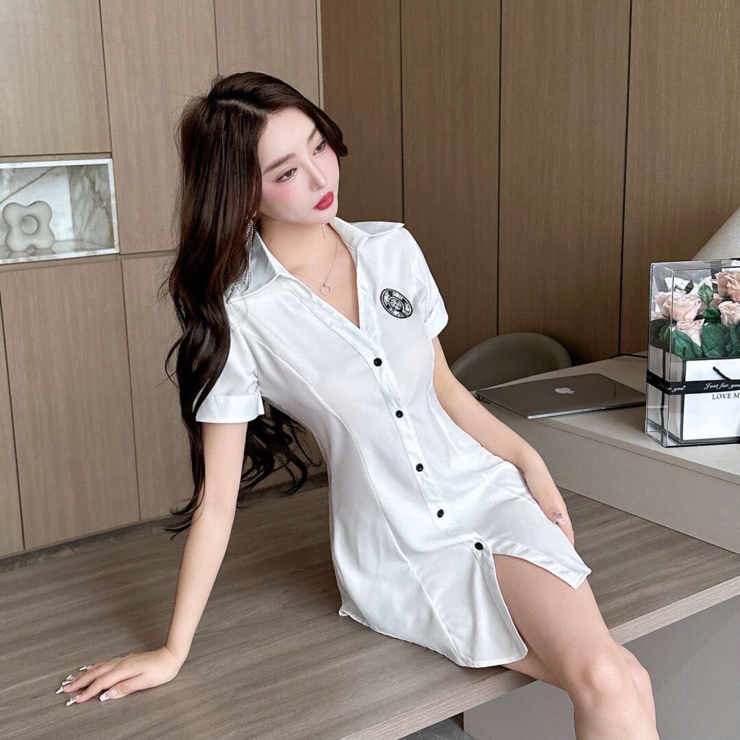 新款足浴店工作服柔式按摩spa養生沐足桑拿連衣裙夜場性感白襯衫