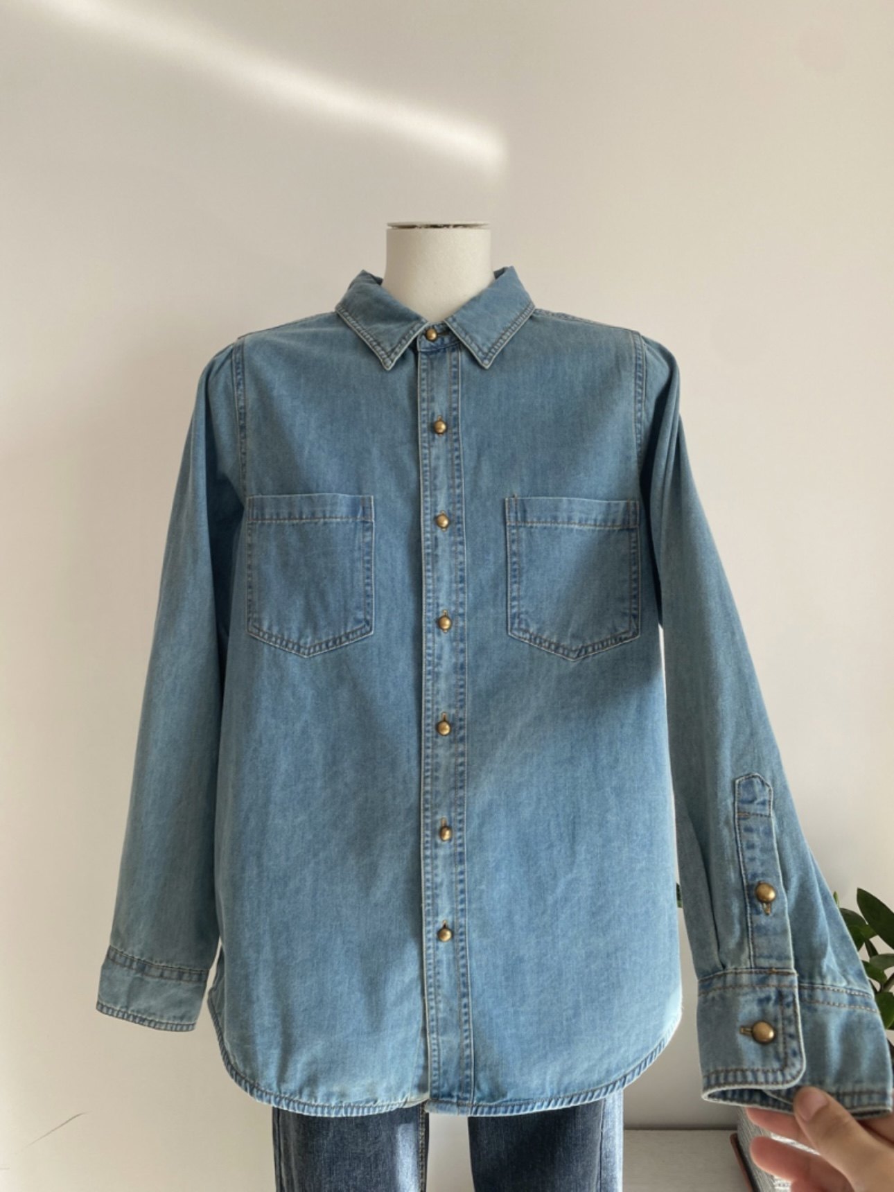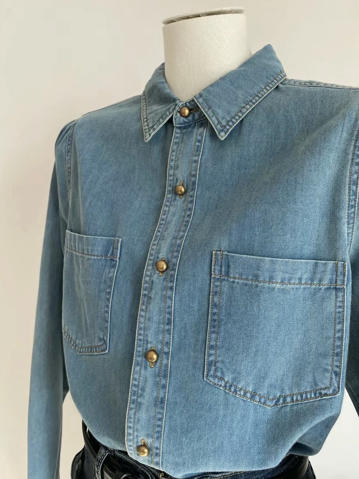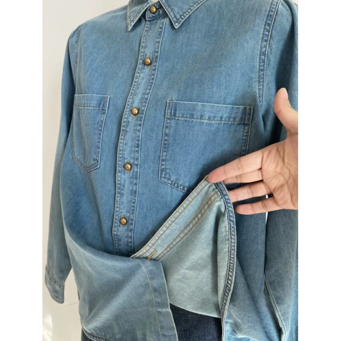 淺藍色復古軟牛仔襯衫女內搭曡穿春裝2025春秋新款小個子正肩上衣