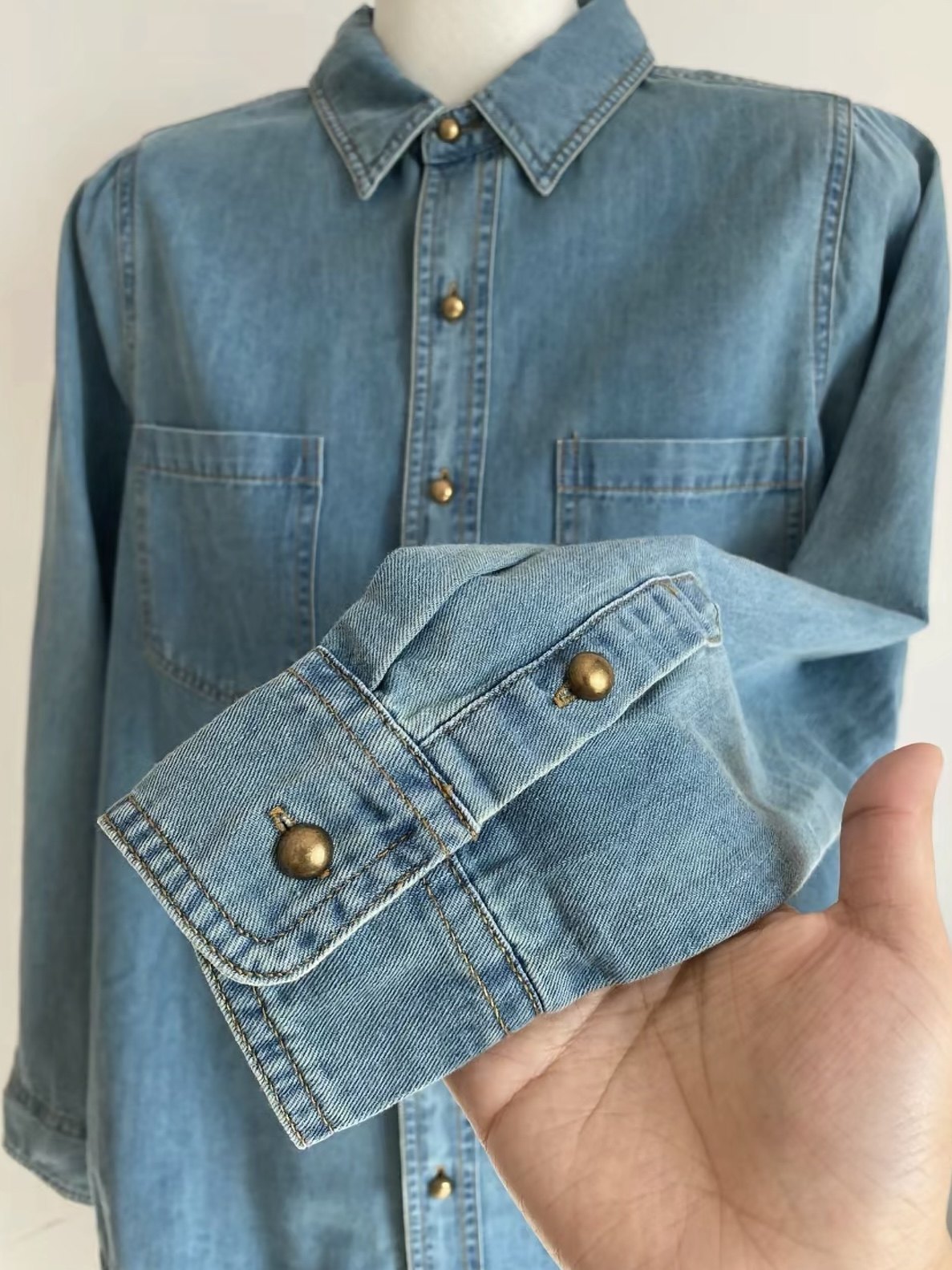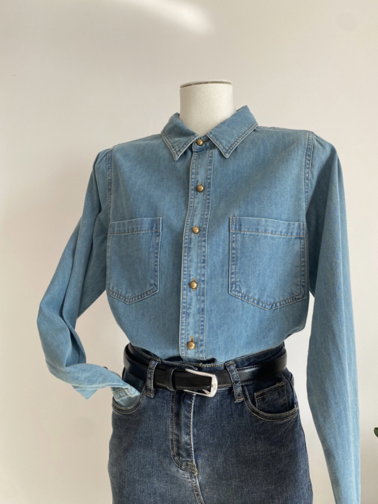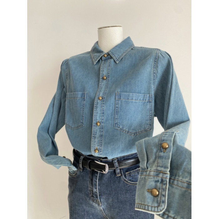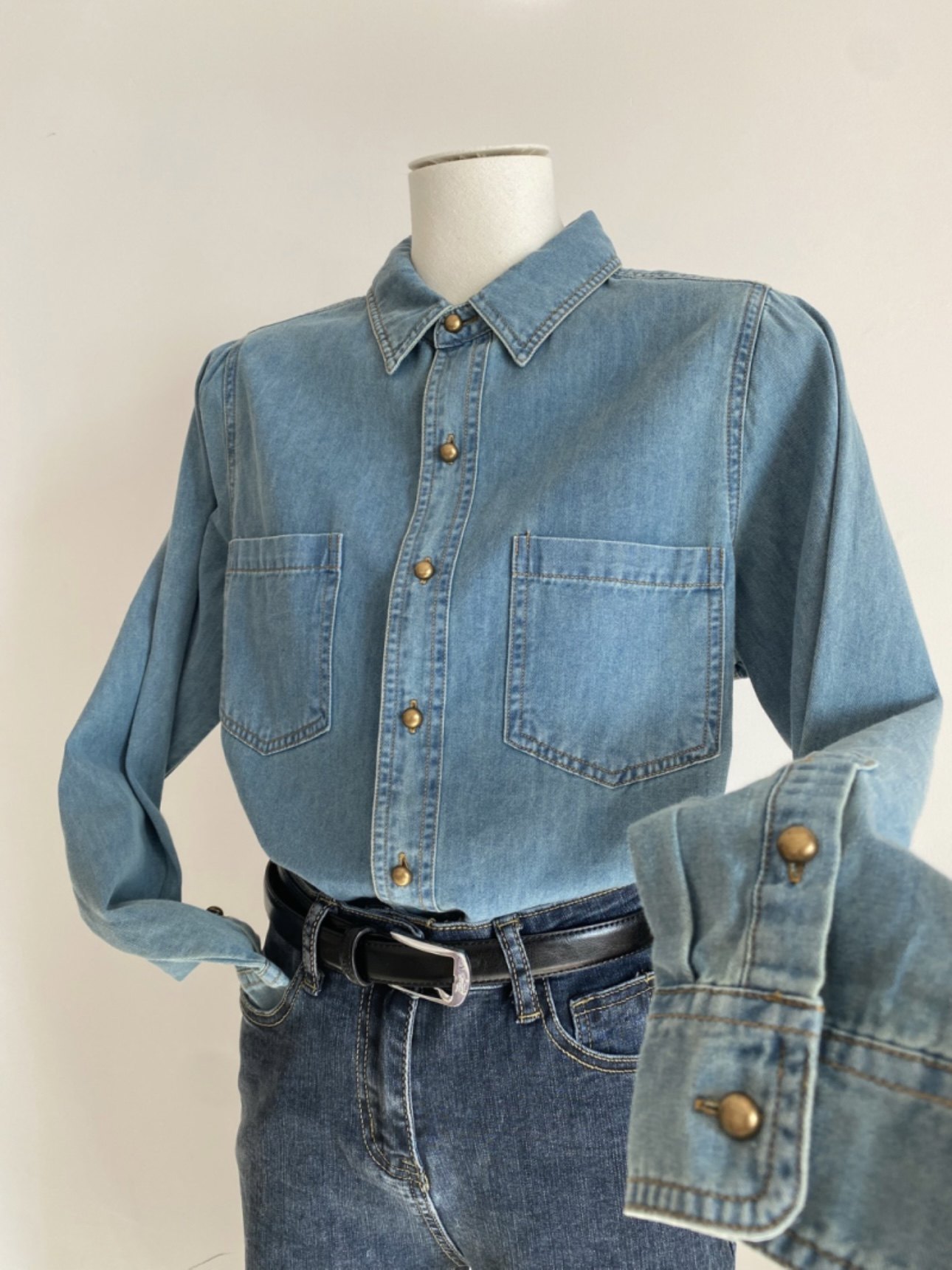 淺藍色復古軟牛仔襯衫女內搭曡穿春裝2025春秋新款小個子正肩上衣