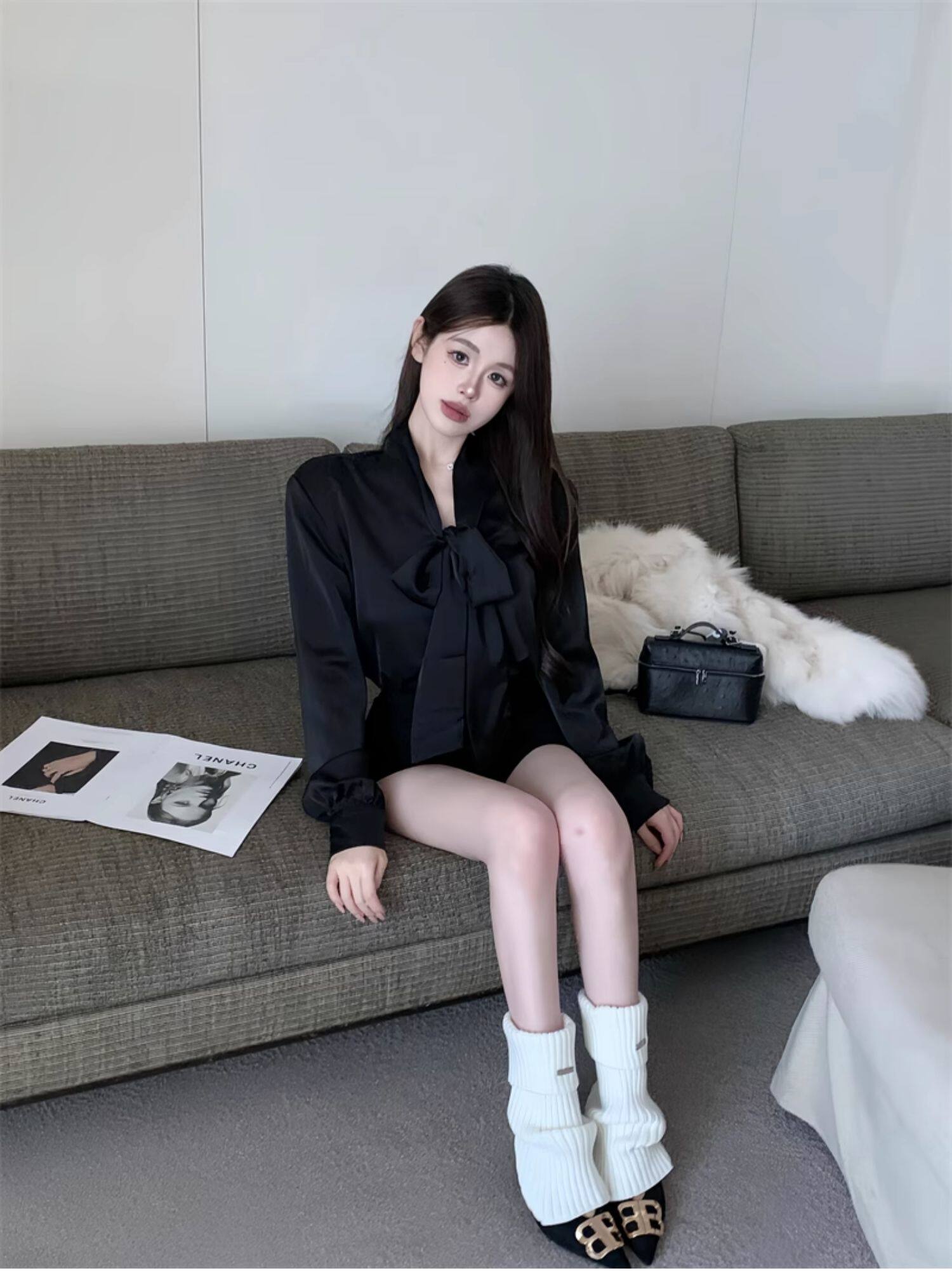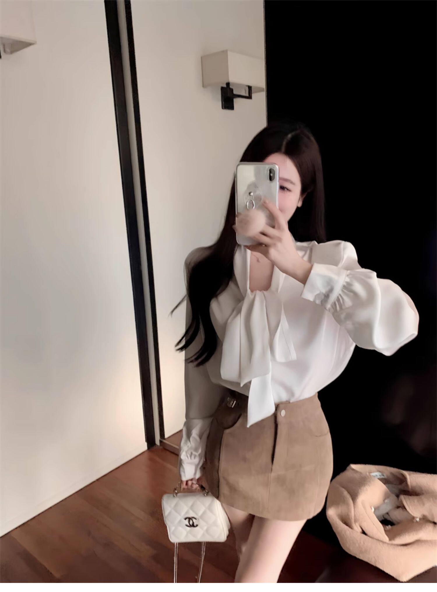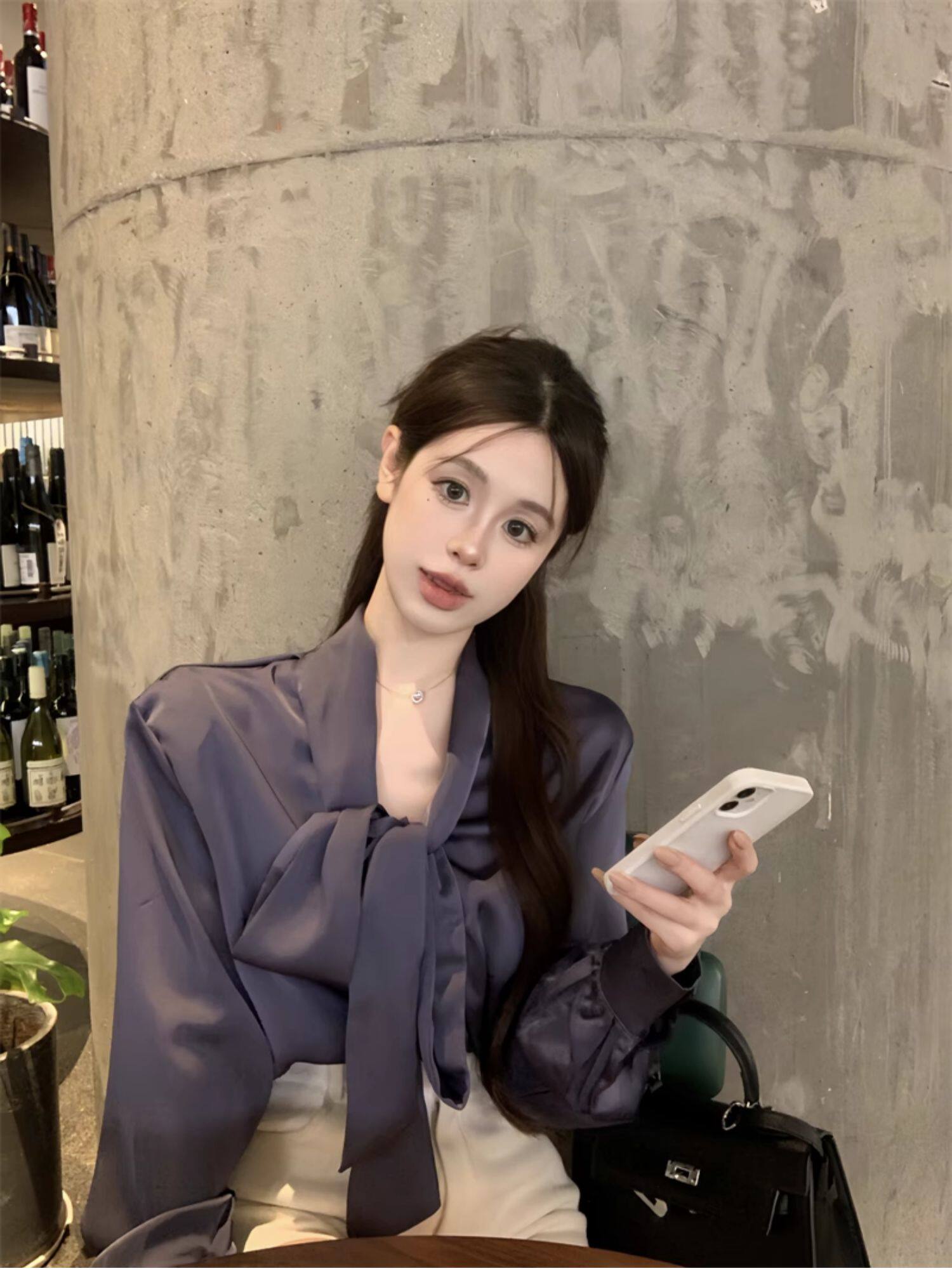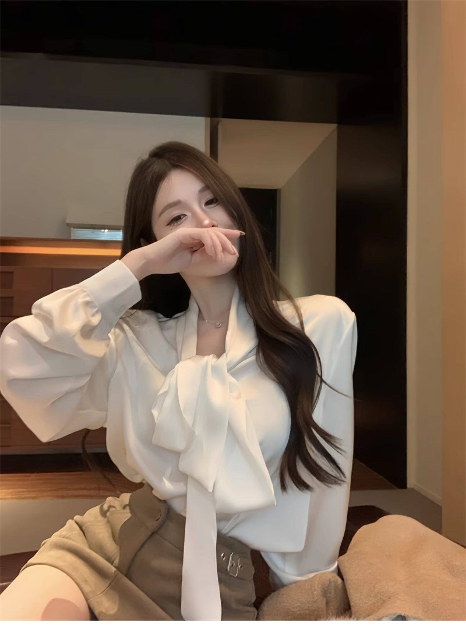 黑色緞面襯衫女2025秋季法式高級感穿搭襯衣職場通勤蝴蝶結上衣