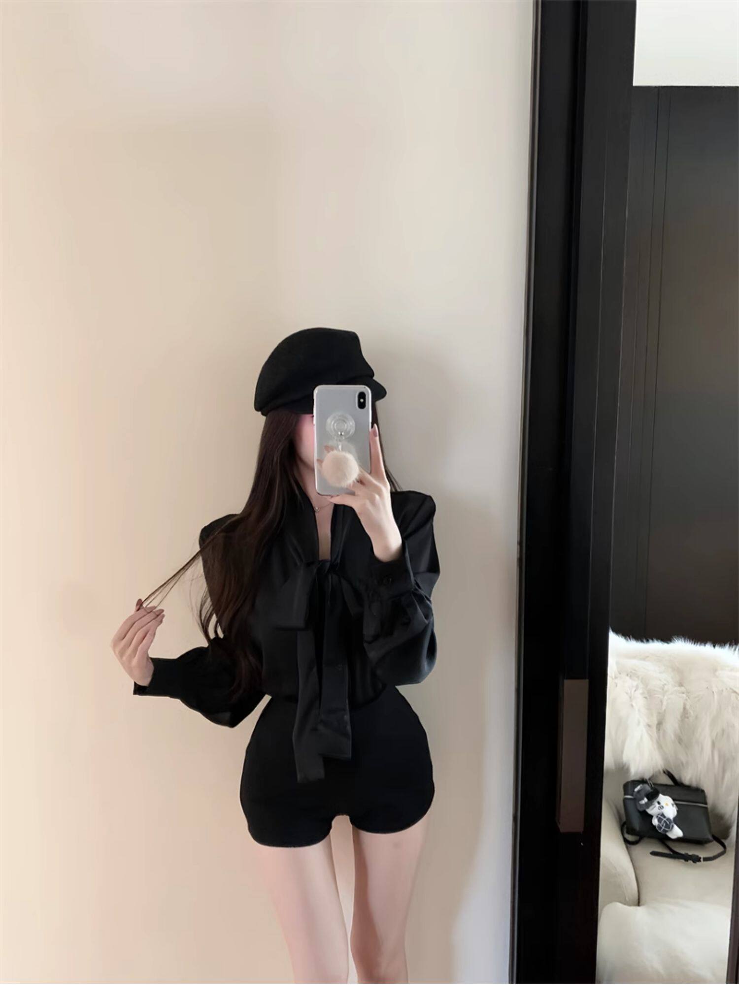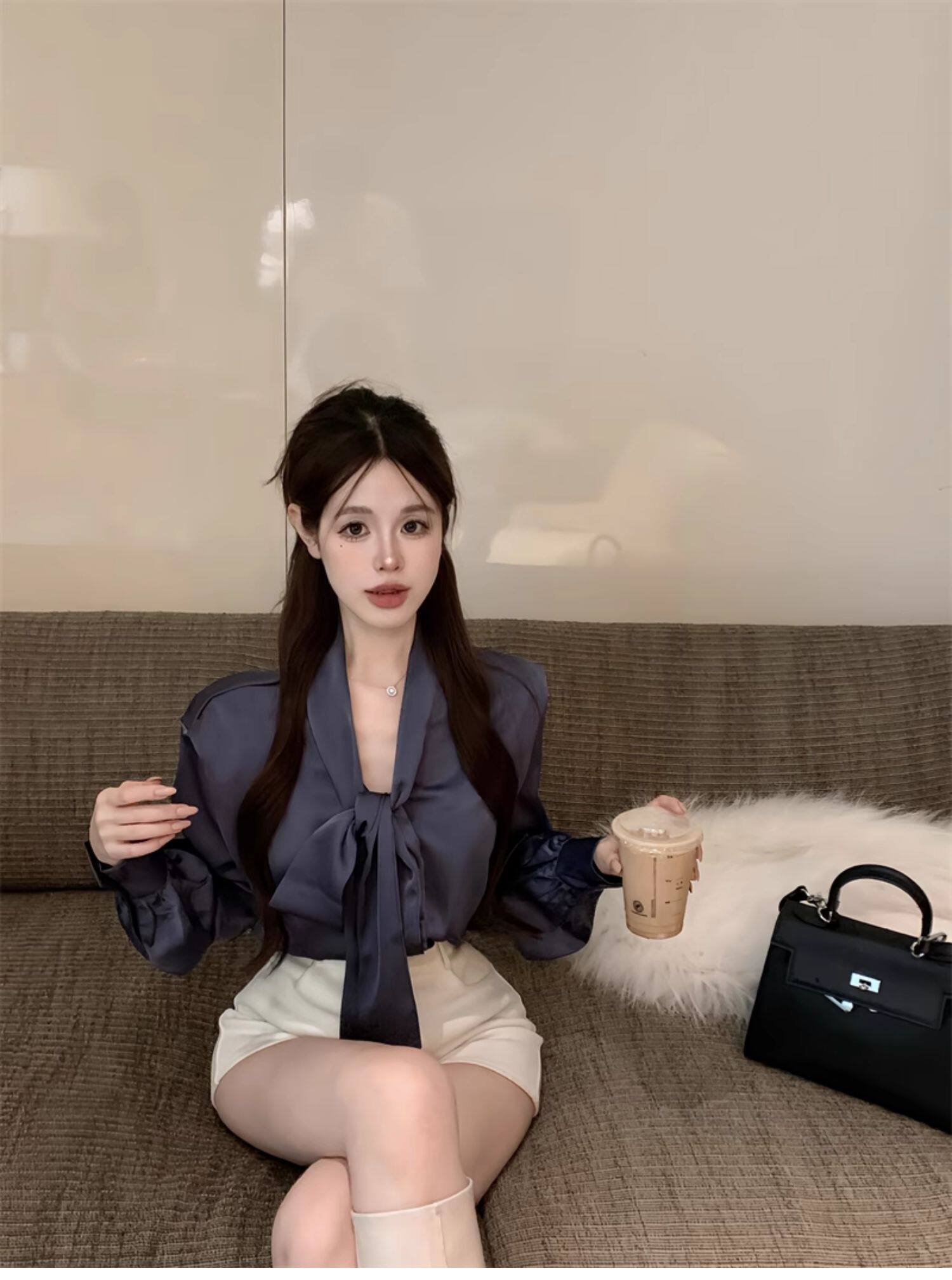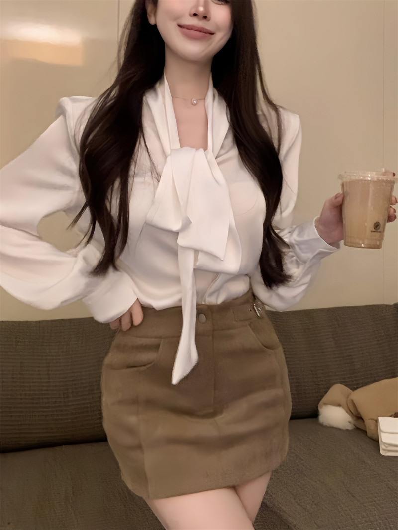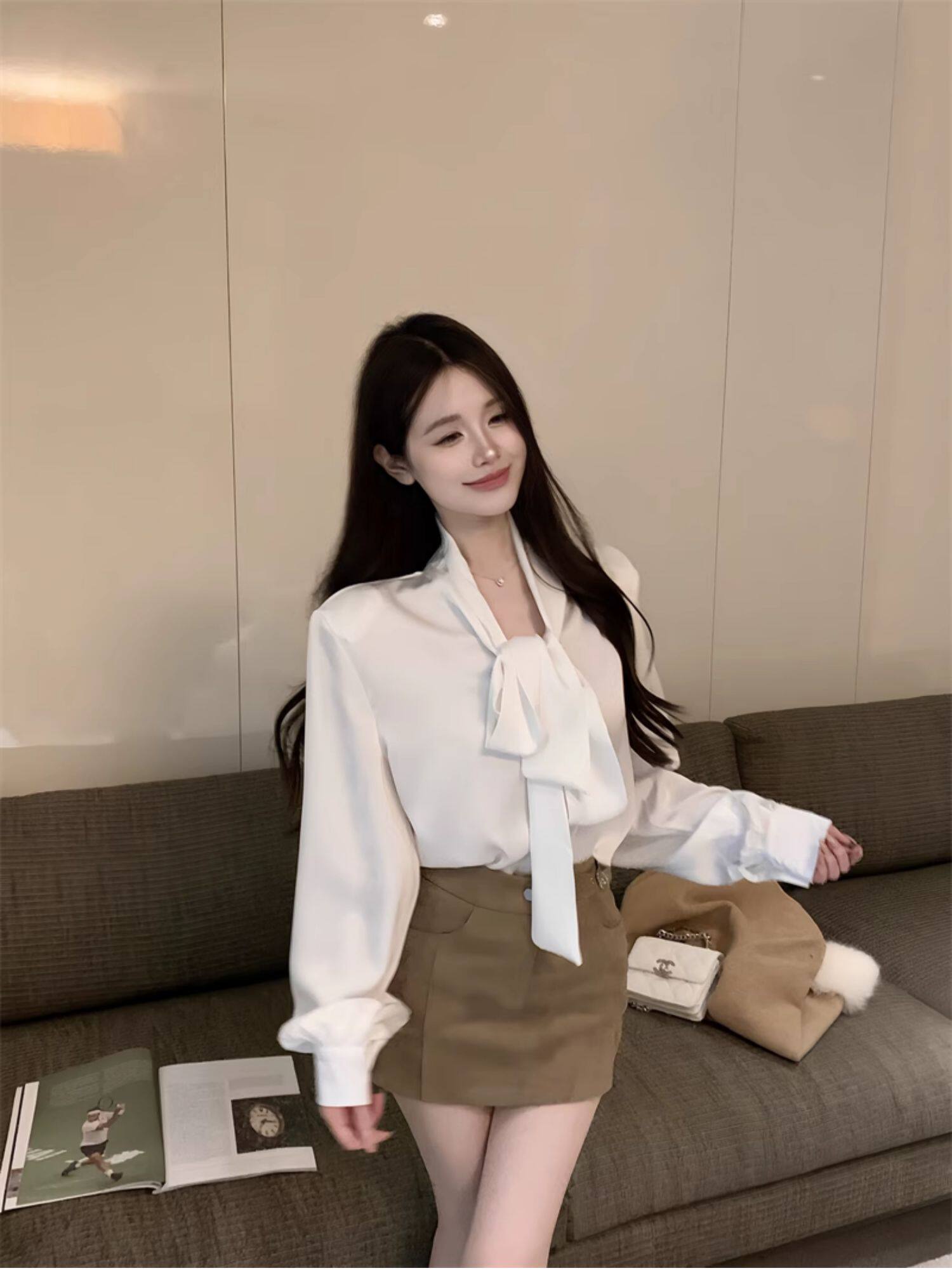 黑色緞面襯衫女2025秋季法式高級感穿搭襯衣職場通勤蝴蝶結上衣