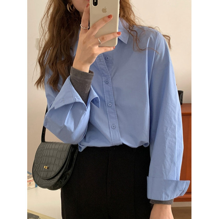 藍色襯衫女2026新款爆款法式氣質襯衣外套獨特漂亮長袖上衣設計感