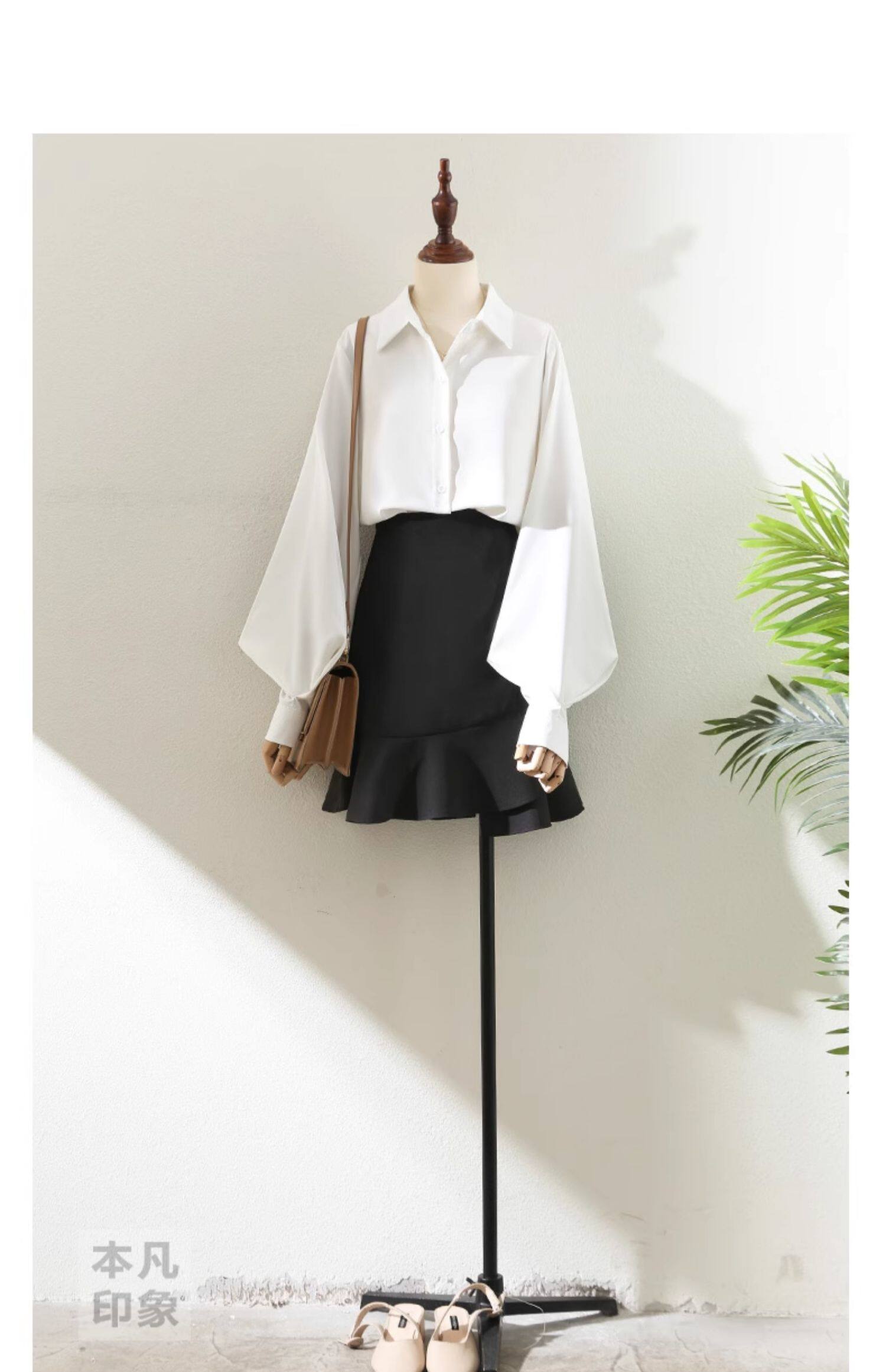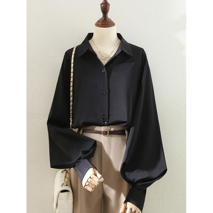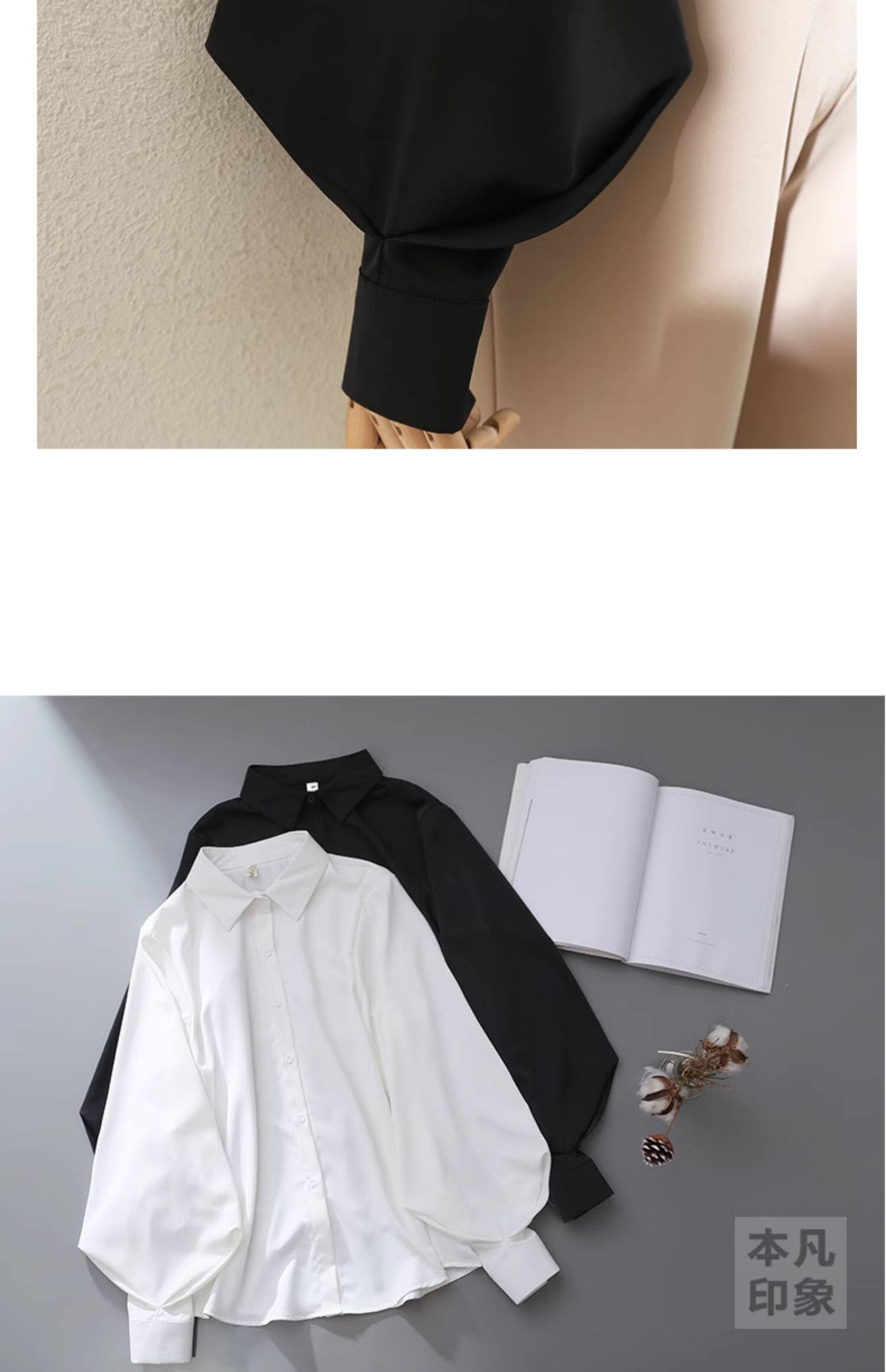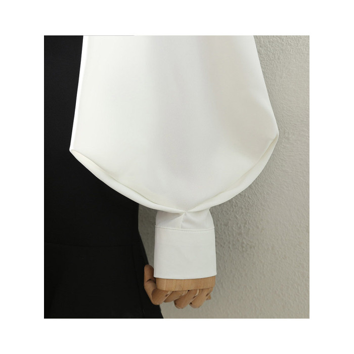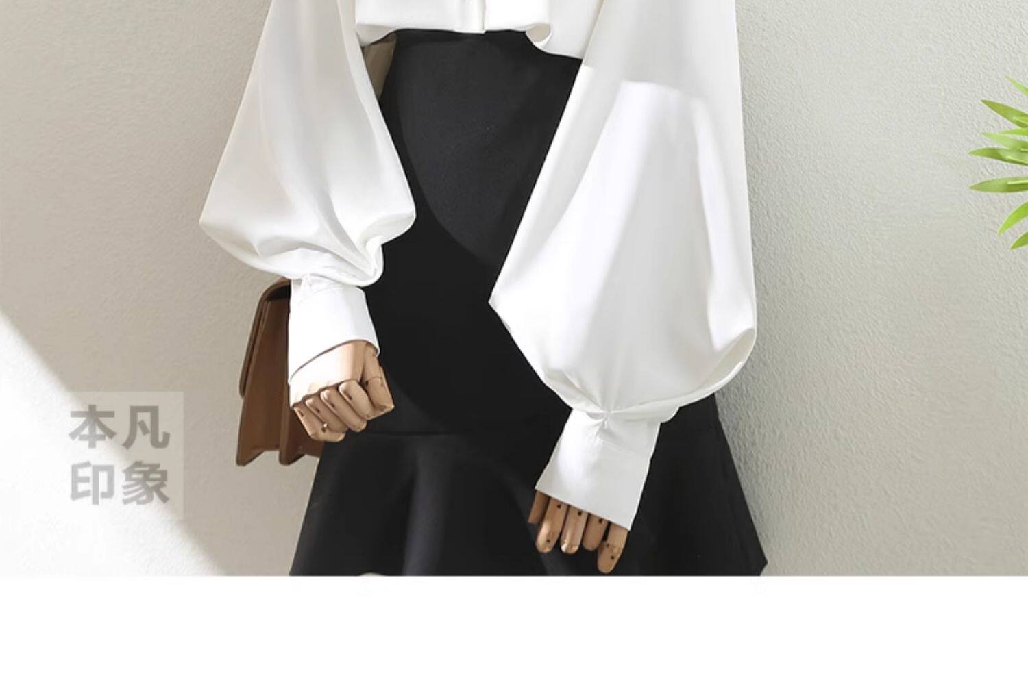 氣質職業白色繙領襯衫女2025春秋燈籠袖百搭通勤OL設計感洋氣襯衣