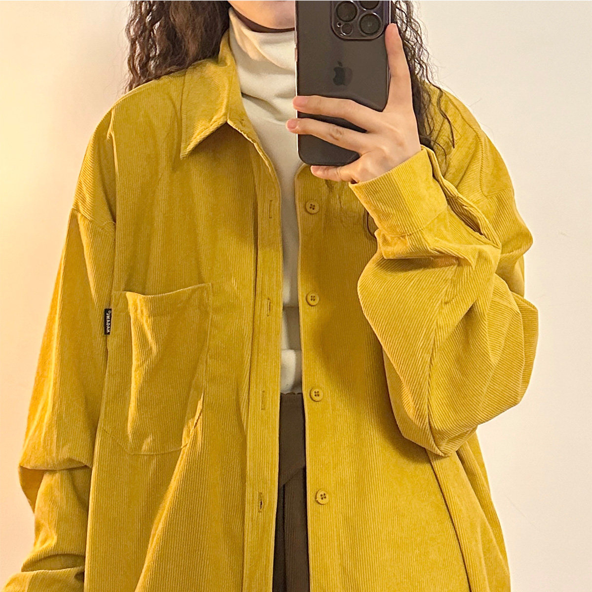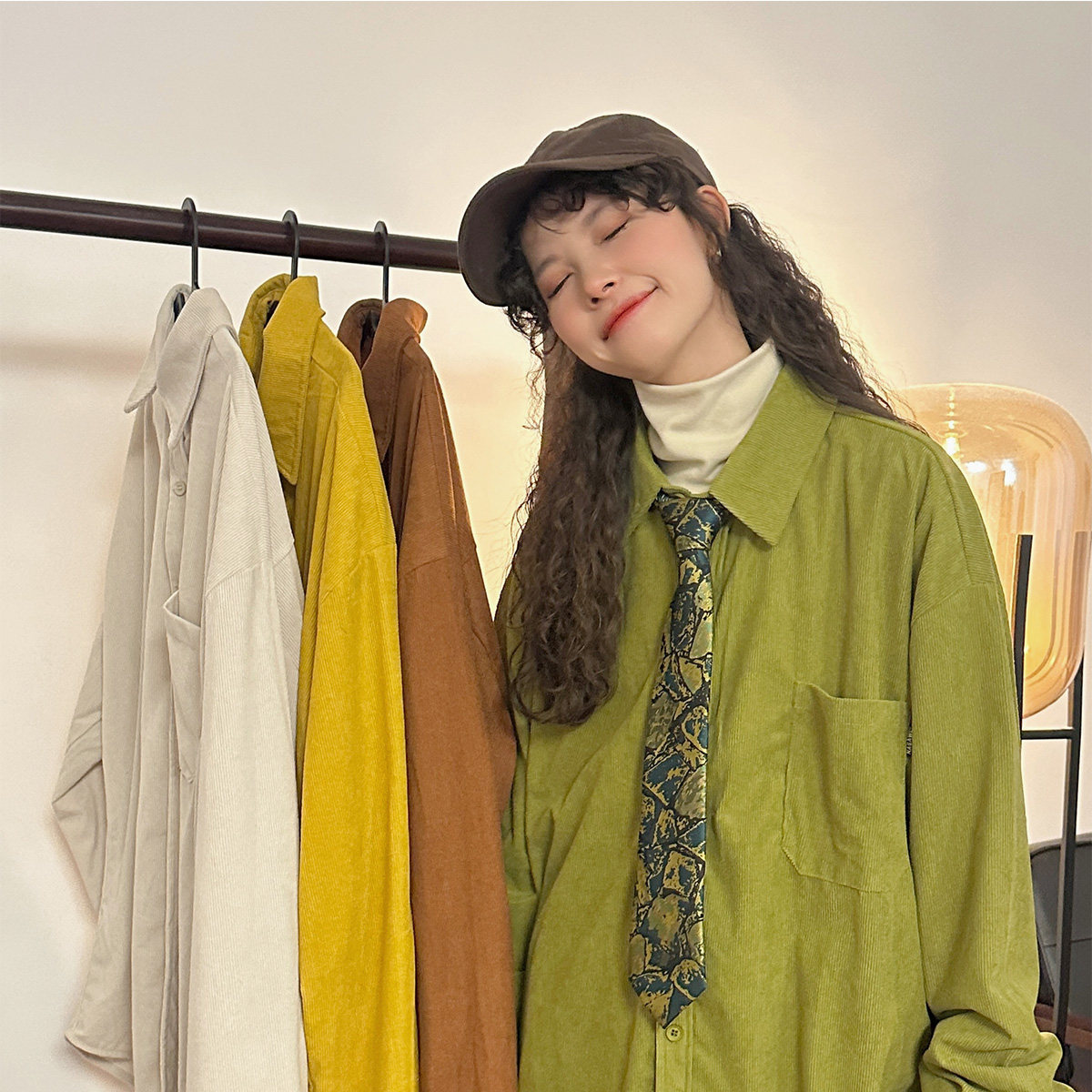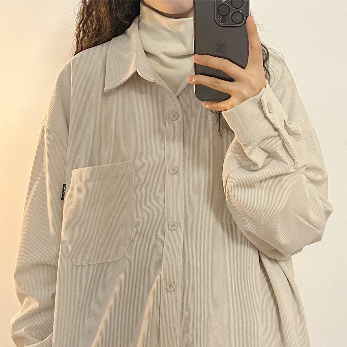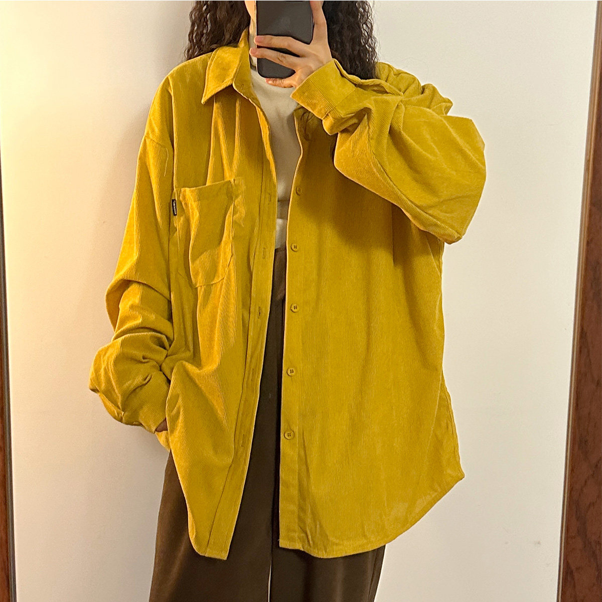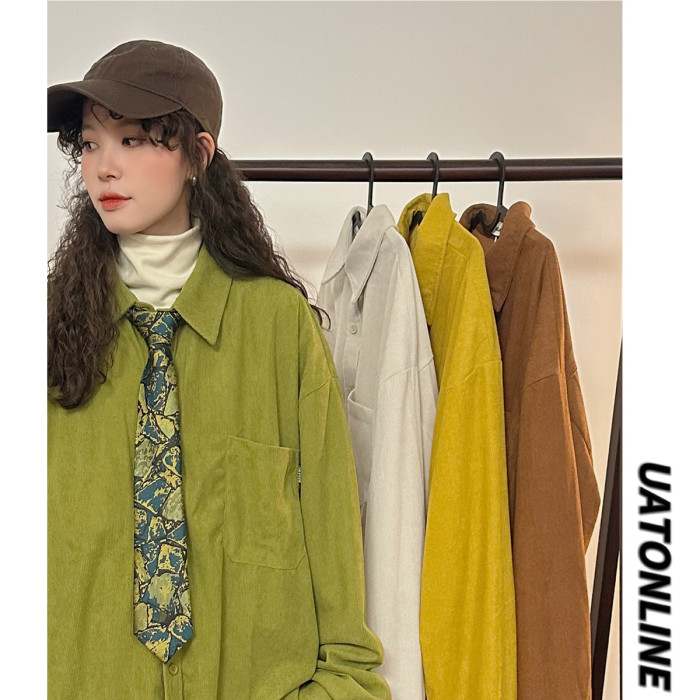 UATONLINE春秋美式復古簡約百搭燈芯絨長袖襯衫外套女打底衫上衣