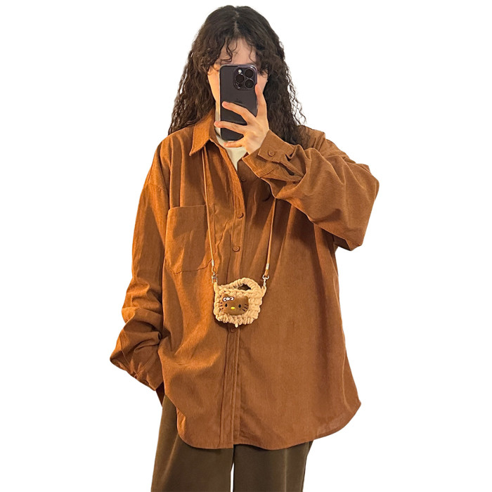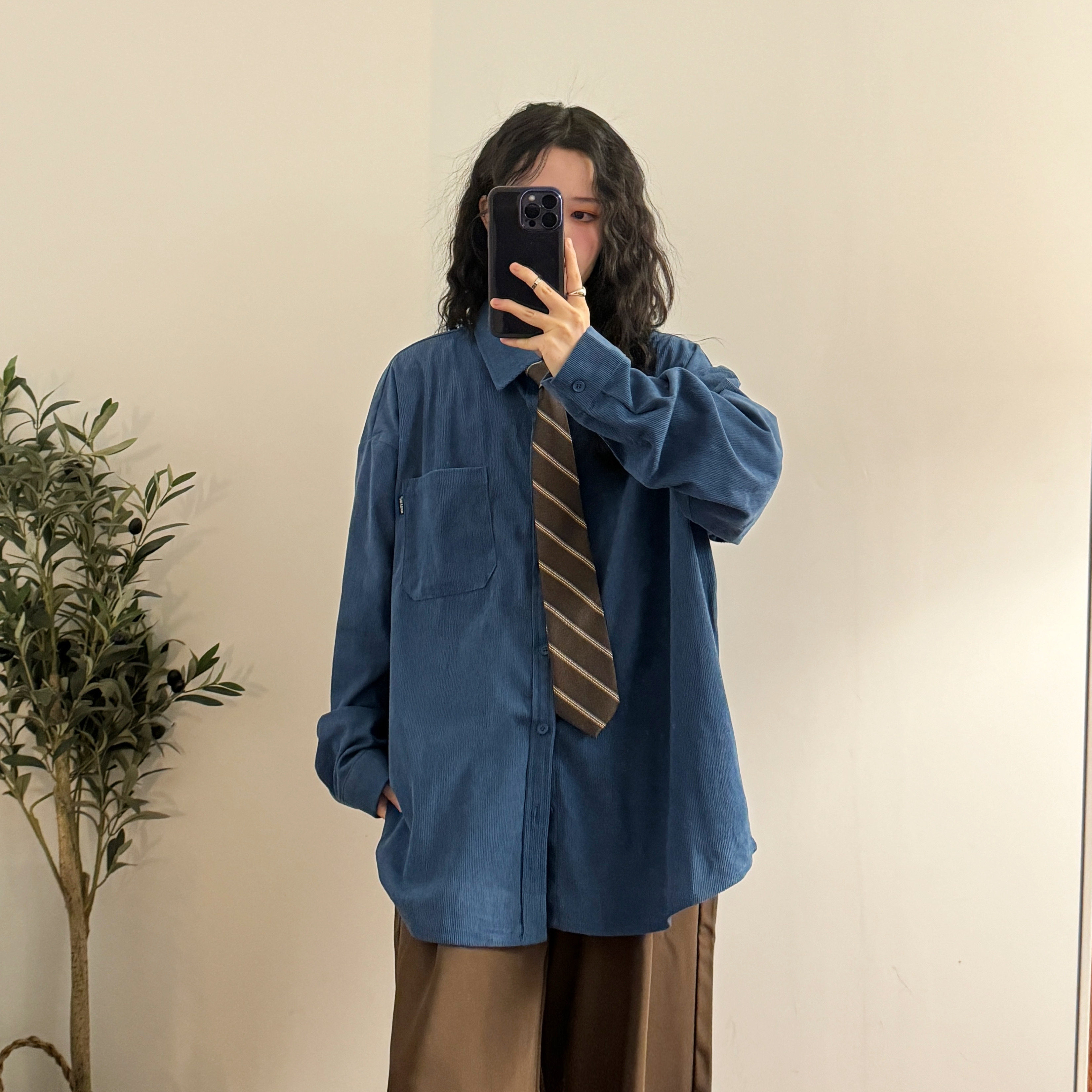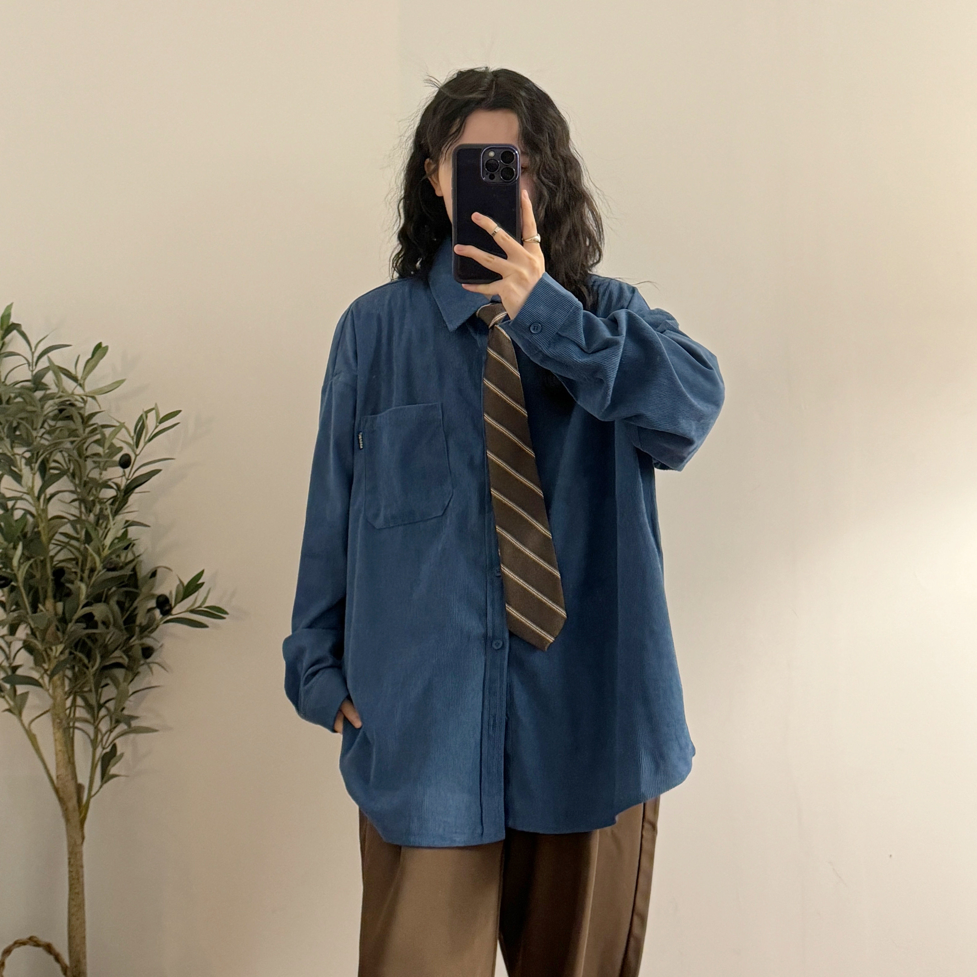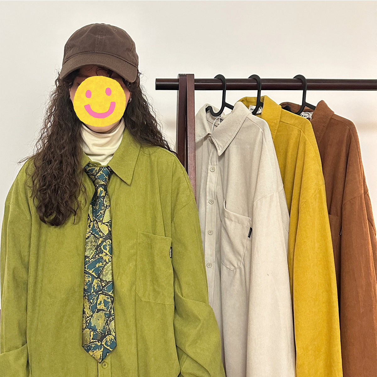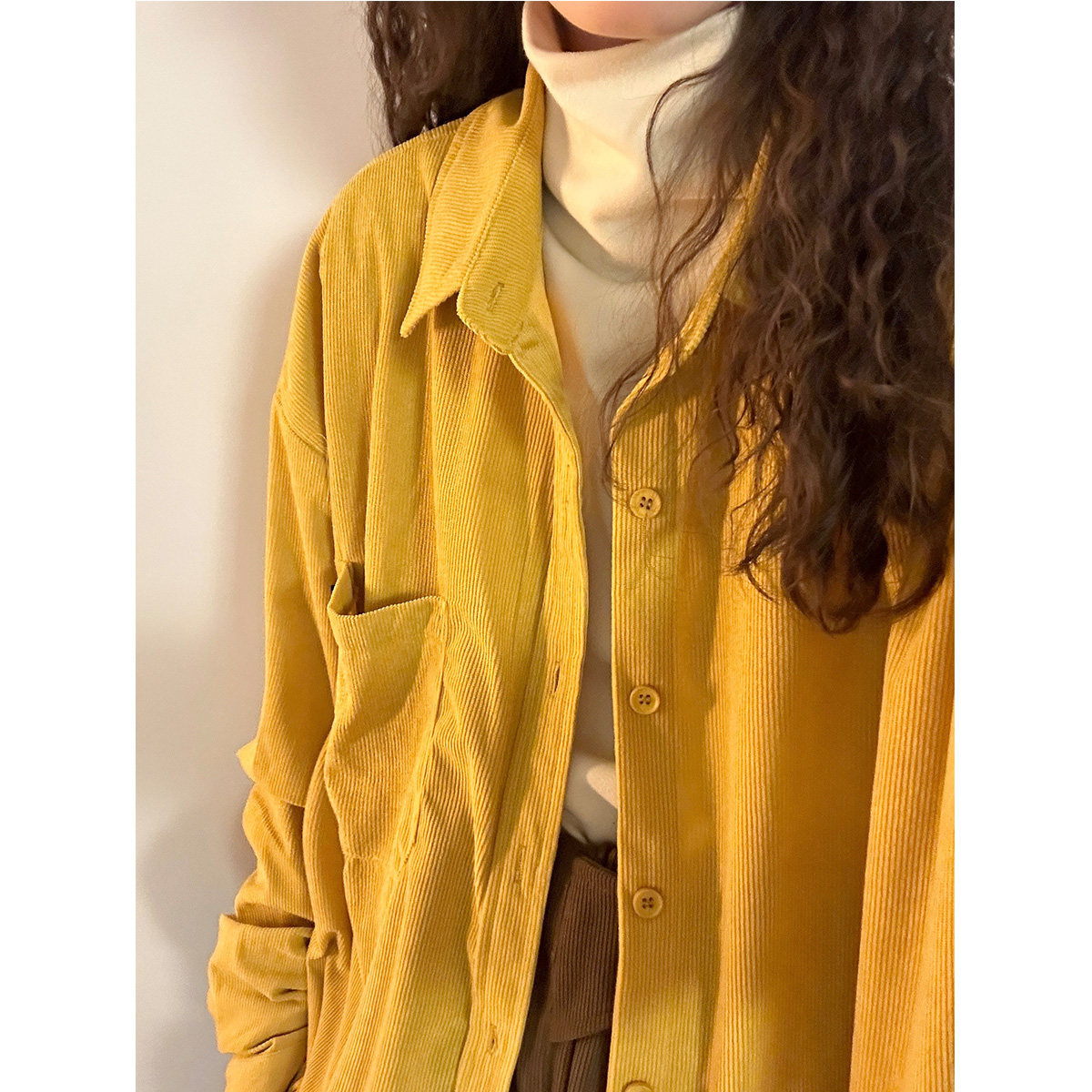 UATONLINE春秋美式復古簡約百搭燈芯絨長袖襯衫外套女打底衫上衣