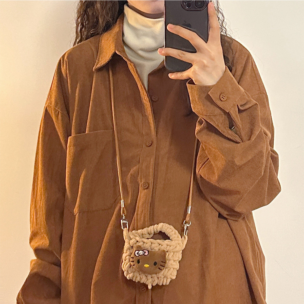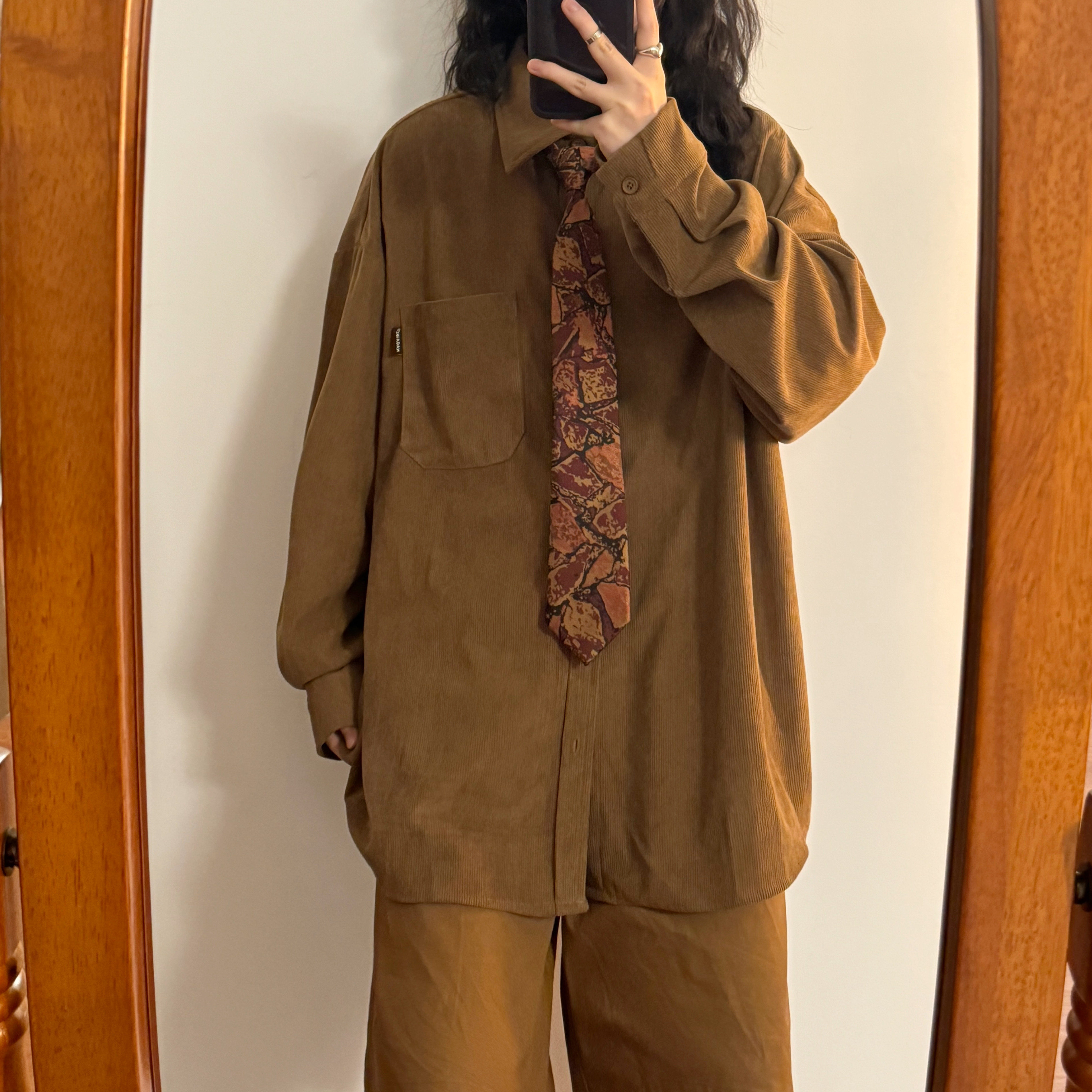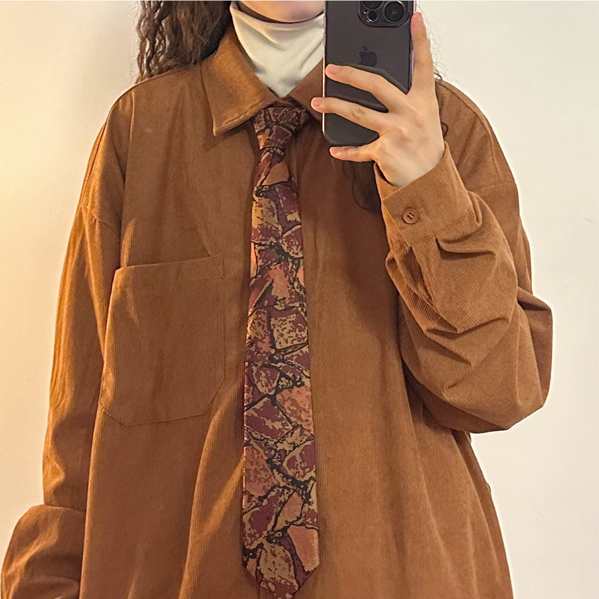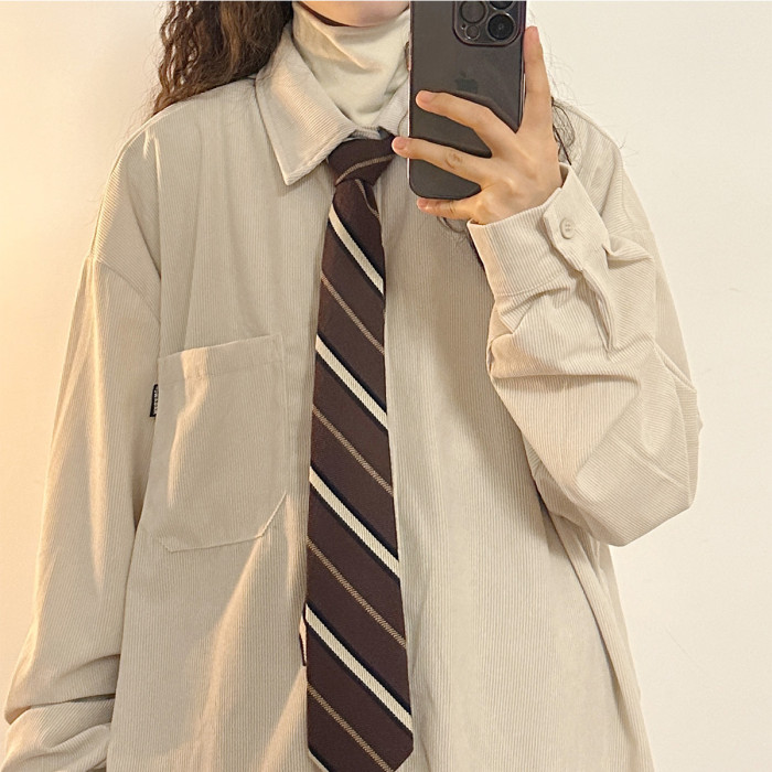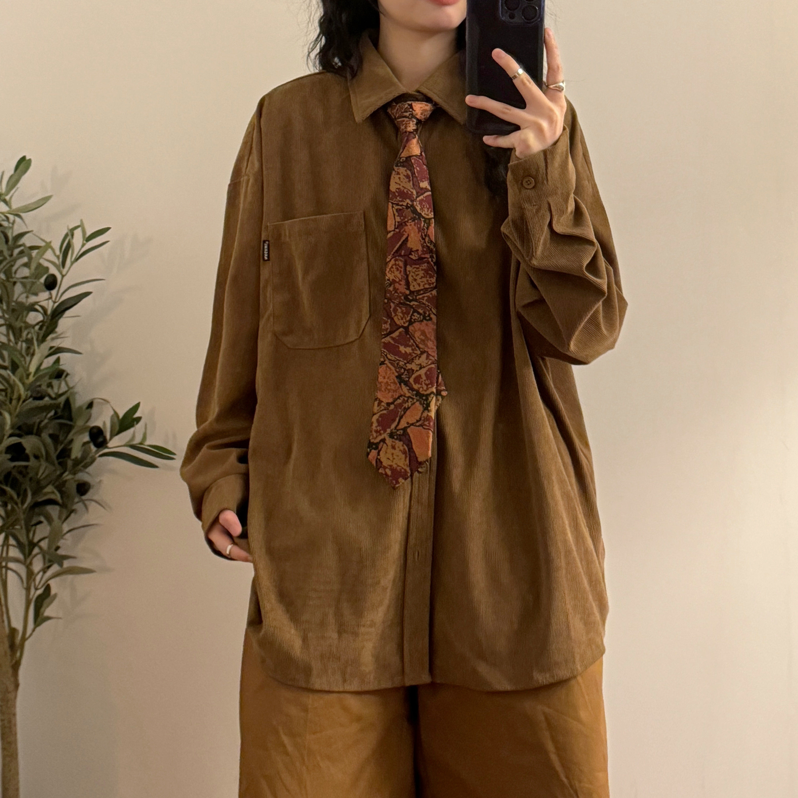 UATONLINE春秋美式復古簡約百搭燈芯絨長袖襯衫外套女打底衫上衣