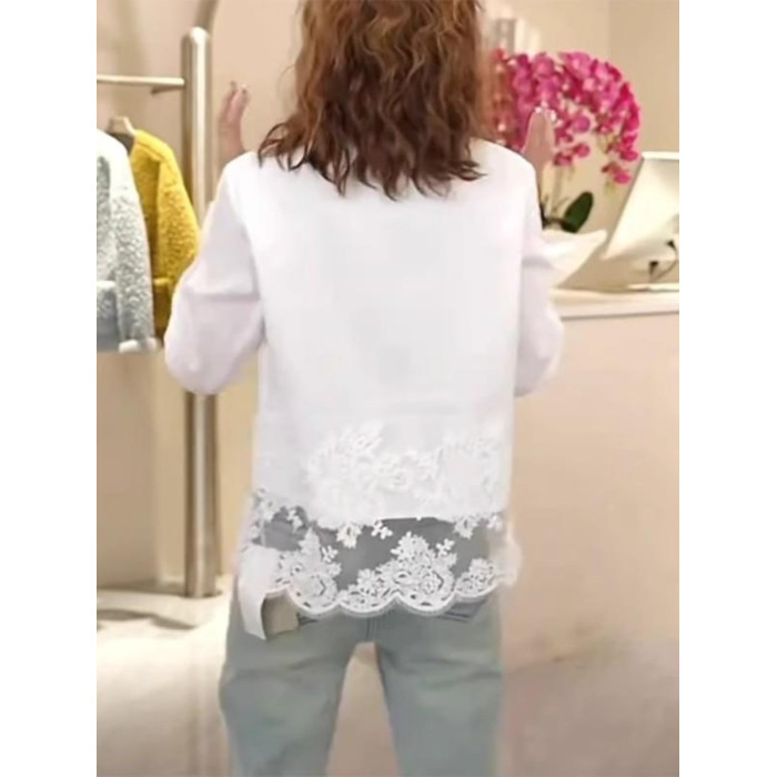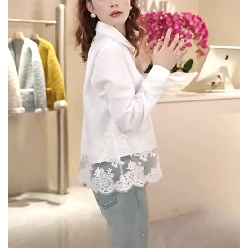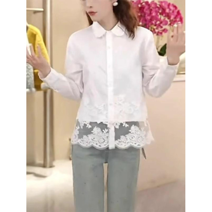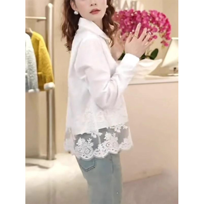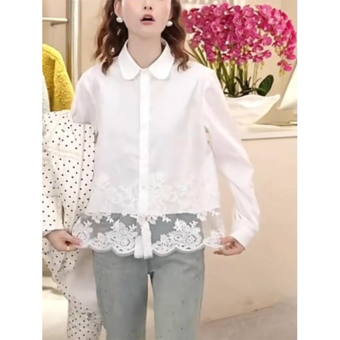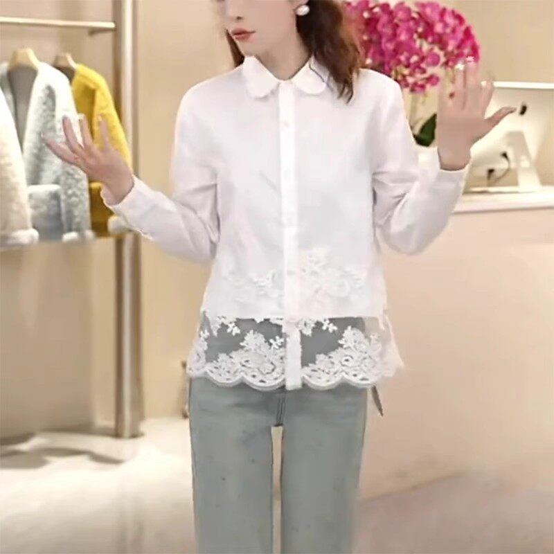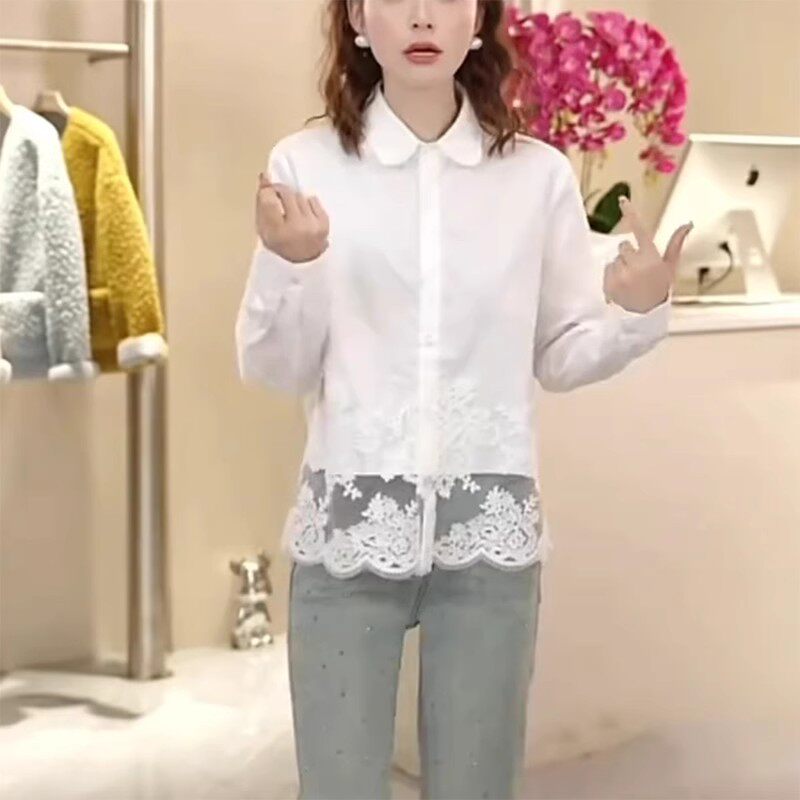大碼女裝2026春季新款設計感桃心領時尚鏤空拼接蕾絲勾花襯衫長袖